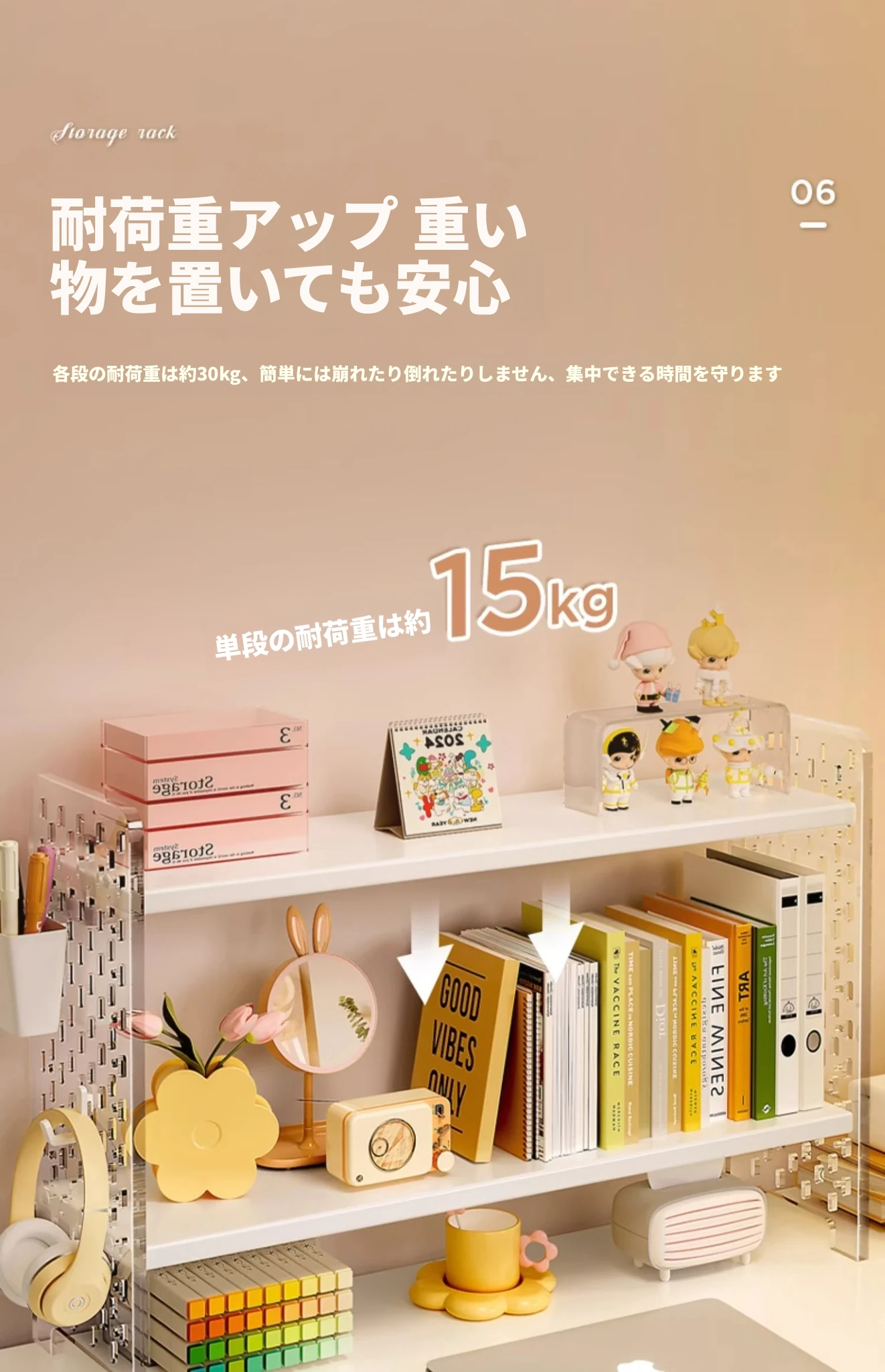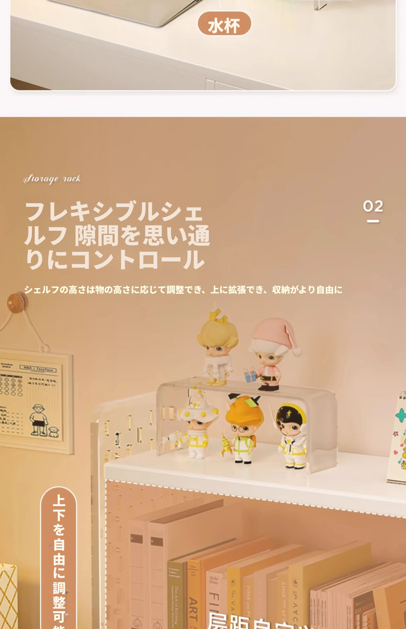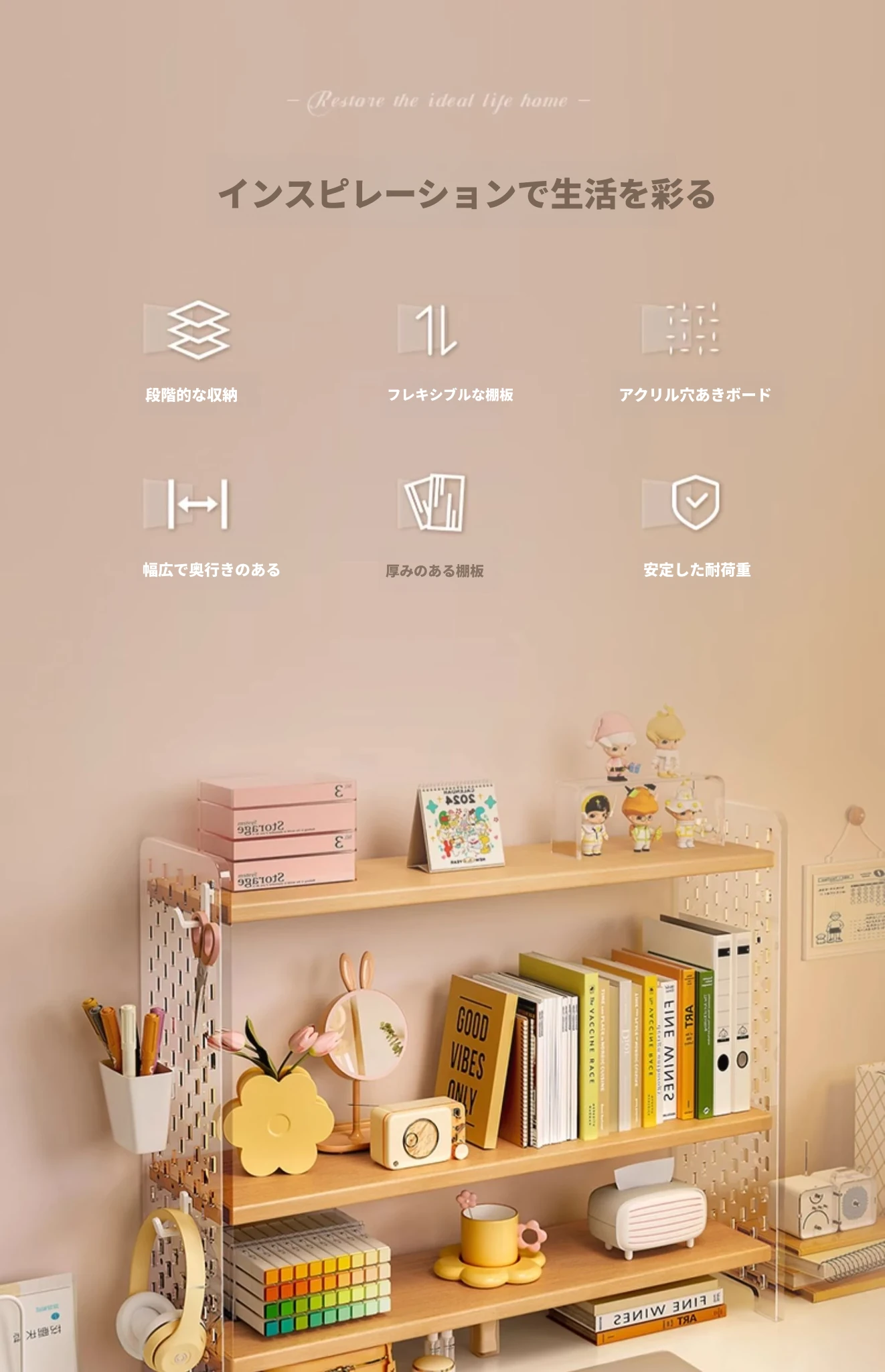 【2段】ウォームホワイト+アクリルドリルボード50*20*36(フック+収納ボックス付属)