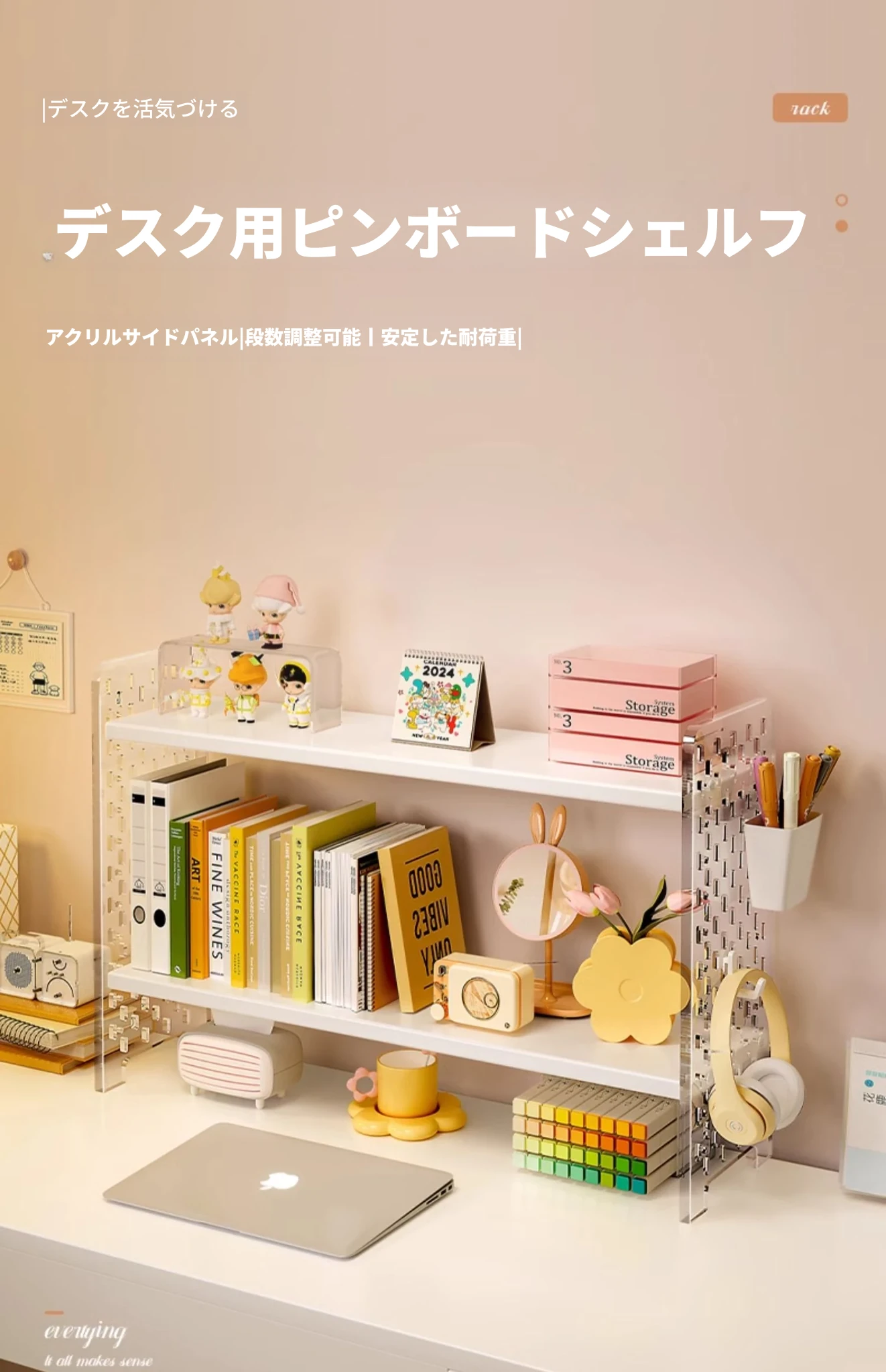 【2段】ウォームホワイト+アクリルドリルボード60*20*36(フック+収納ボックス付属)
