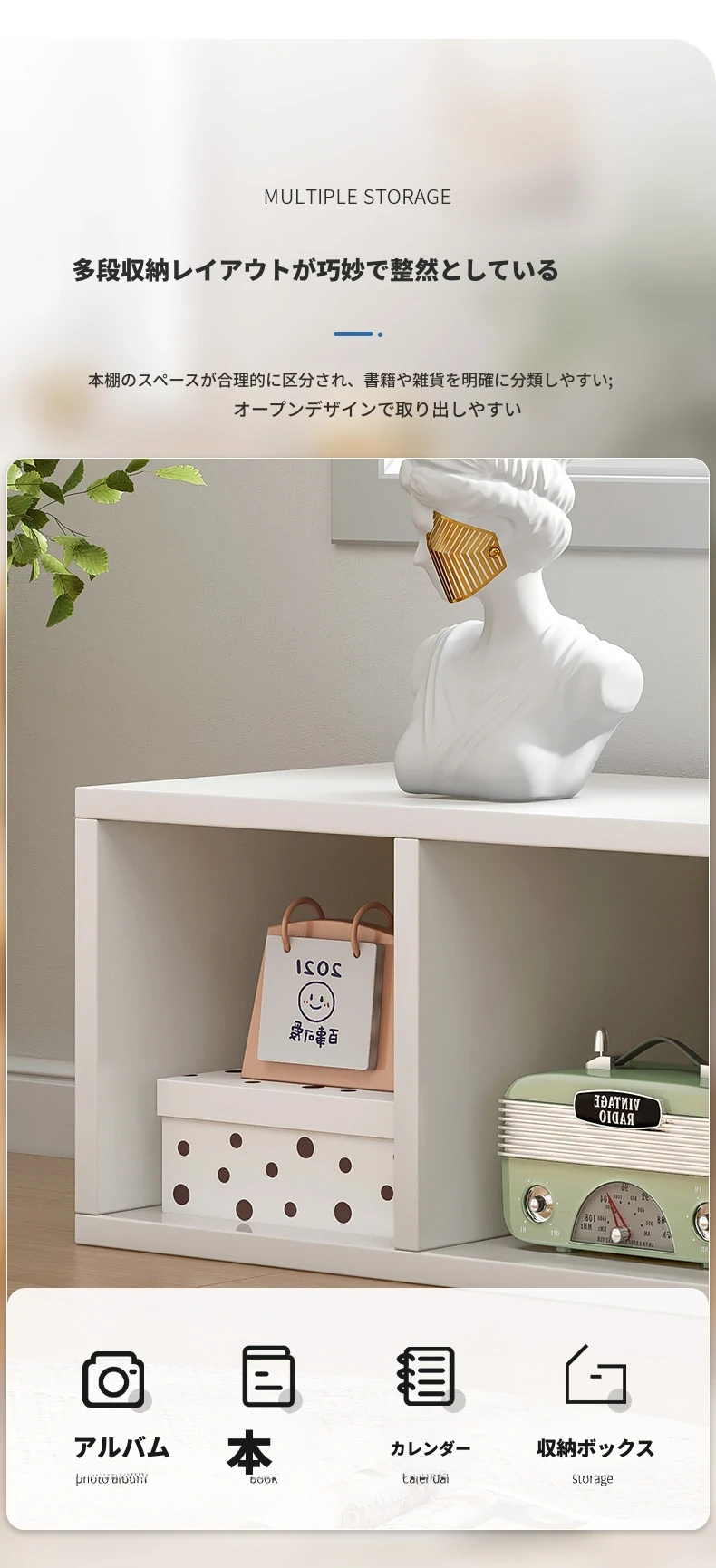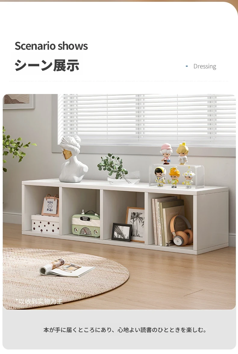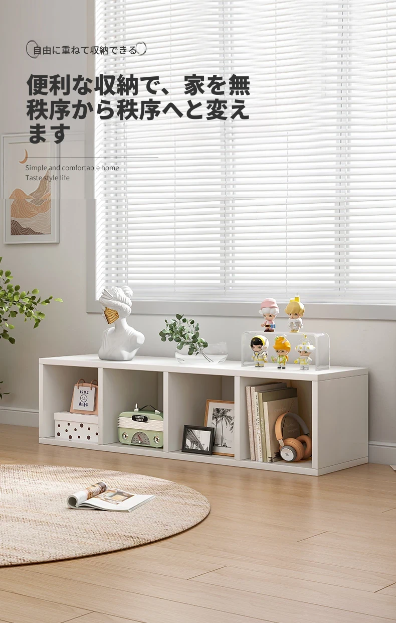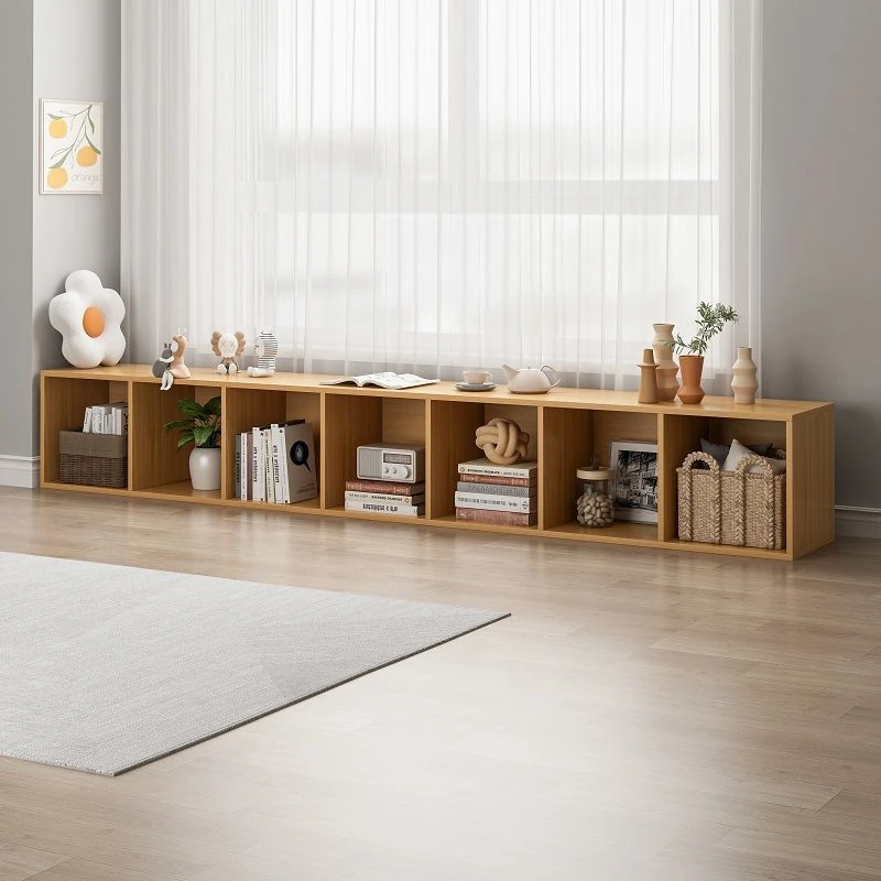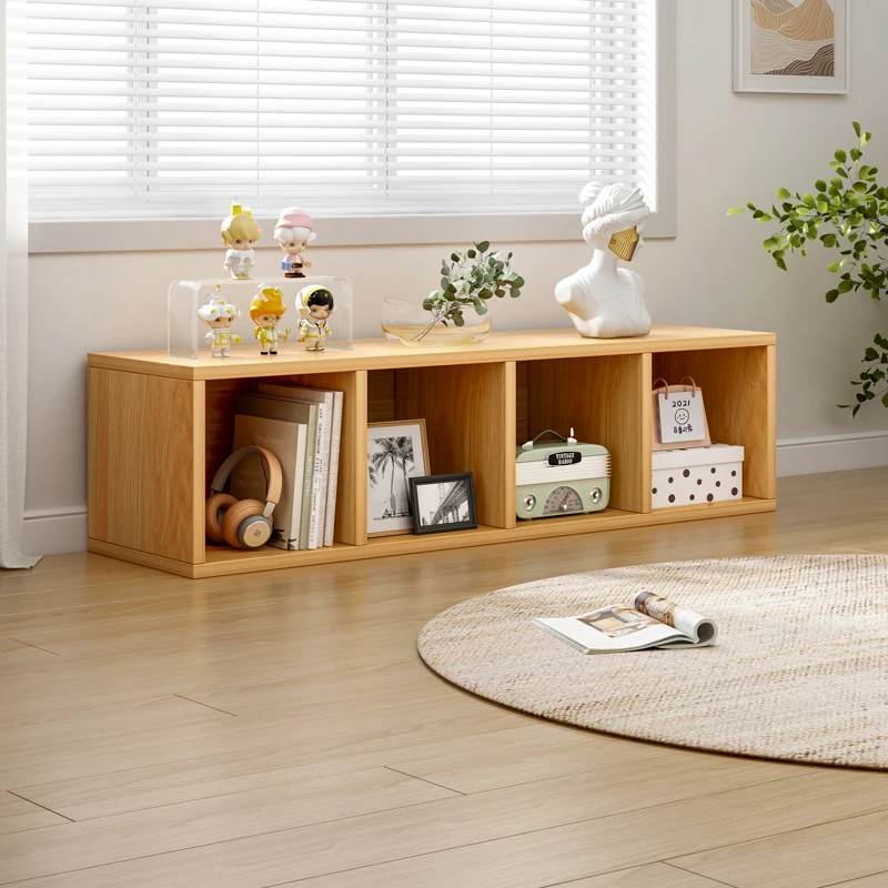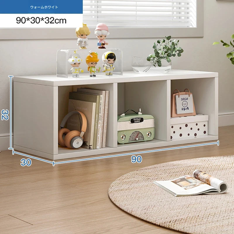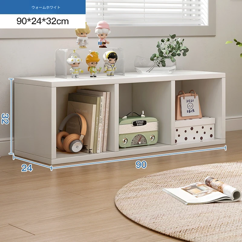 バルコニー用のスタイリッシュなフロア収納キャビネット - シンプルな単層格子デザインの書棚、家庭用書庫、テレビボード、便利な収納ラックでスペースを有効活用!
