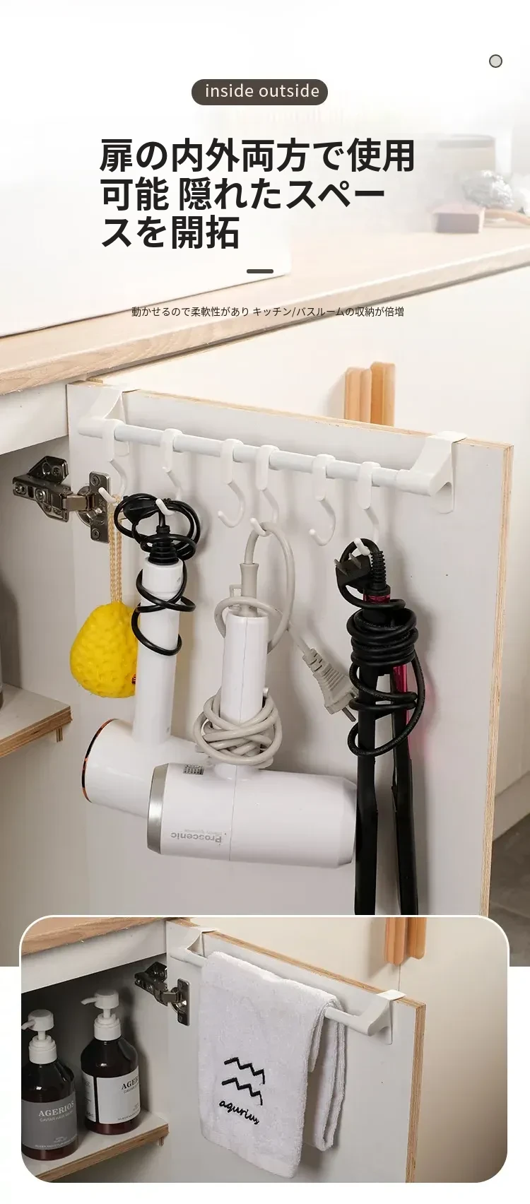 バスルーム用ドアフック - 取り付け不要の便利な衣類掛け、キッチンや寮でも大活躍!タオルラックとしても使えるおしゃれで実用的なフック。収納力UPでスッキリ整理!