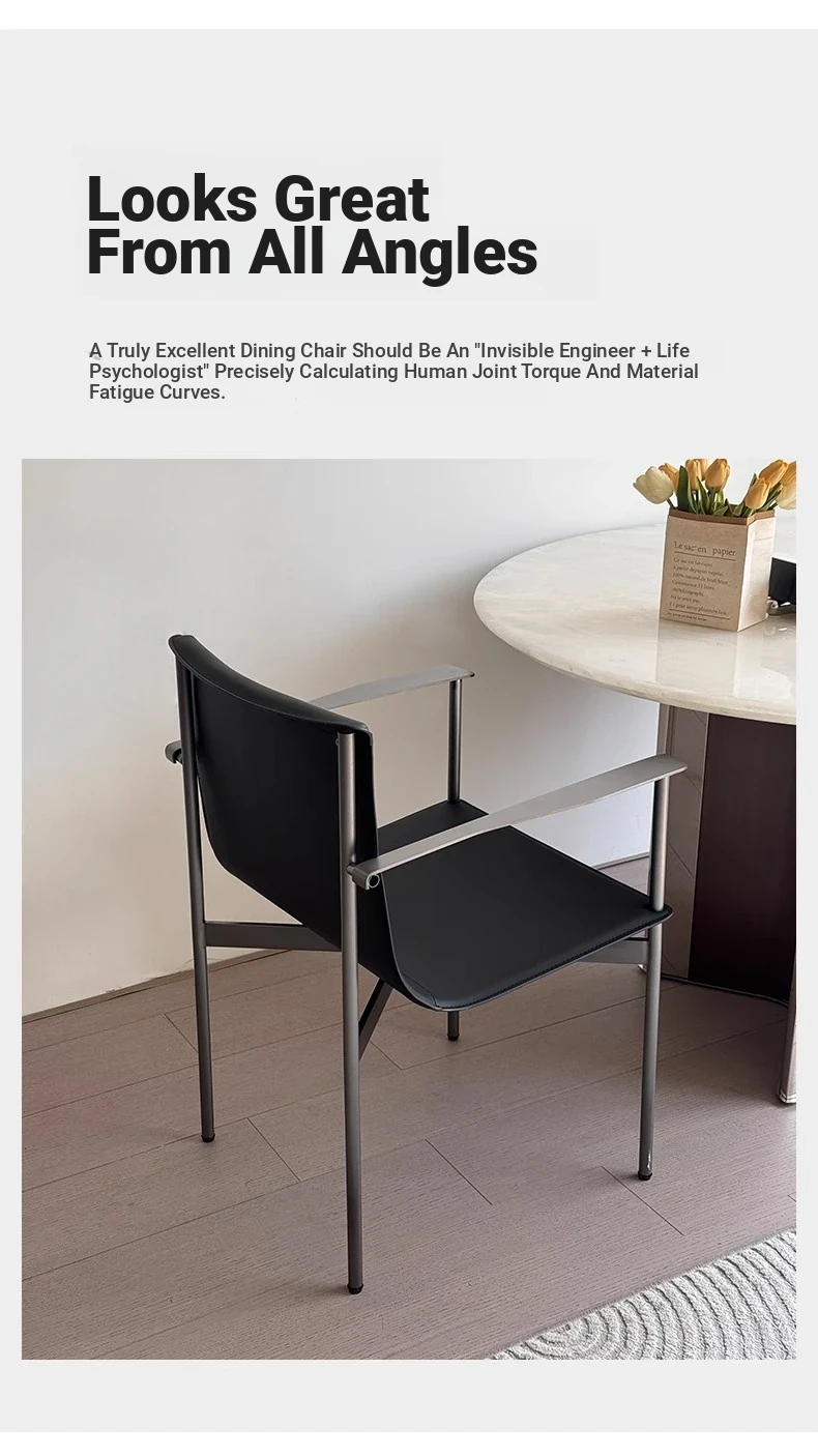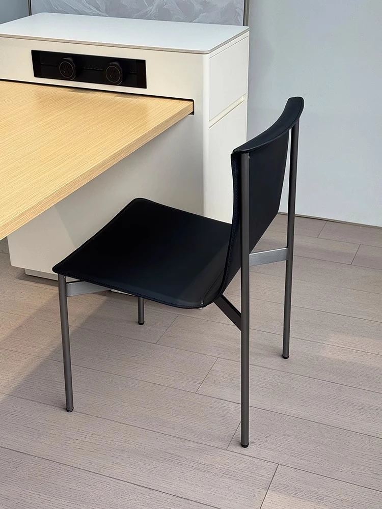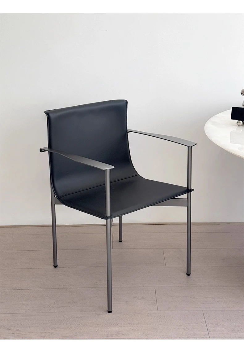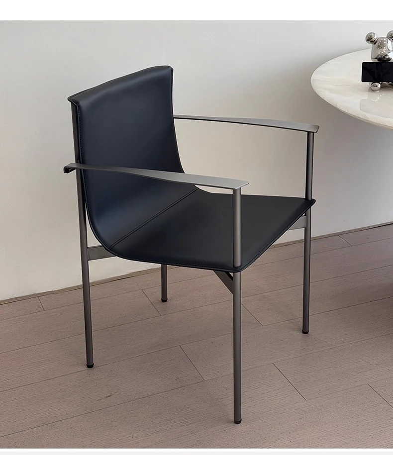 Bauhaus Dining Chair - Stylish Italian Minimalist Design with Stainless Steel and Saddle Leather, Perfect for Home Use - Elegant Armchair with Backrest for a Touch of Luxury