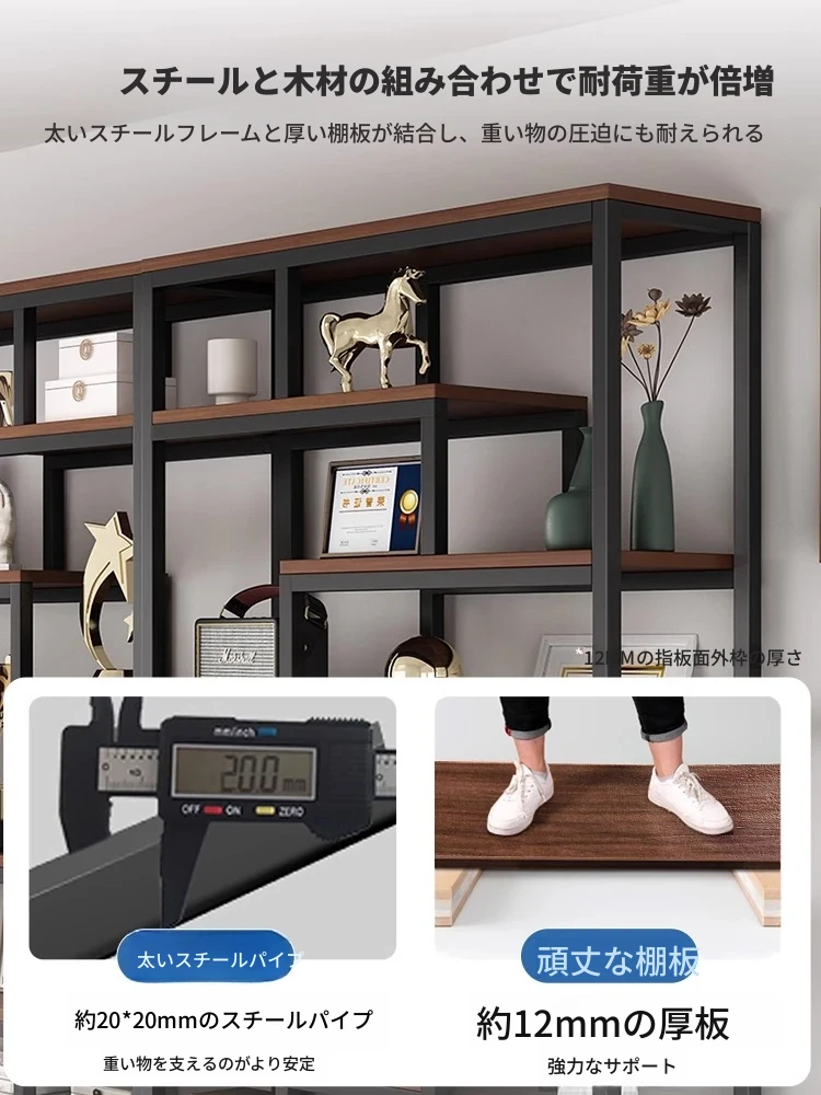 ⭐スチールウッドコンビネーション⭐奥行きアップグレード 太いスチールフレーム⭐耐荷重も安心⭐