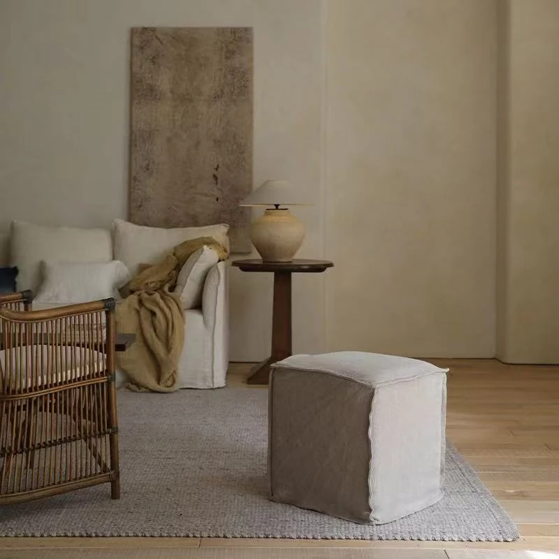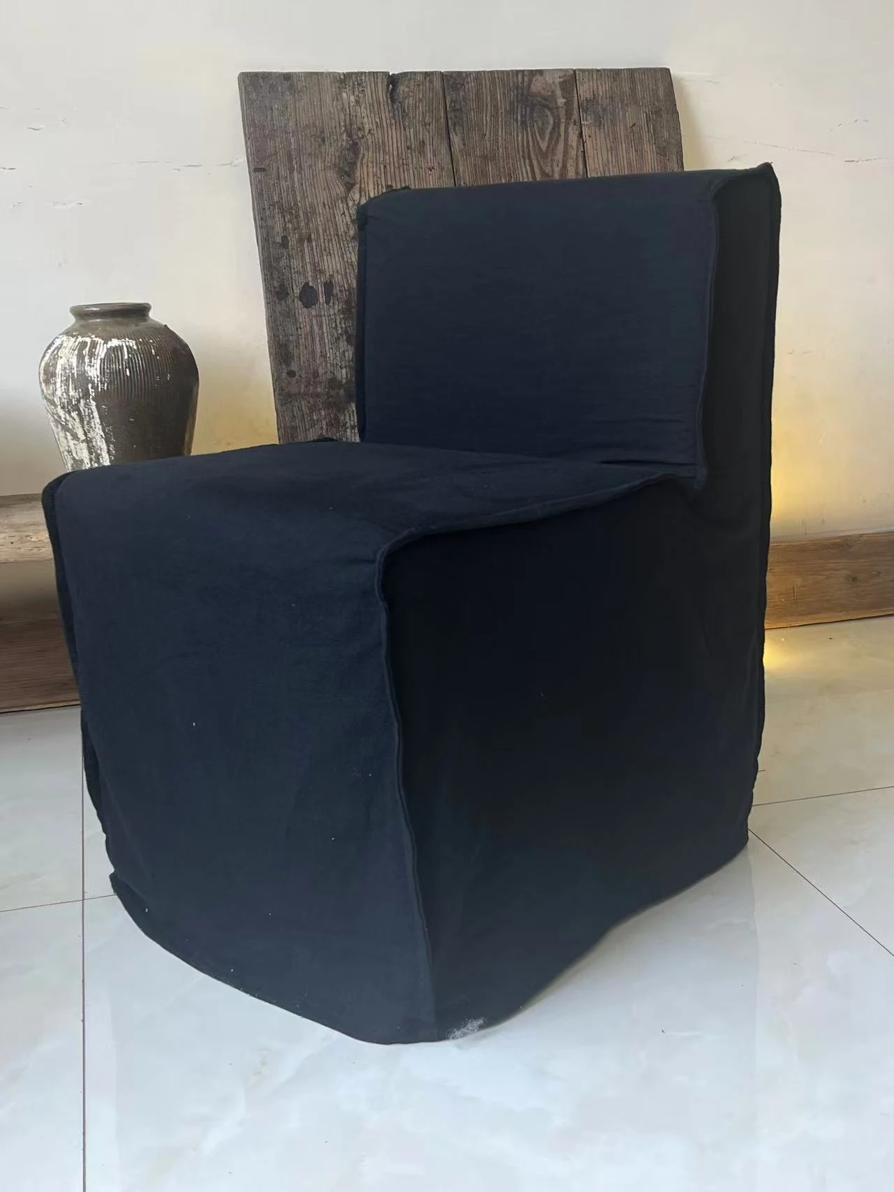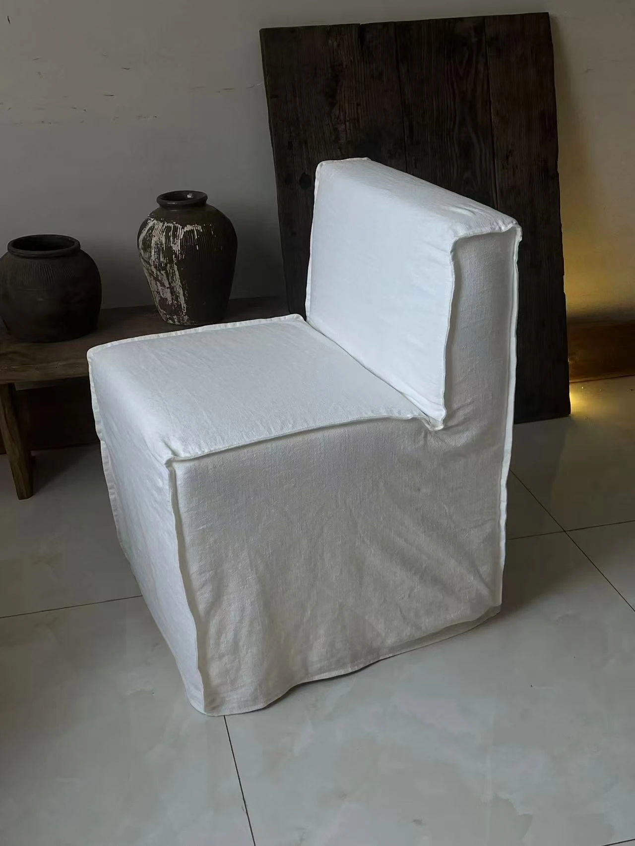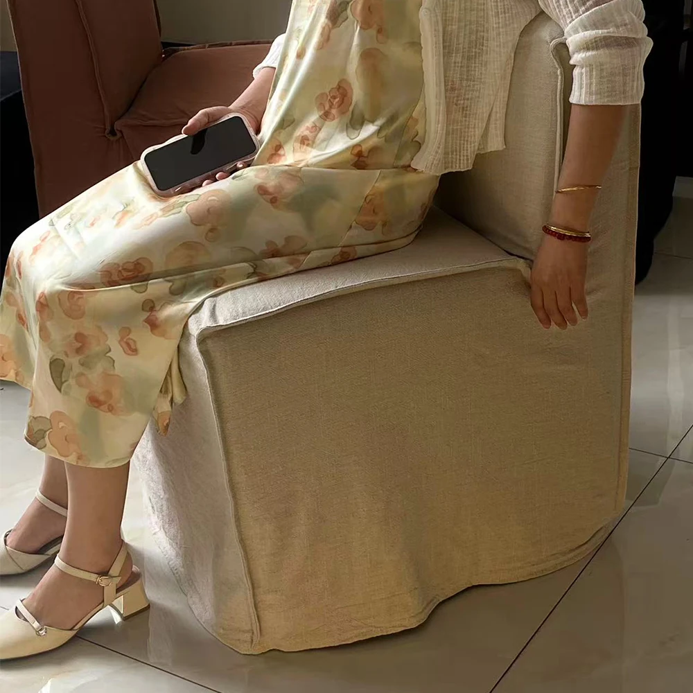 驚きの静けさ!和風シングルポンポンチェア – 移動可能なリネンファブリックソフトパッケージダイニングチェア。民宿や茶室、カフェにぴったりの小さなソファ。心地よい座り心地で、特別なひとときを演出します!