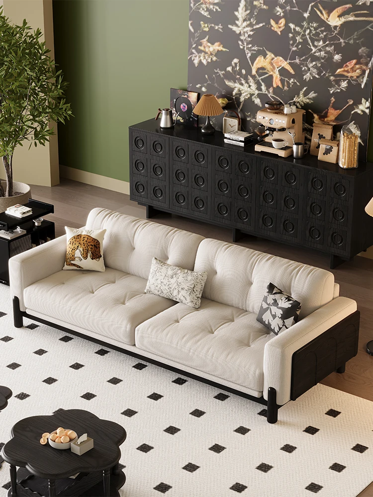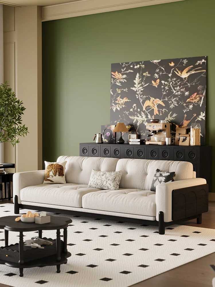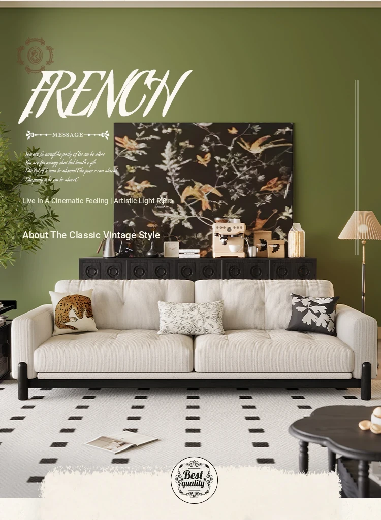 Chic French Retro Solid Wood Sofa - Perfect for Cozy Living Rooms, Compact Design, Simple Corduroy Ashwood Fabric Couch