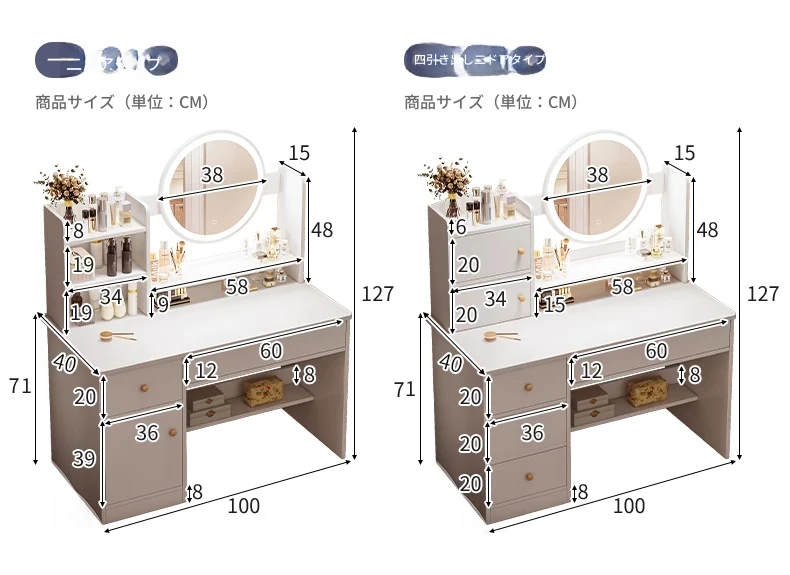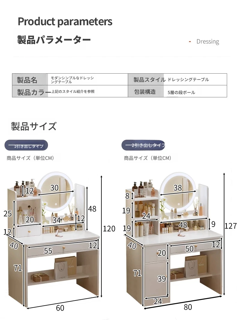 コンパクトでスタイリッシュな化粧台!小型ミニデザインの現代的なドレッサー、狭いお部屋にもぴったり。新作の化粧デスクで、毎日のビューティールーチンをおしゃれに演出しましょう!