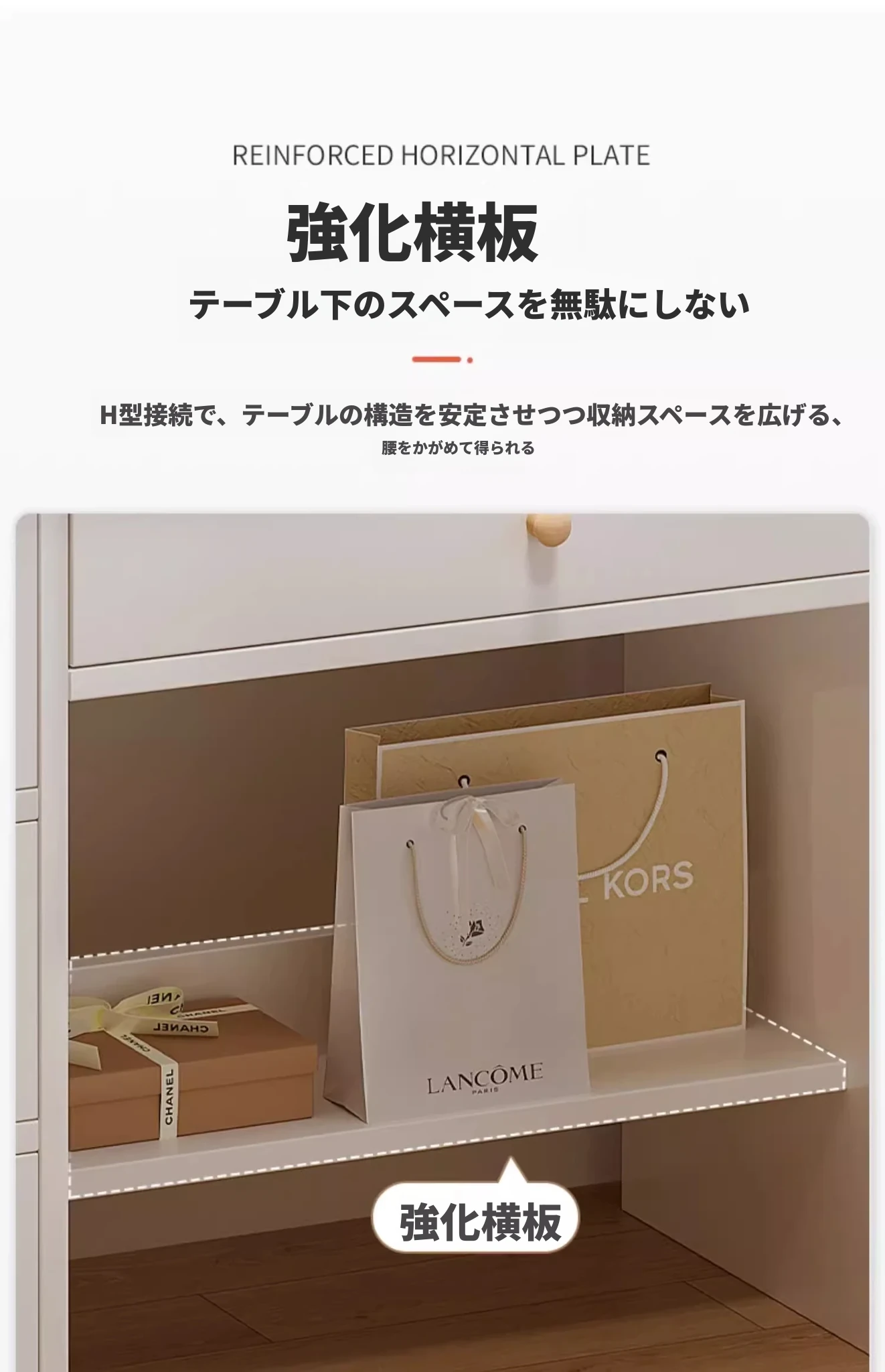 コストパフォーマンスが高い⭐LEDライト【四引き出し二キャビネット+椅子】80cm 暖白色