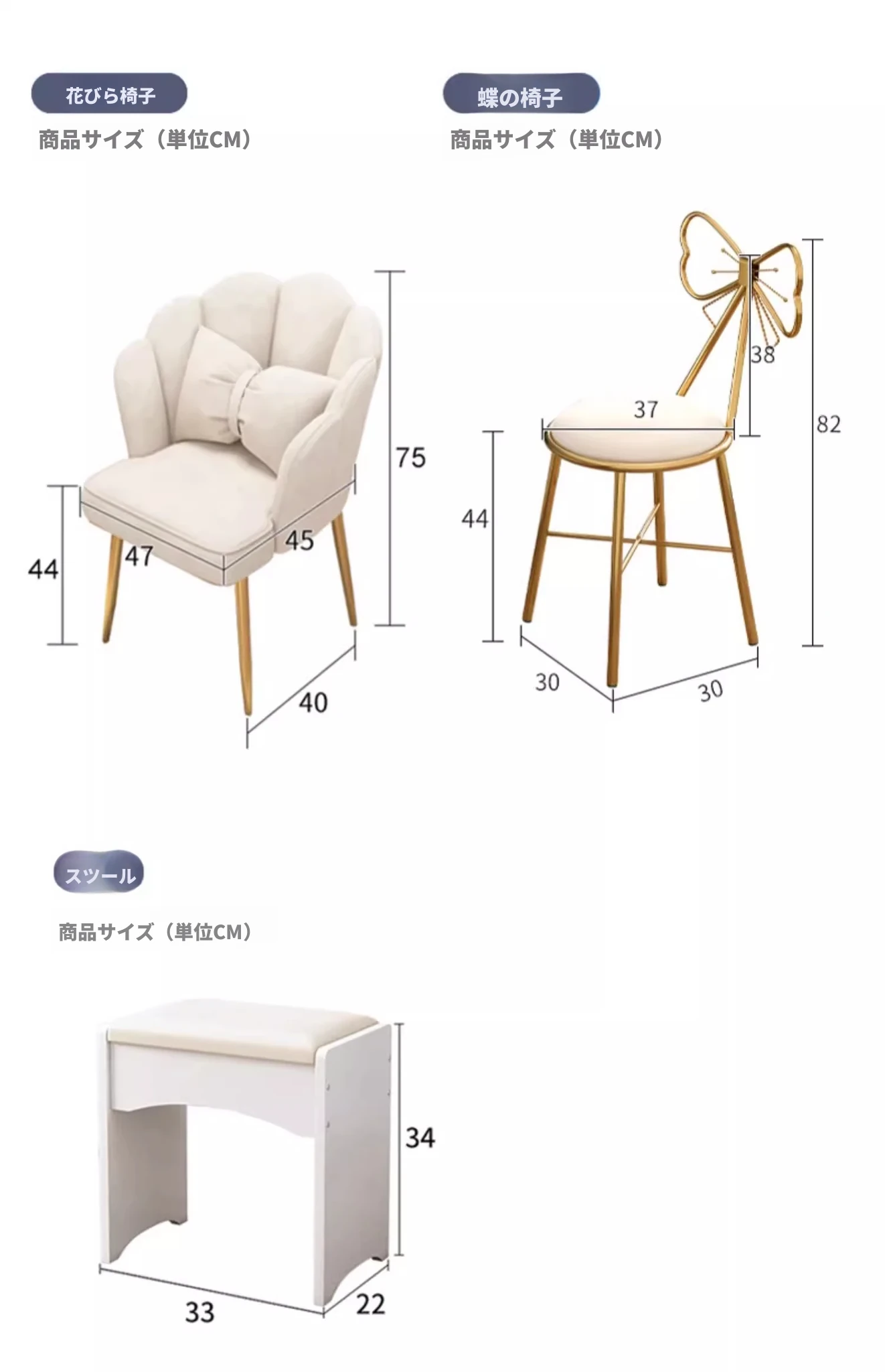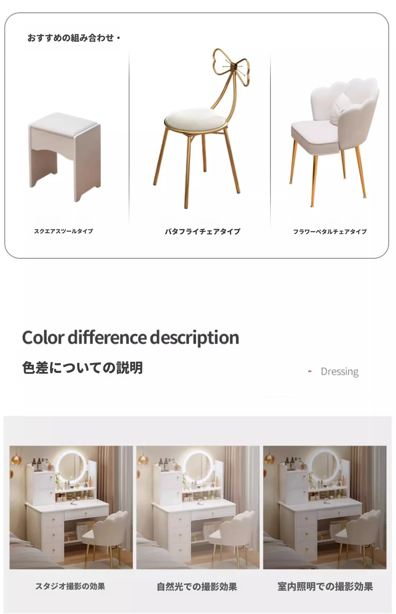 アップグレード欧州風⭐LEDライト【成形四引き出し+花びら椅子】80cm