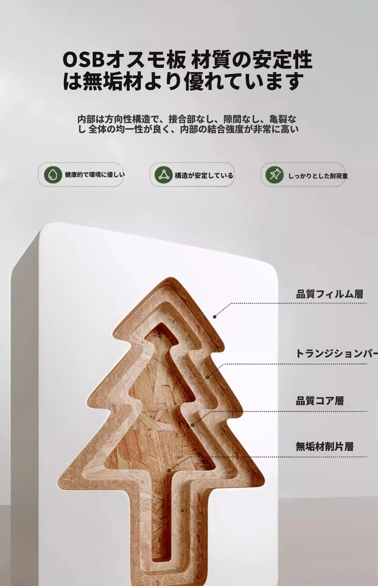 環境保護のオスモボード⭐LEDライト【二キャビネット一引き出し+花びら椅子】80cm 暖白色