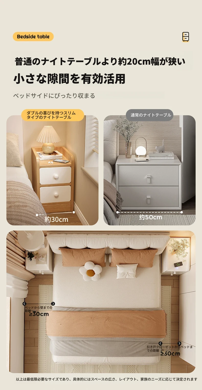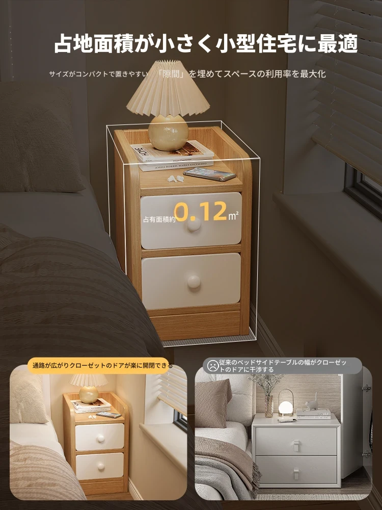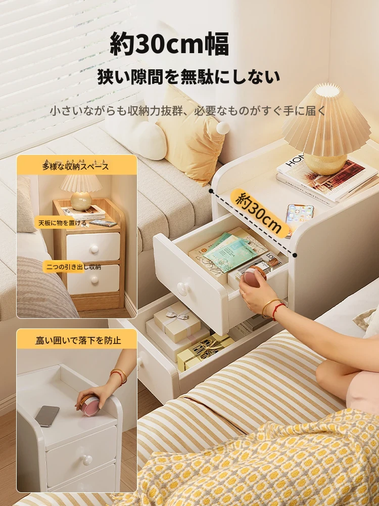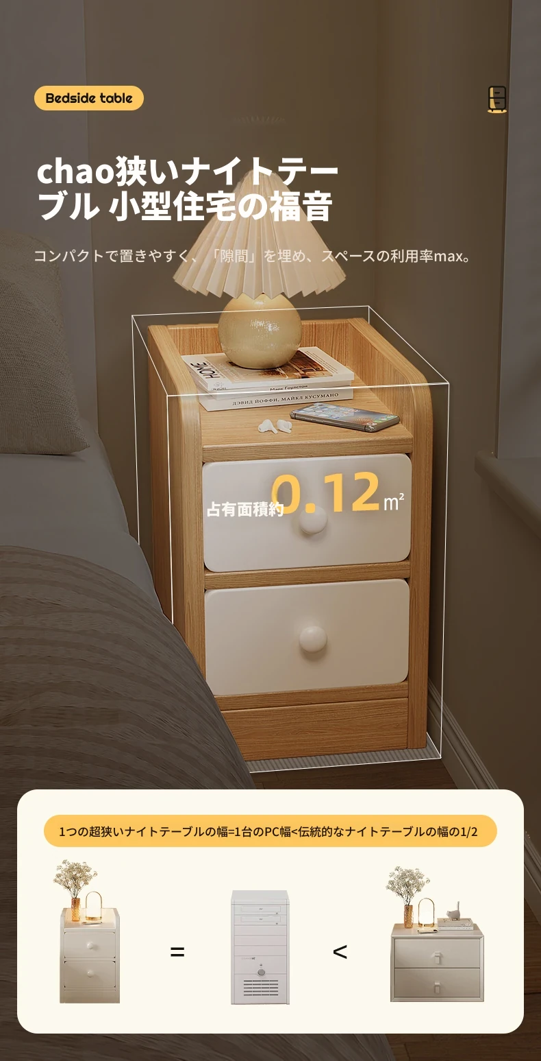小型実木ナイトテーブル - 寝室にぴったり!20cm・30cmのスリムデザインで、ベッドサイドや狭いスペースにも最適。収納力抜群のスタイリッシュな置物収納キャビネット!【送料無料】