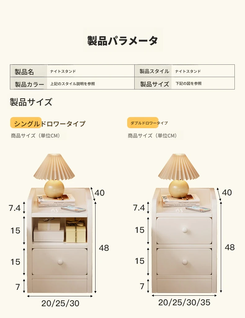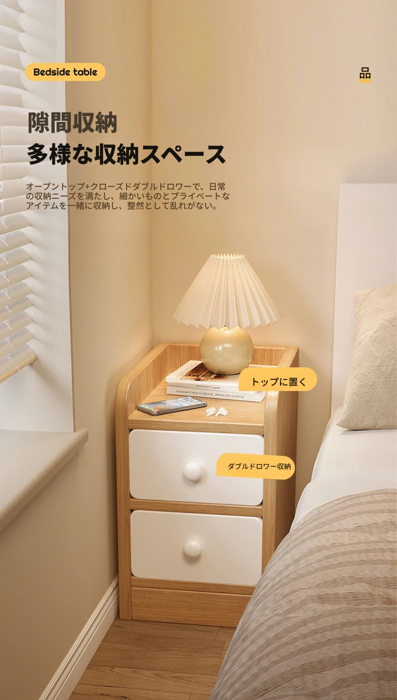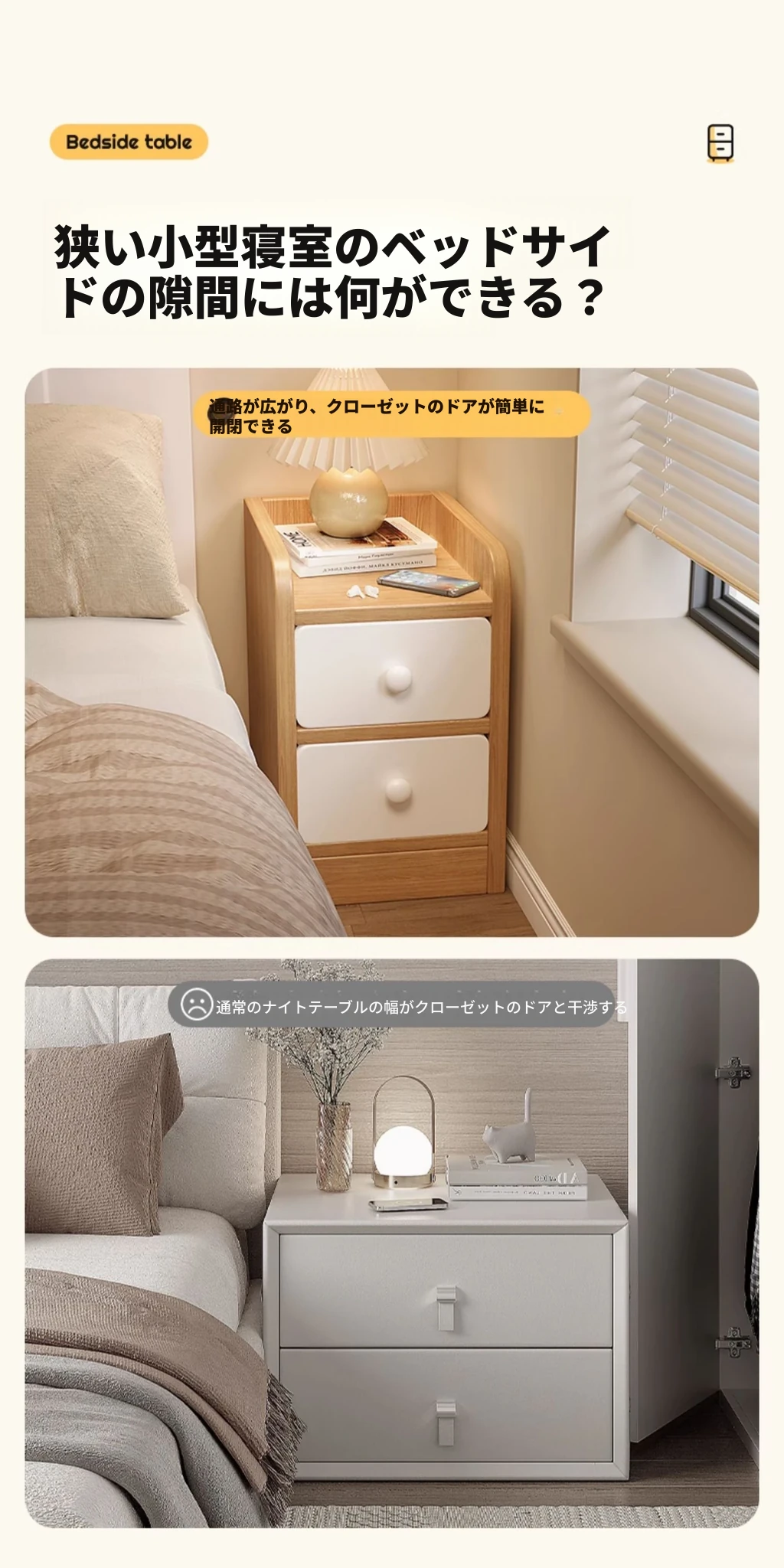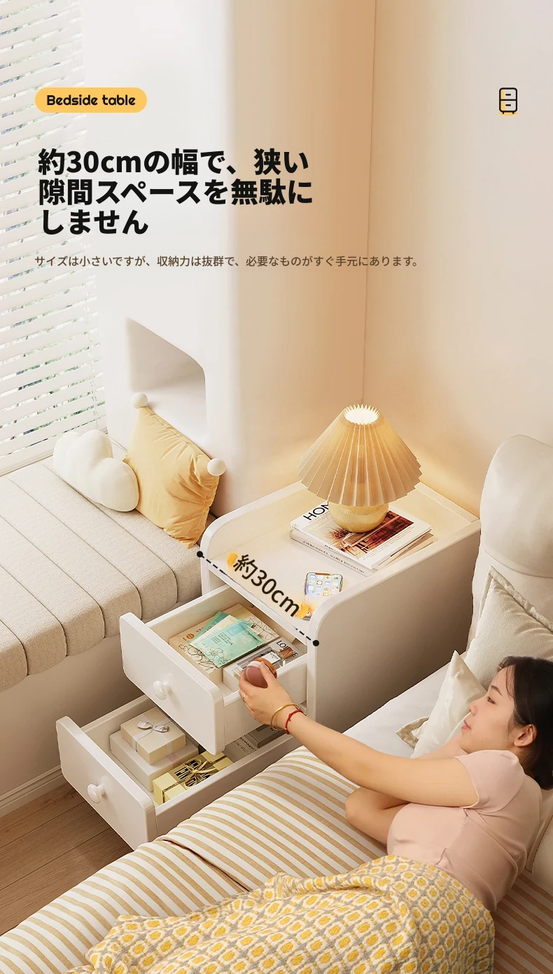 小型実木ナイトテーブル - 寝室にぴったり!20cm・30cmのスリムデザインで、ベッドサイドや狭いスペースにも最適。収納力抜群のスタイリッシュな置物収納キャビネット!【送料無料】