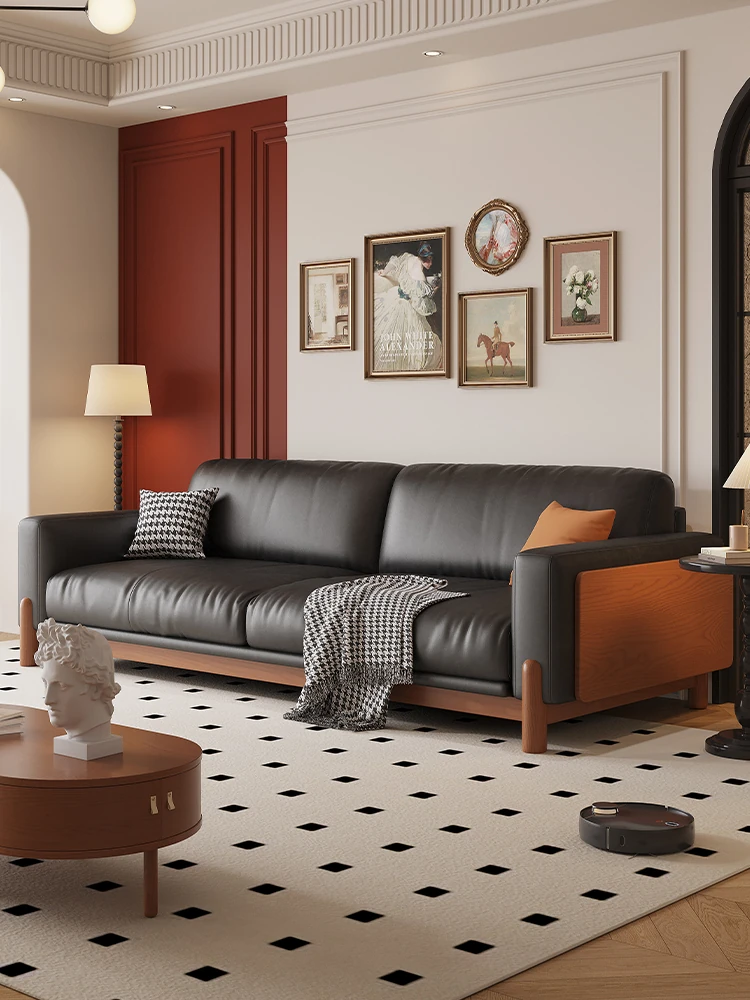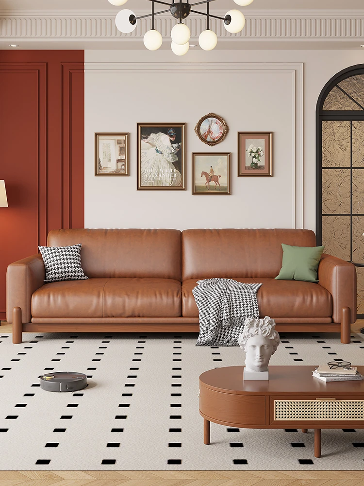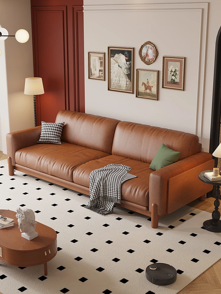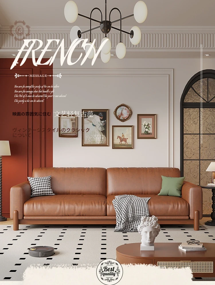 【2025年新作】ヴィンテージレトロスタイル!大小住戸にぴったりなフレンチクリーム風本革ソファ