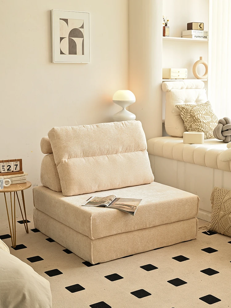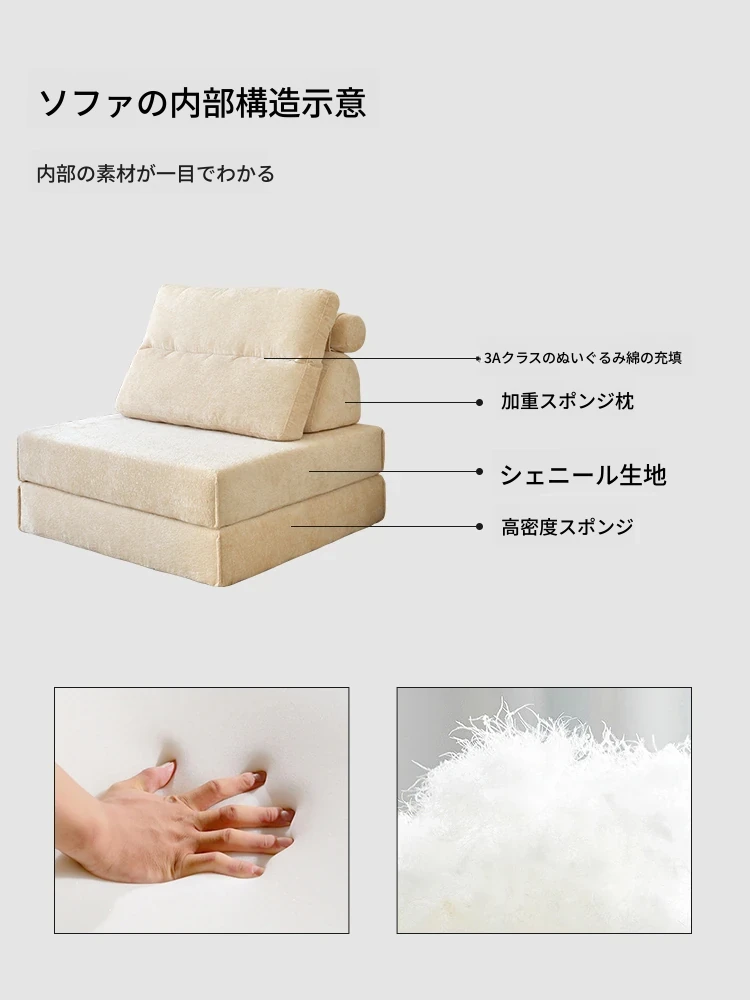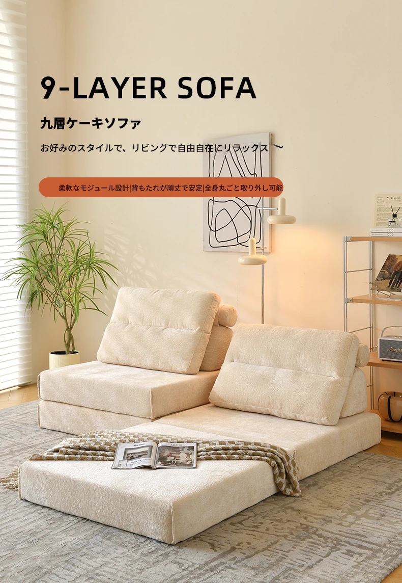 「人気急上昇!リラックス豆腐キューブソファー - ひとり用トレンドデザイン、リビングや寝室にぴったり、クリーム風畳モジュールソファーセット」