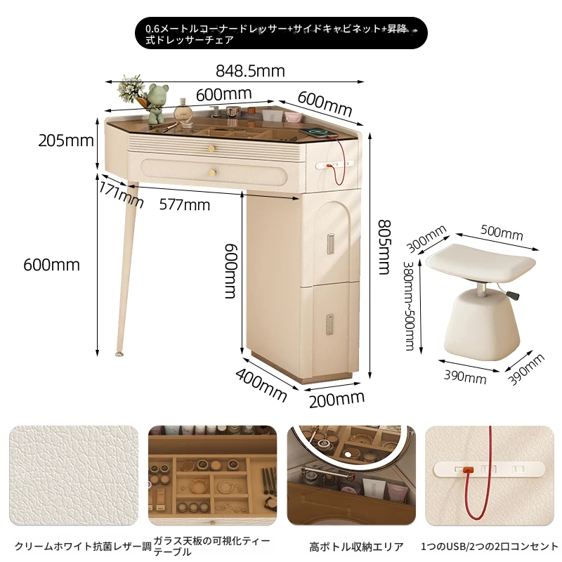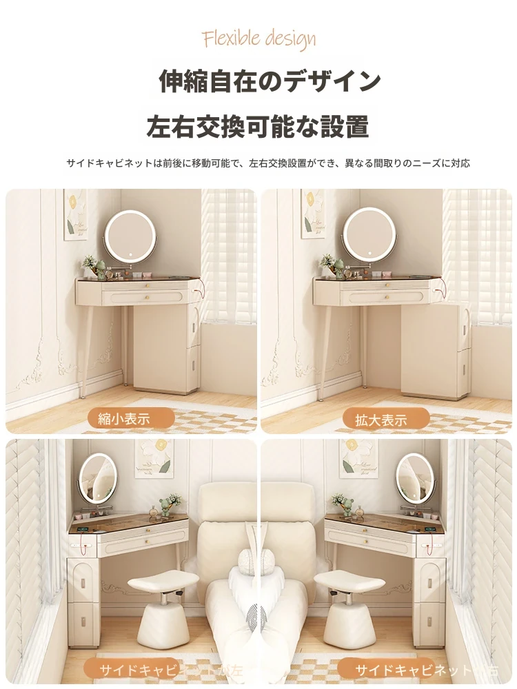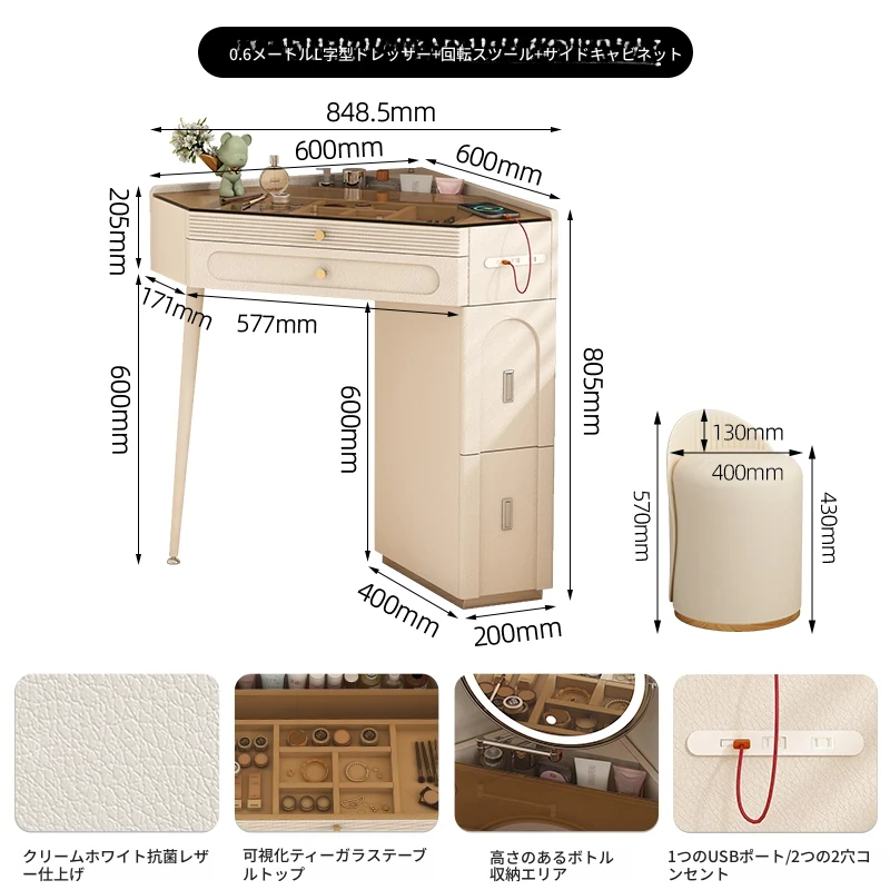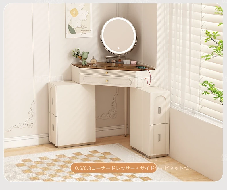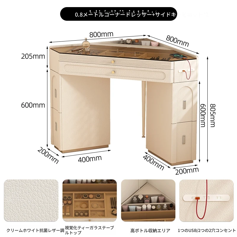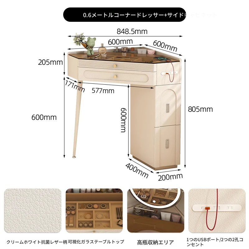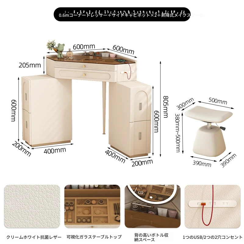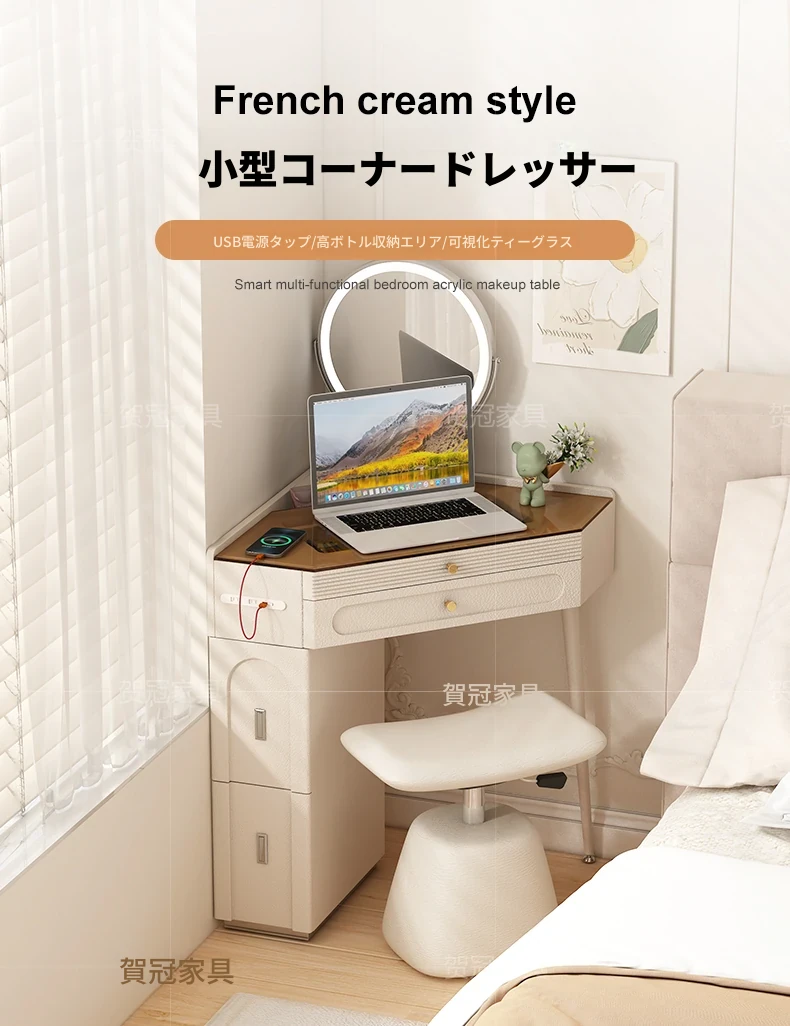 【魅力アップ!】クリーム風デザインの大人用デスク&収納一体型キャビネット:省スペースで機能的なリビングや小さな寝室にぴったりのコーナーデスク!