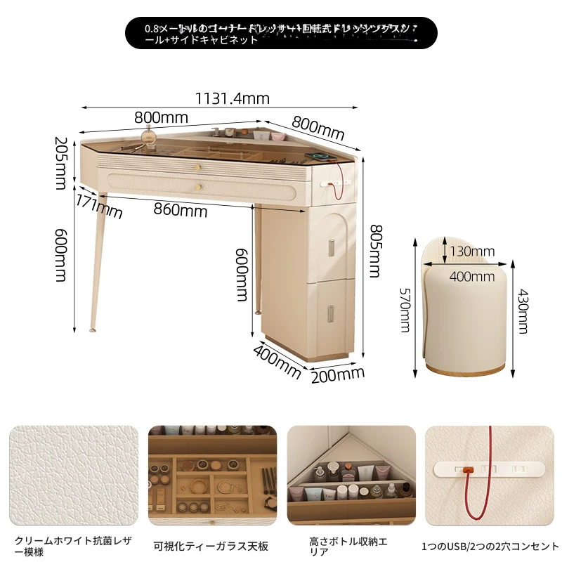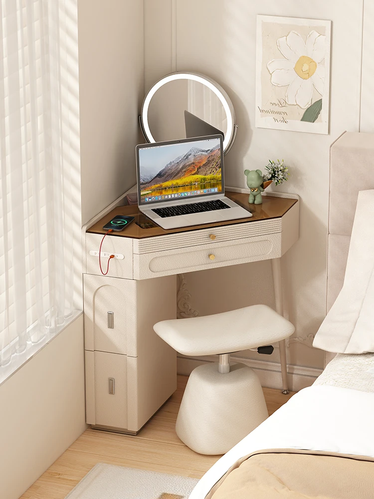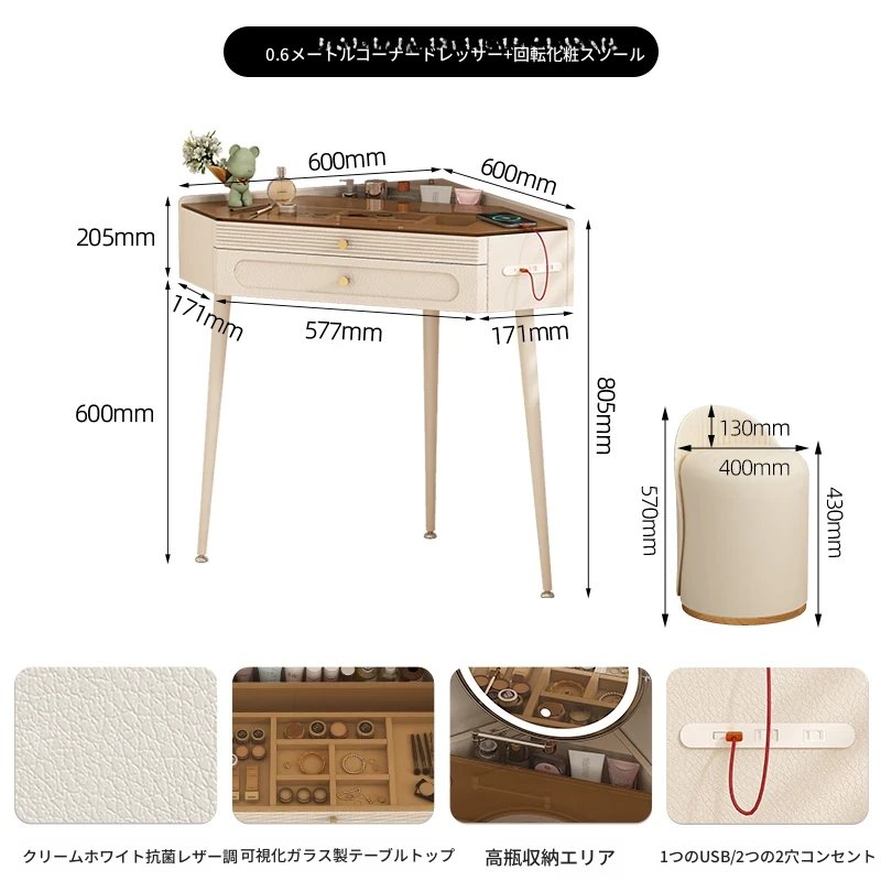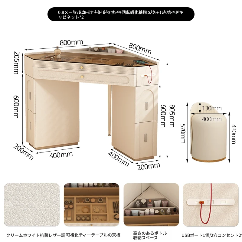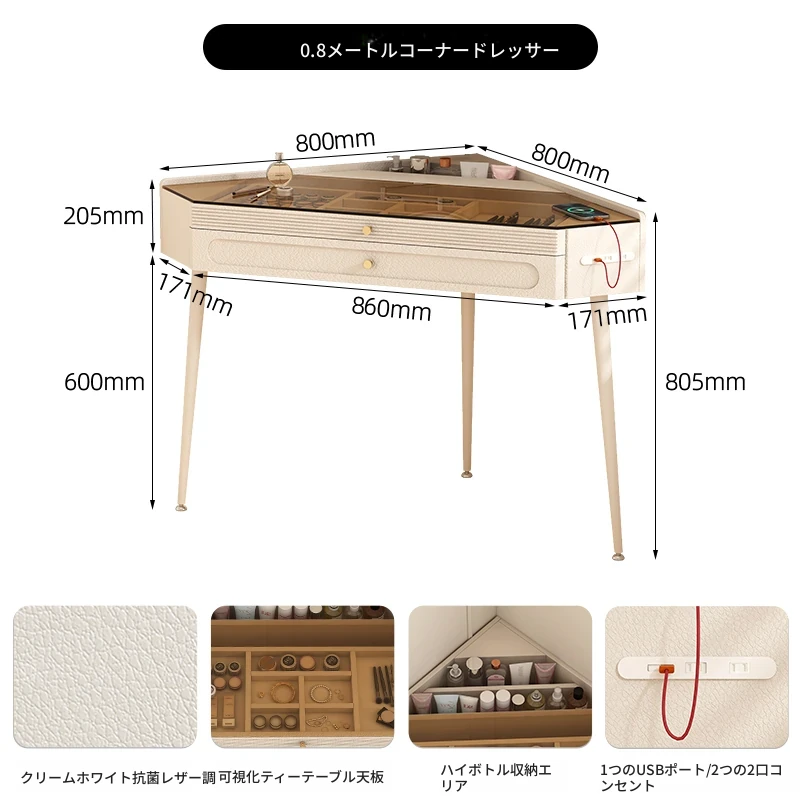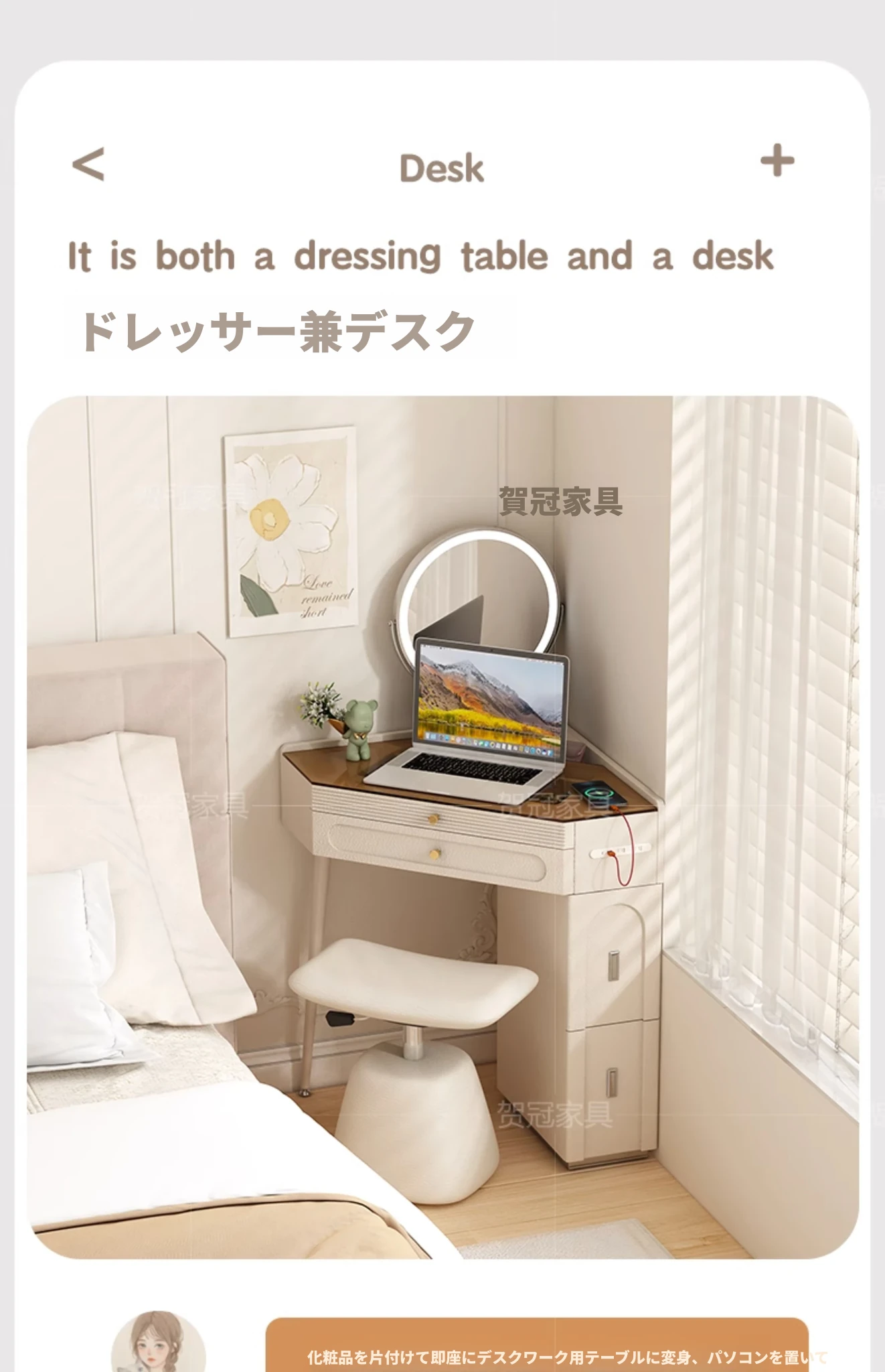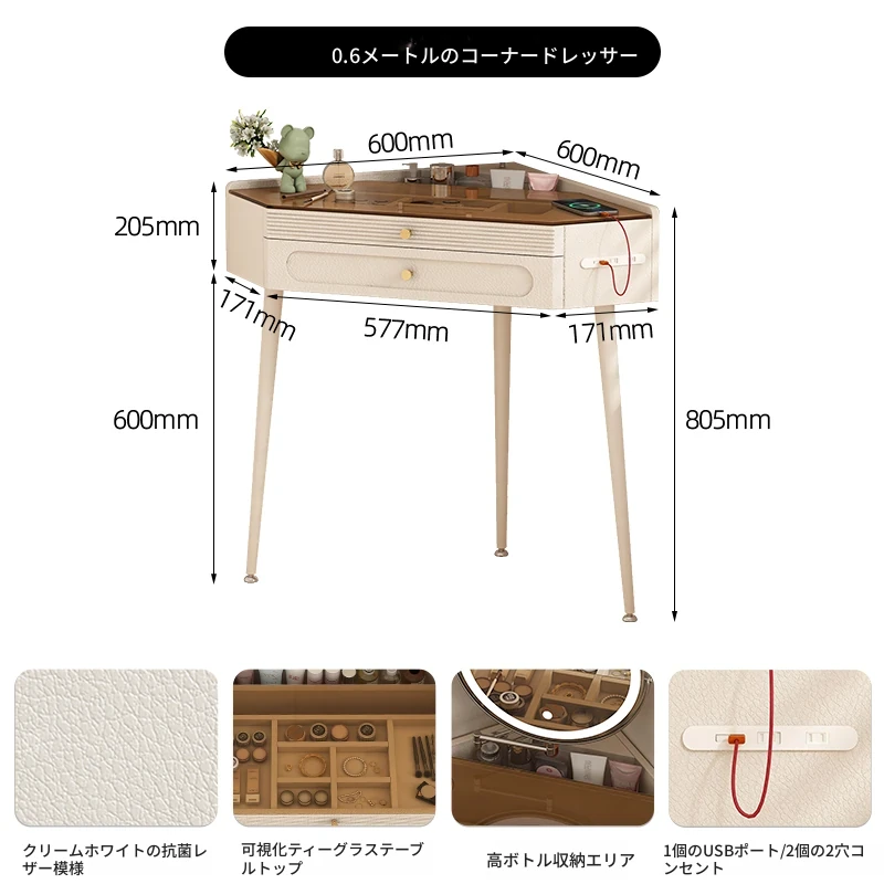 【魅力アップ!】クリーム風デザインの大人用デスク&収納一体型キャビネット:省スペースで機能的なリビングや小さな寝室にぴったりのコーナーデスク!