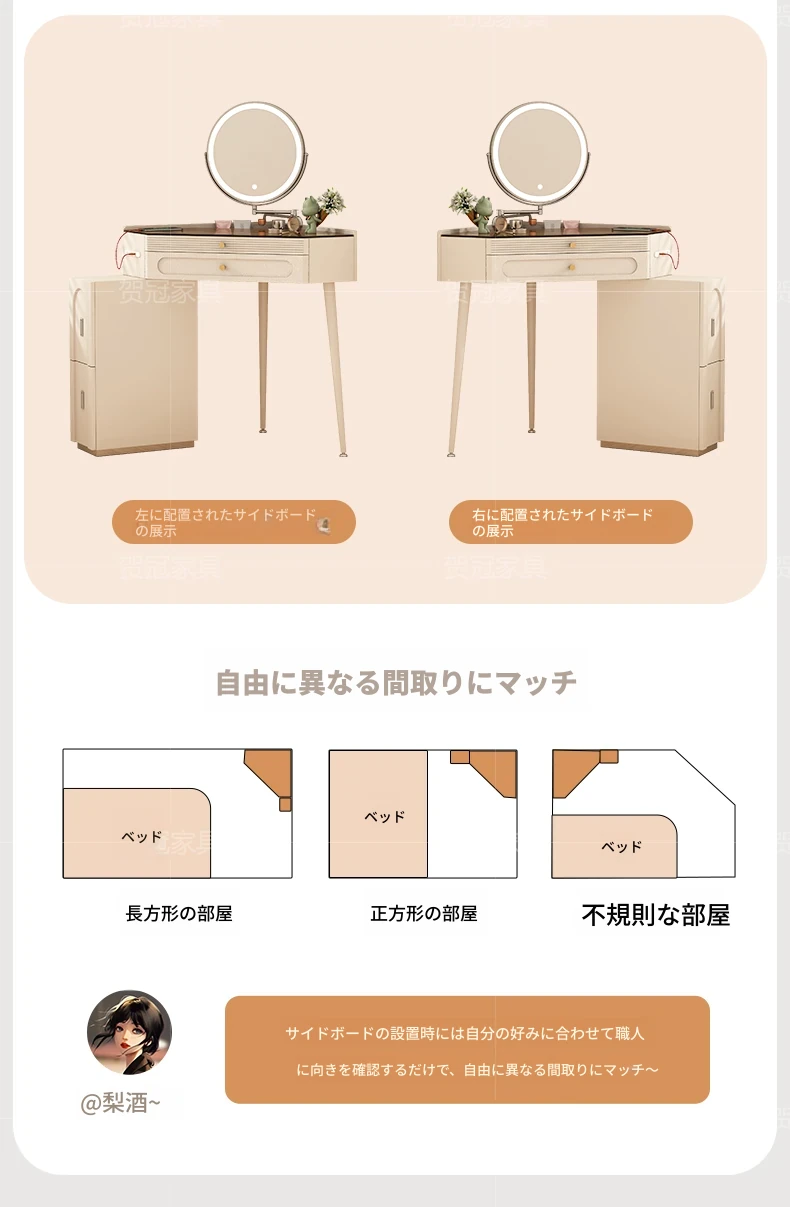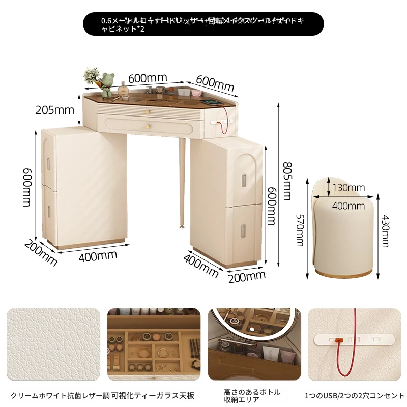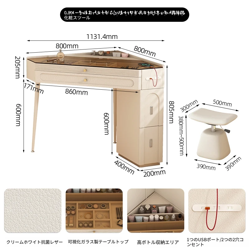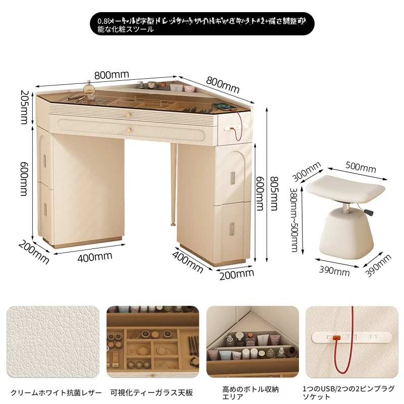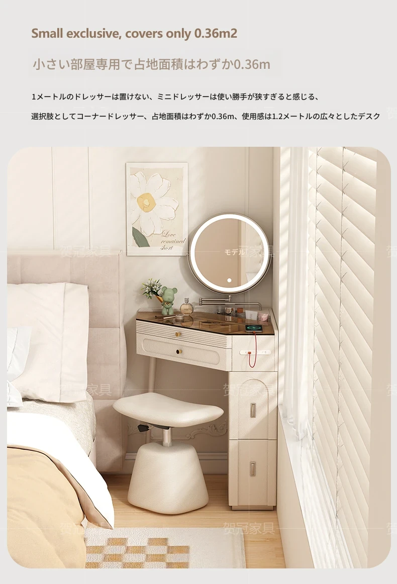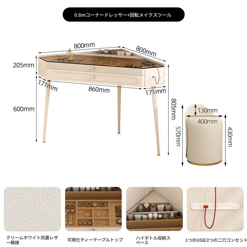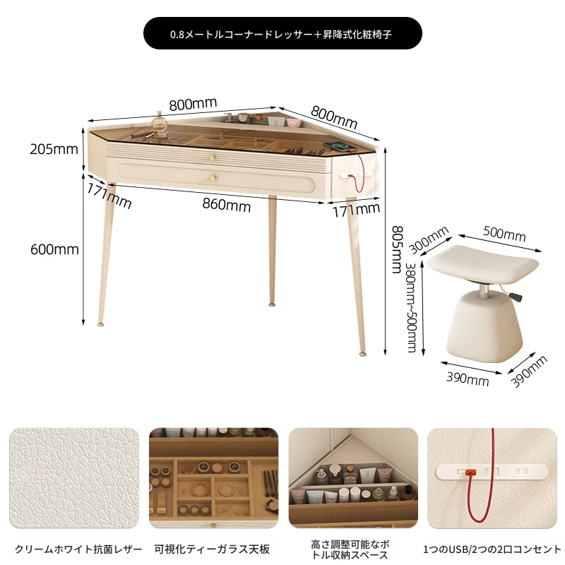 【魅力アップ!】クリーム風デザインの大人用デスク&収納一体型キャビネット:省スペースで機能的なリビングや小さな寝室にぴったりのコーナーデスク!