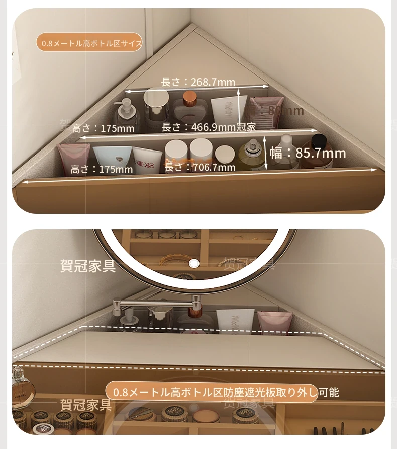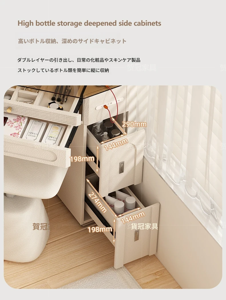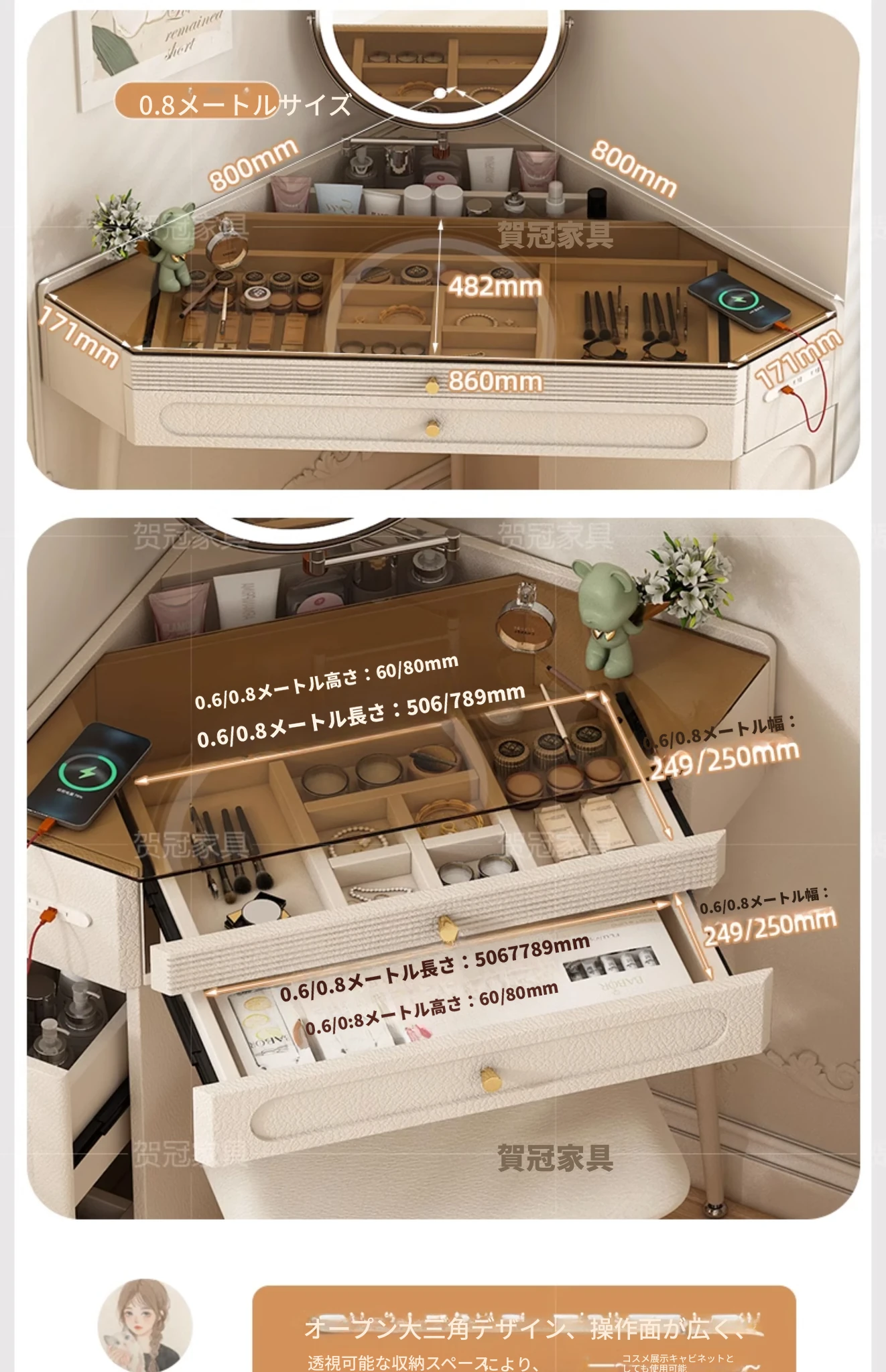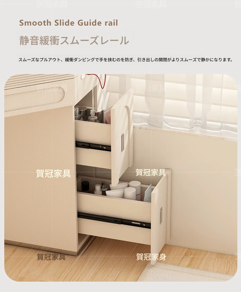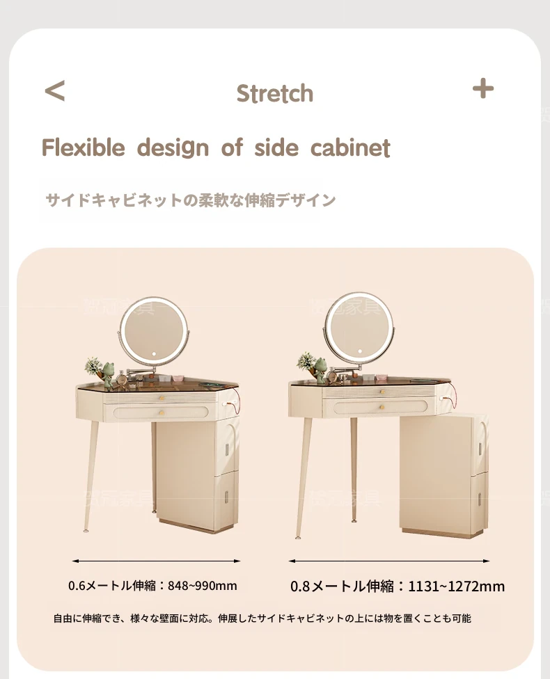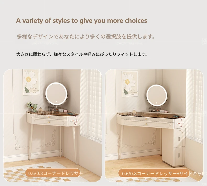 【魅力アップ!】クリーム風デザインの大人用デスク&収納一体型キャビネット:省スペースで機能的なリビングや小さな寝室にぴったりのコーナーデスク!