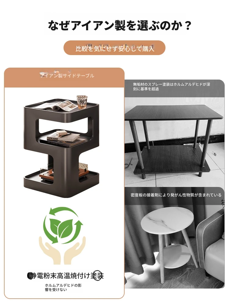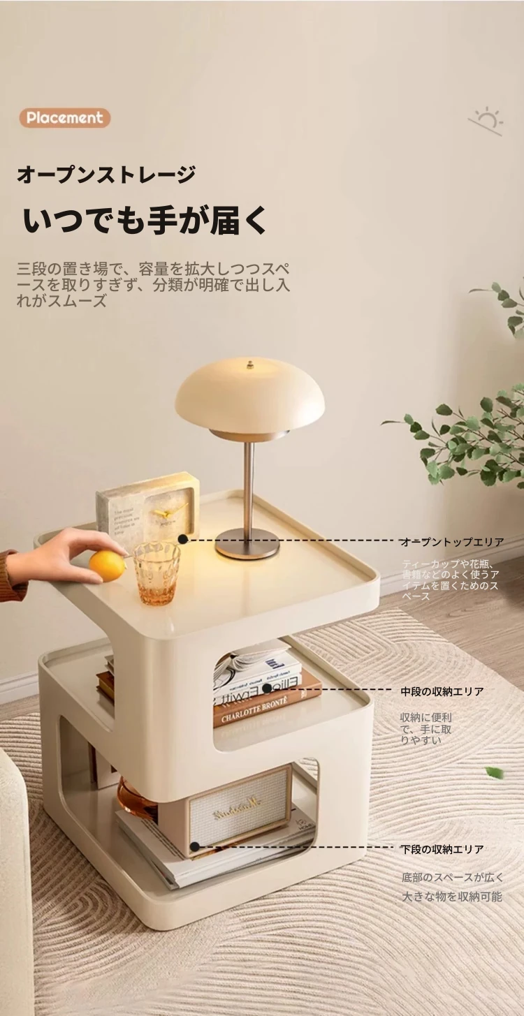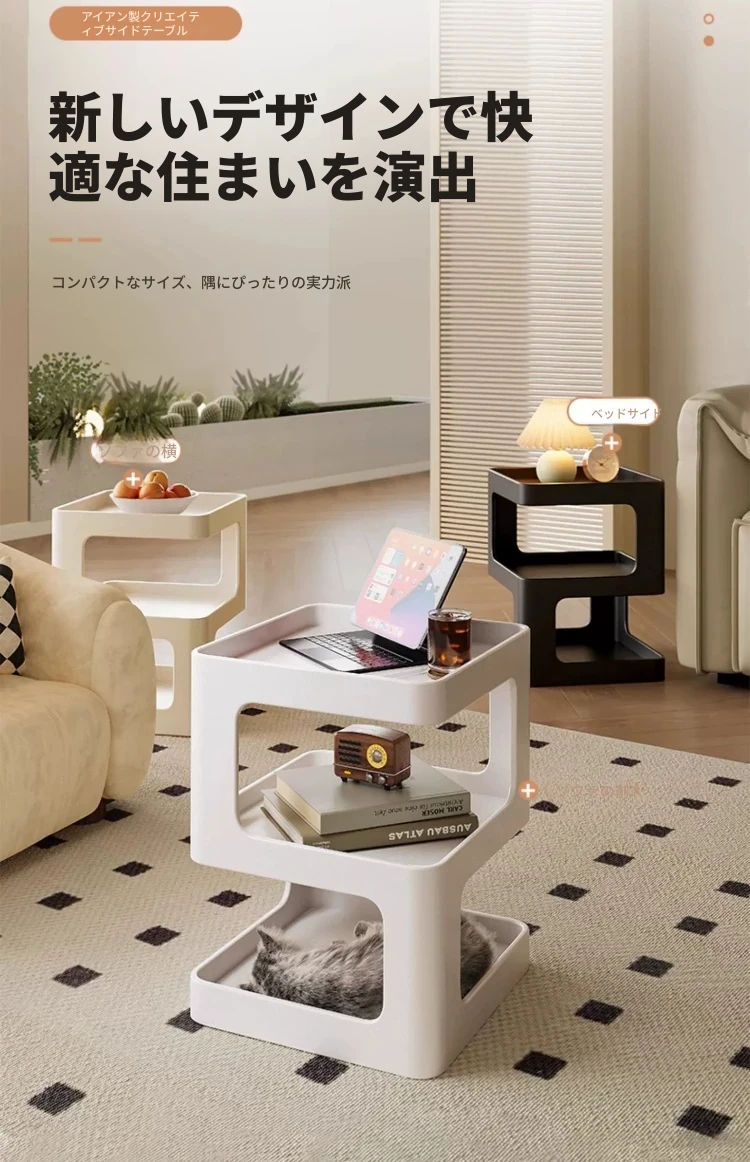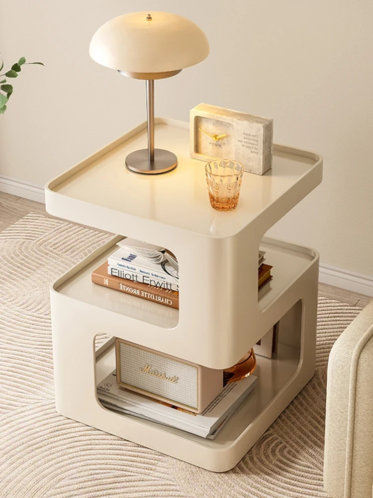 クリーム風アイアン製ナイトテーブル - シンプルでモダンなデザイン、家のリビングや寝室にぴったり!移動可能で、ソファの横に置いても便利なクリエイティブな代替品。