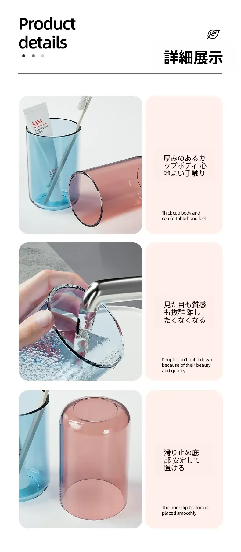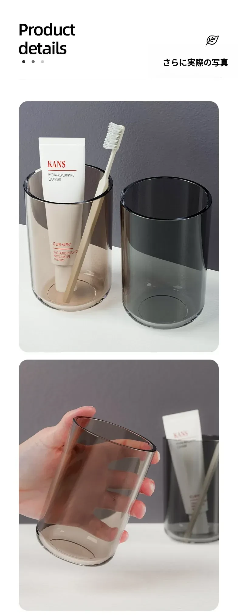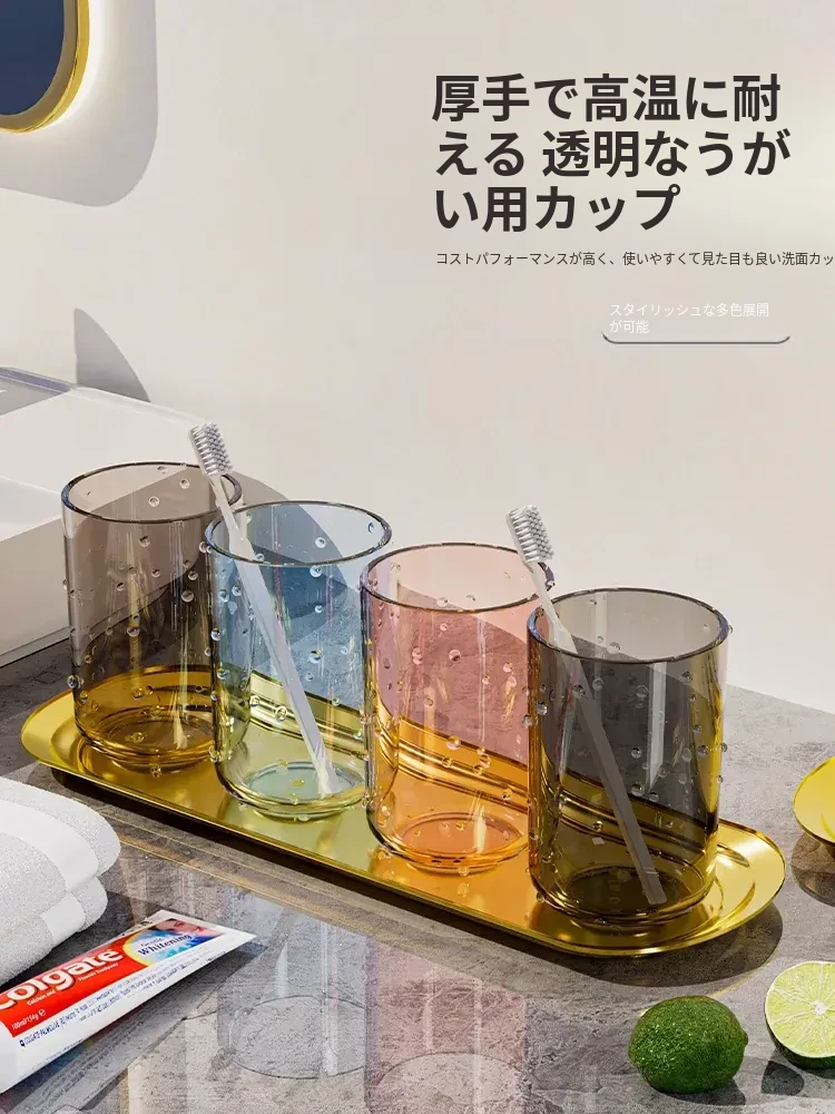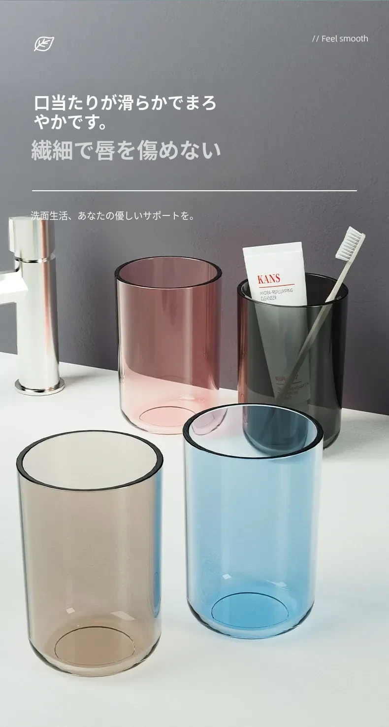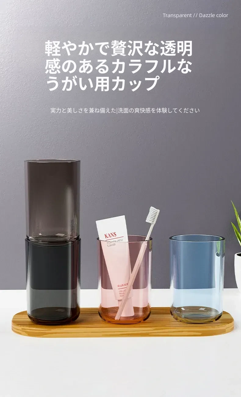 シンプルでスタイリッシュなペア用透明歯ブラシカップ – 家庭用厚手プラスチック製、オシャレな洗面用カップで毎日の歯磨きを楽しく!
