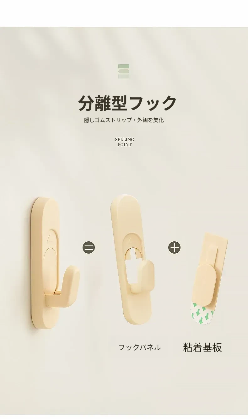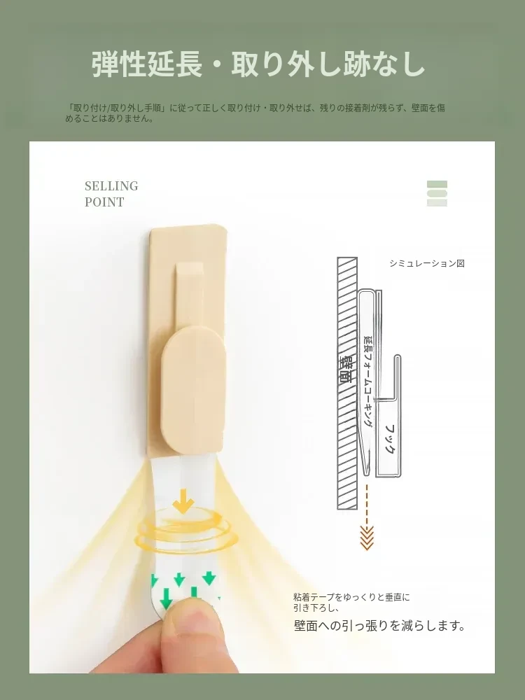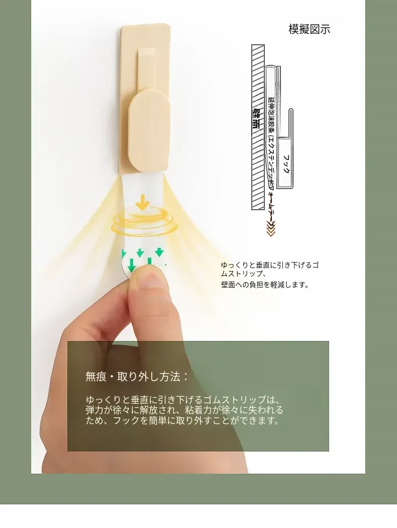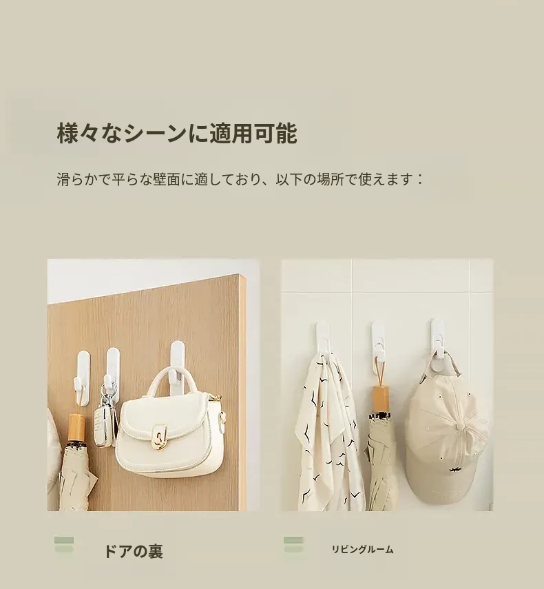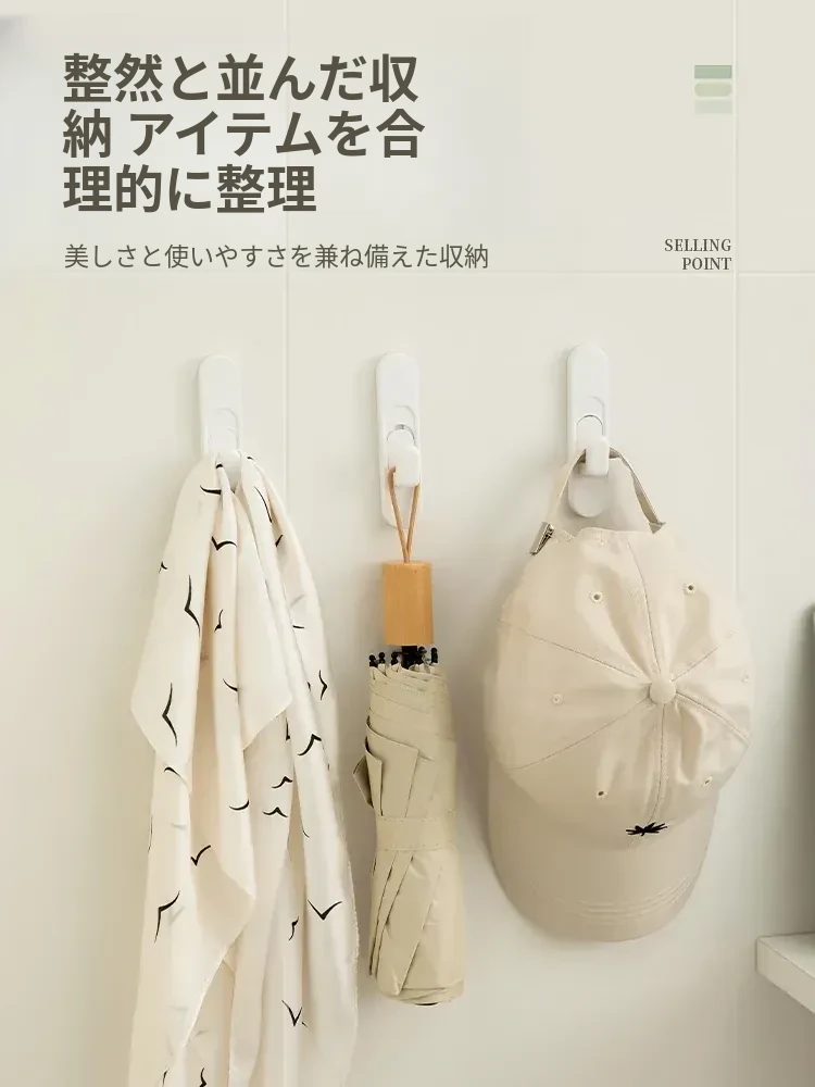 創造的フック 強力粘着剤で穴あけ不要!壁に貼れるフック、キッチンやバスルーム、ドア裏に最適!壁を傷めずにしっかり支える、便利でスタイリッシュな収納アイテム!