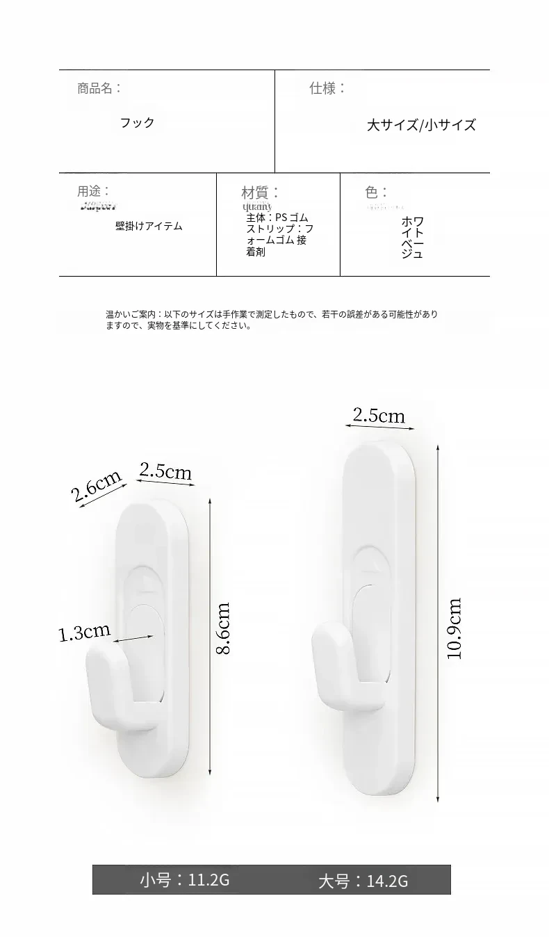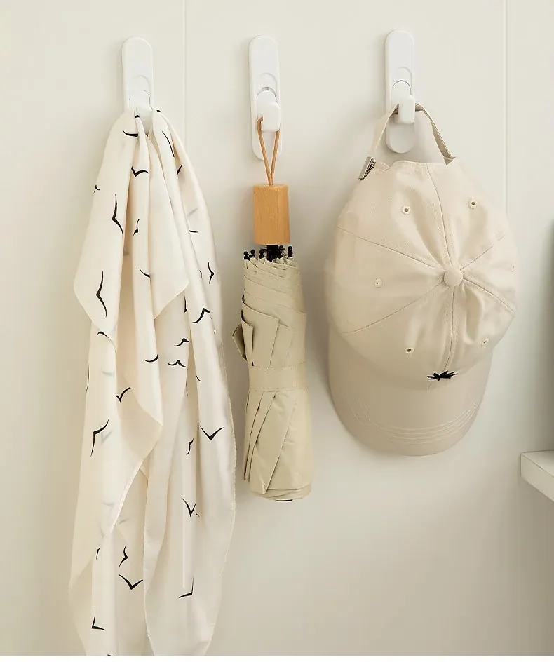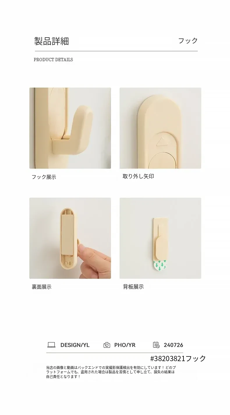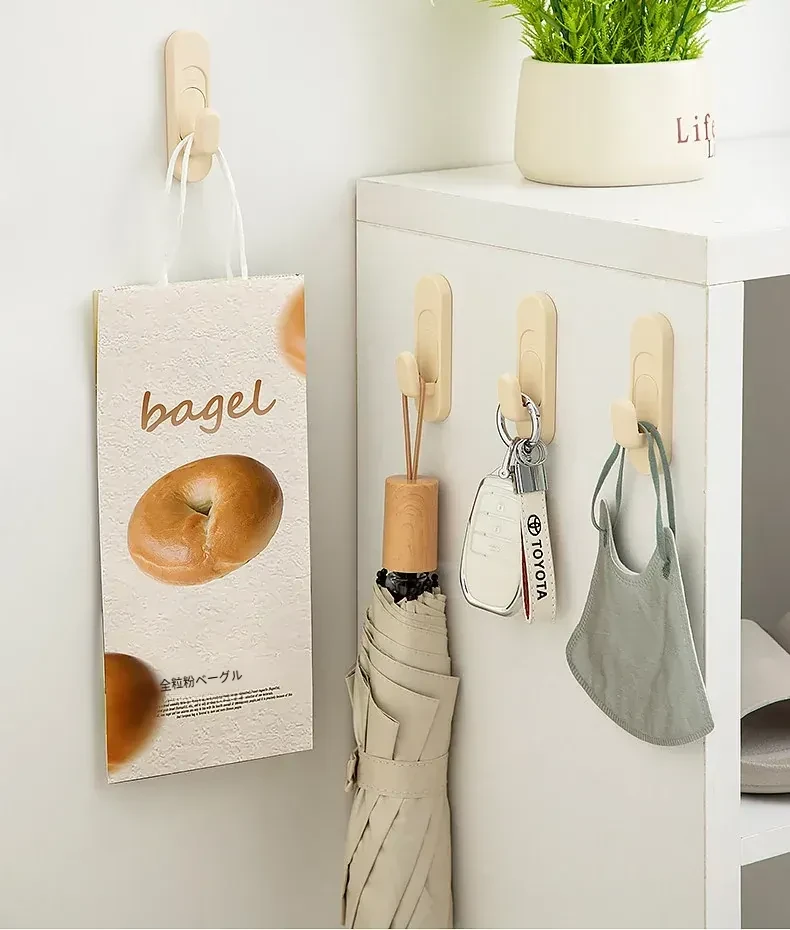 創造的フック 強力粘着剤で穴あけ不要!壁に貼れるフック、キッチンやバスルーム、ドア裏に最適!壁を傷めずにしっかり支える、便利でスタイリッシュな収納アイテム!