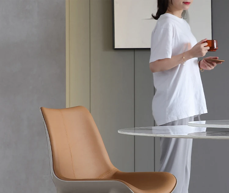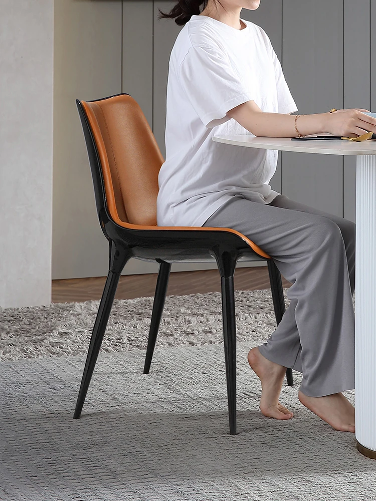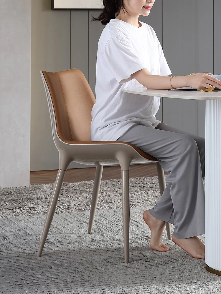 デザイナーズダイニングチェア|ミニマルなイタリアンラグジュアリー、上質な牛革使用|シンプルでモダンな家庭用レザー椅子|洗練されたデザインで、食卓を華やかに演出!