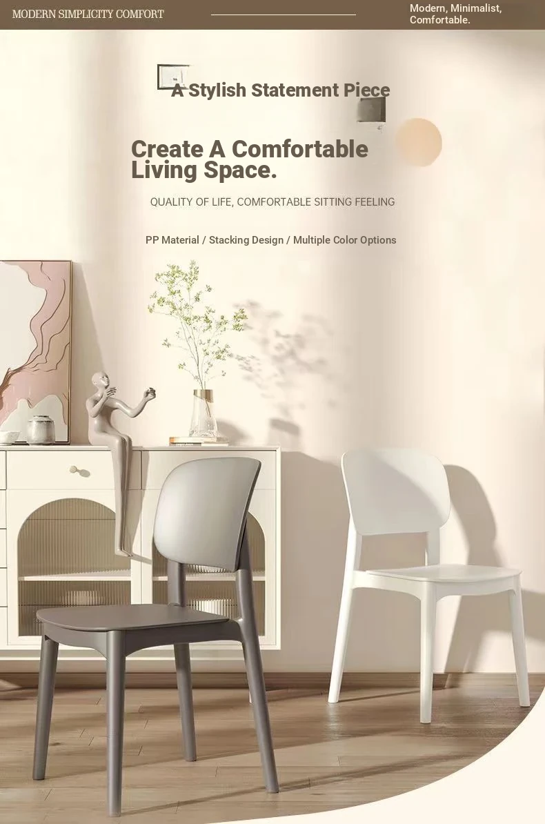 Durable Plastic Dining Chair for Home - Thickened Design for Comfort during Long Sitting - Modern Minimalist Style with Backrest - Perfect for Restaurants and Nordic Interiors
