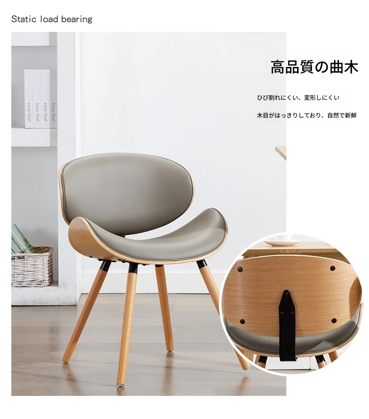 シンプルスタイル 欧風ミニマリストダイニングチェア 家庭用天然木製 ラグジュアリー感あふれる現代的なダイニングチェア メイクアップチェア シェルデザインの椅子で、洗練された空間を演出!