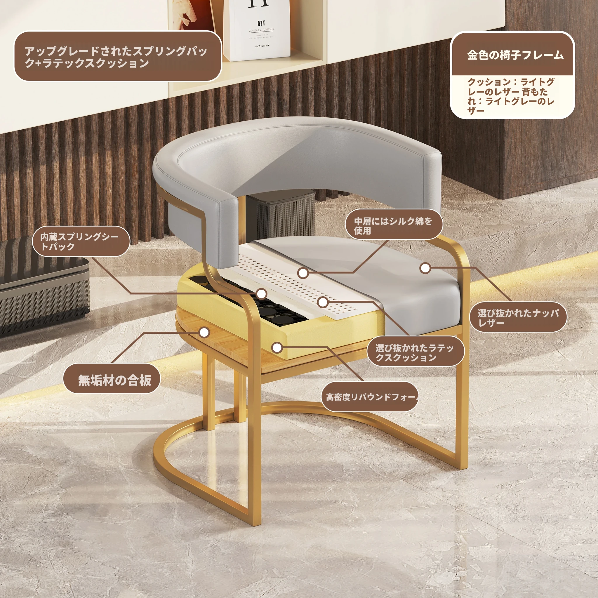ライトブラウン色【金メッキ椅子フレーム】