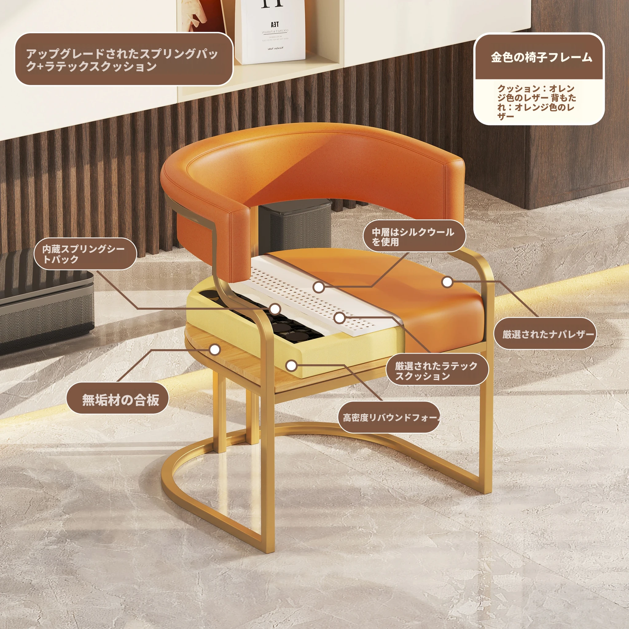 オレンジ色【金メッキ椅子フレーム】