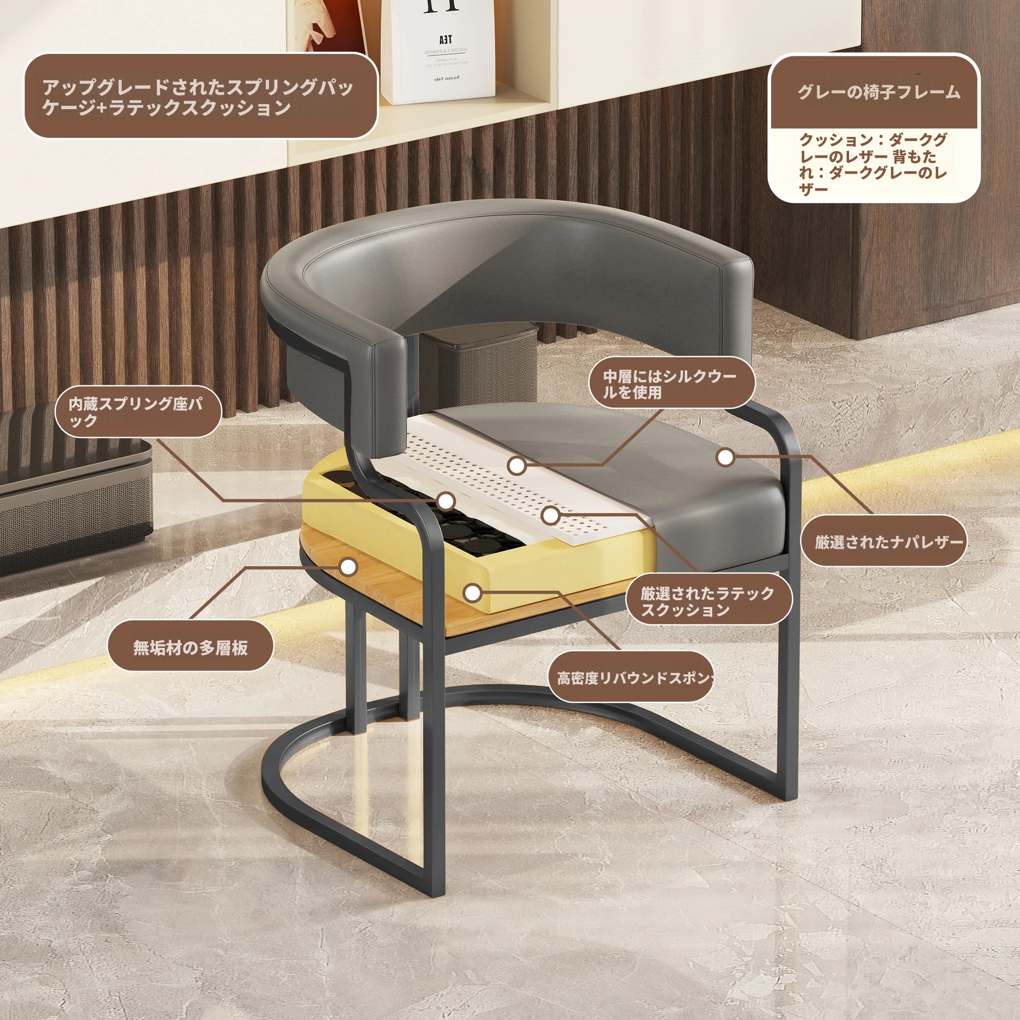 ダークグレー【アップグレードクッション★グレー椅子フレーム】