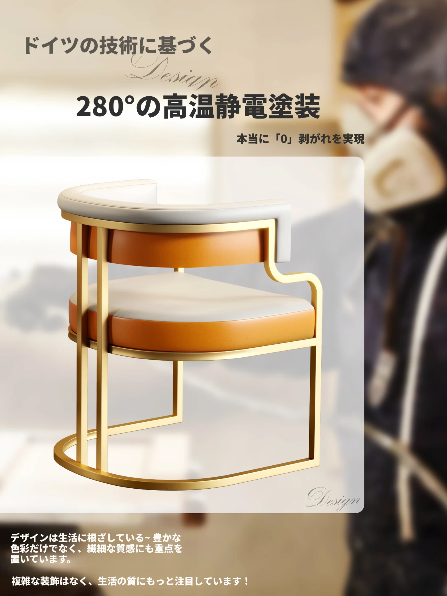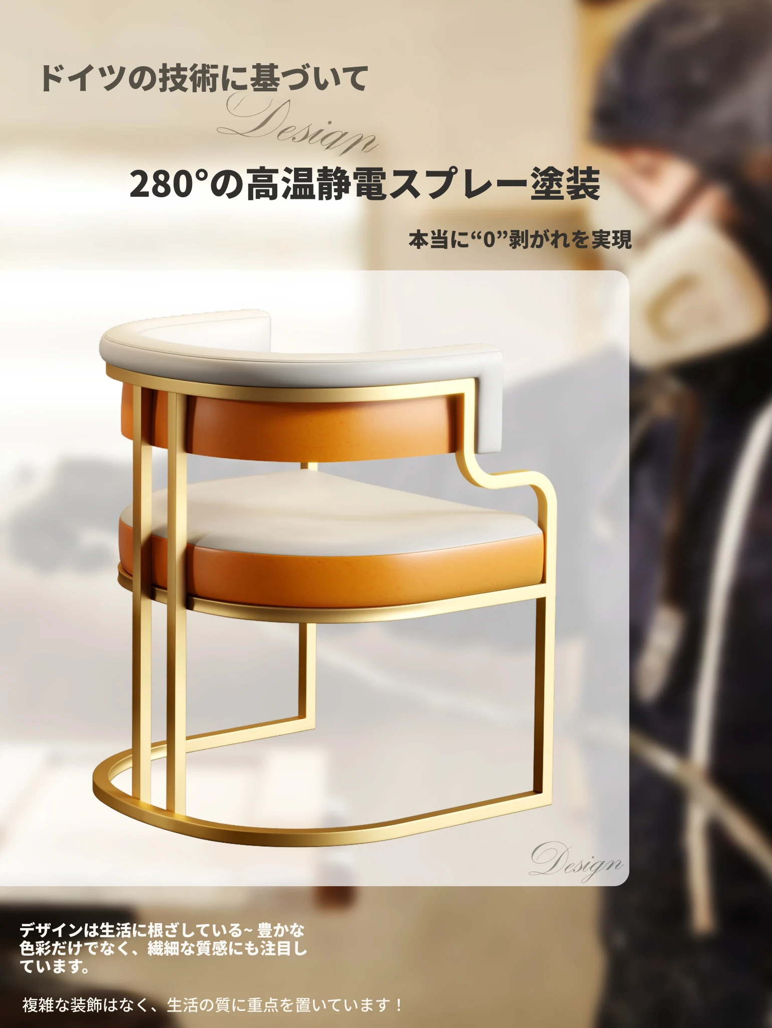 アイボリー+オレンジ色【高温静電スプレー金椅子フレーム】