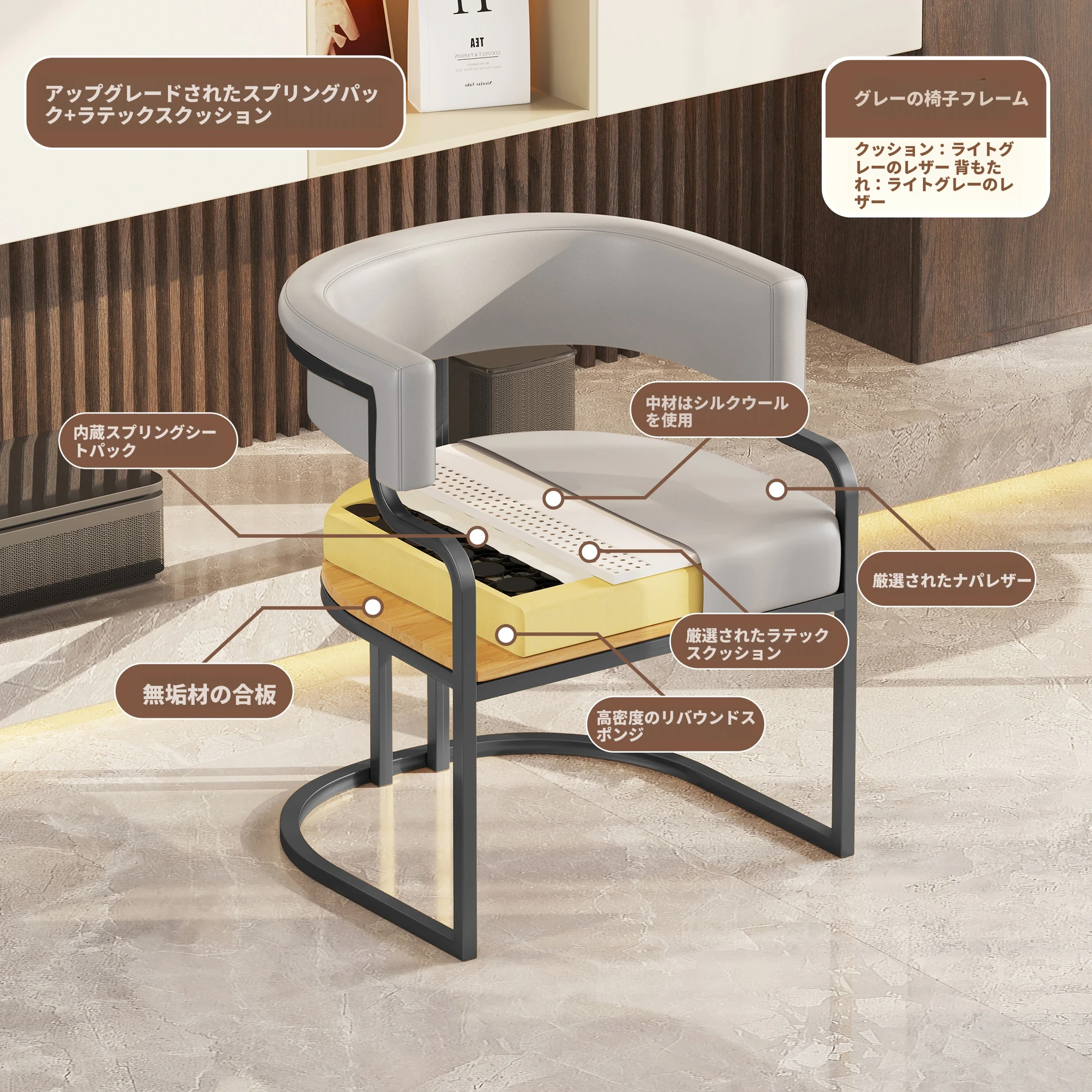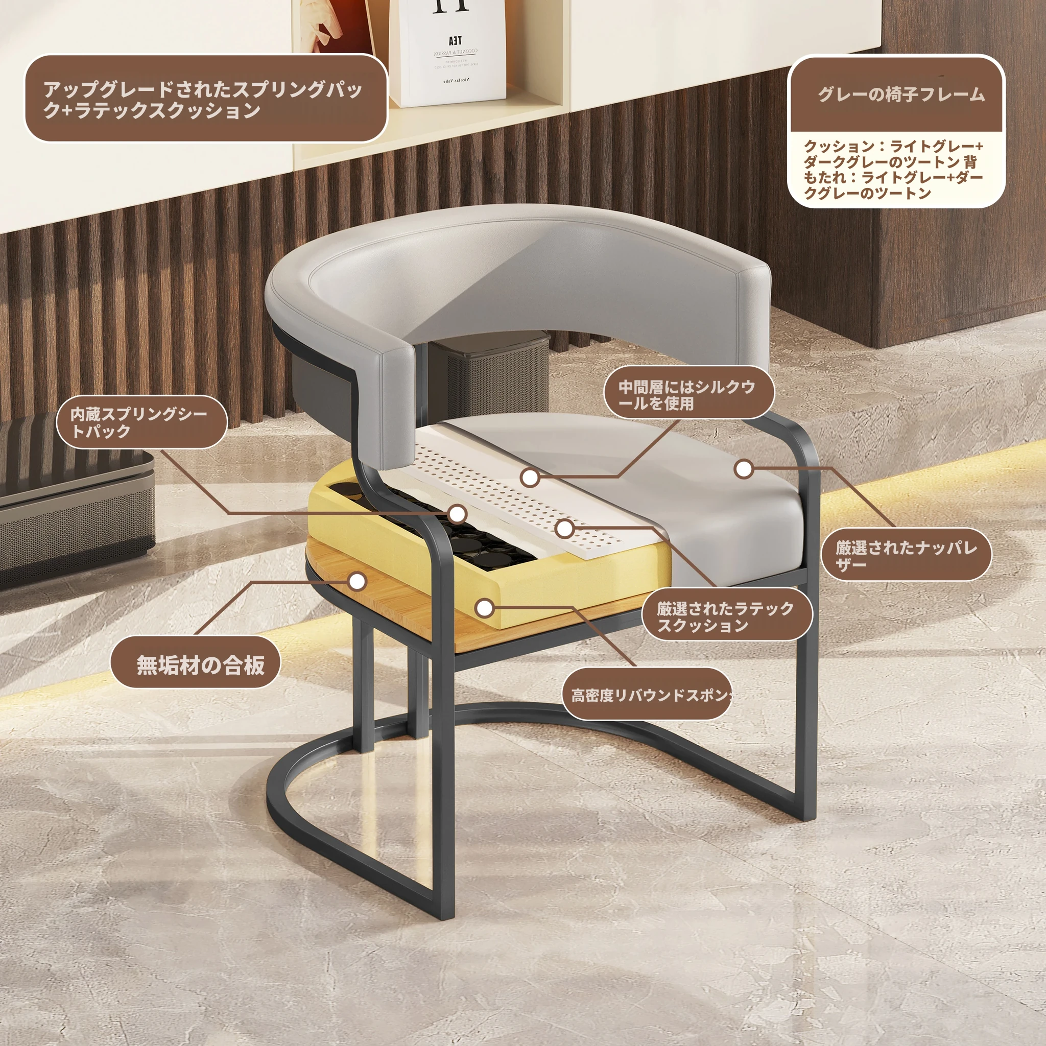 ライトグレー【アップグレードクッション★グレー椅子フレーム】
