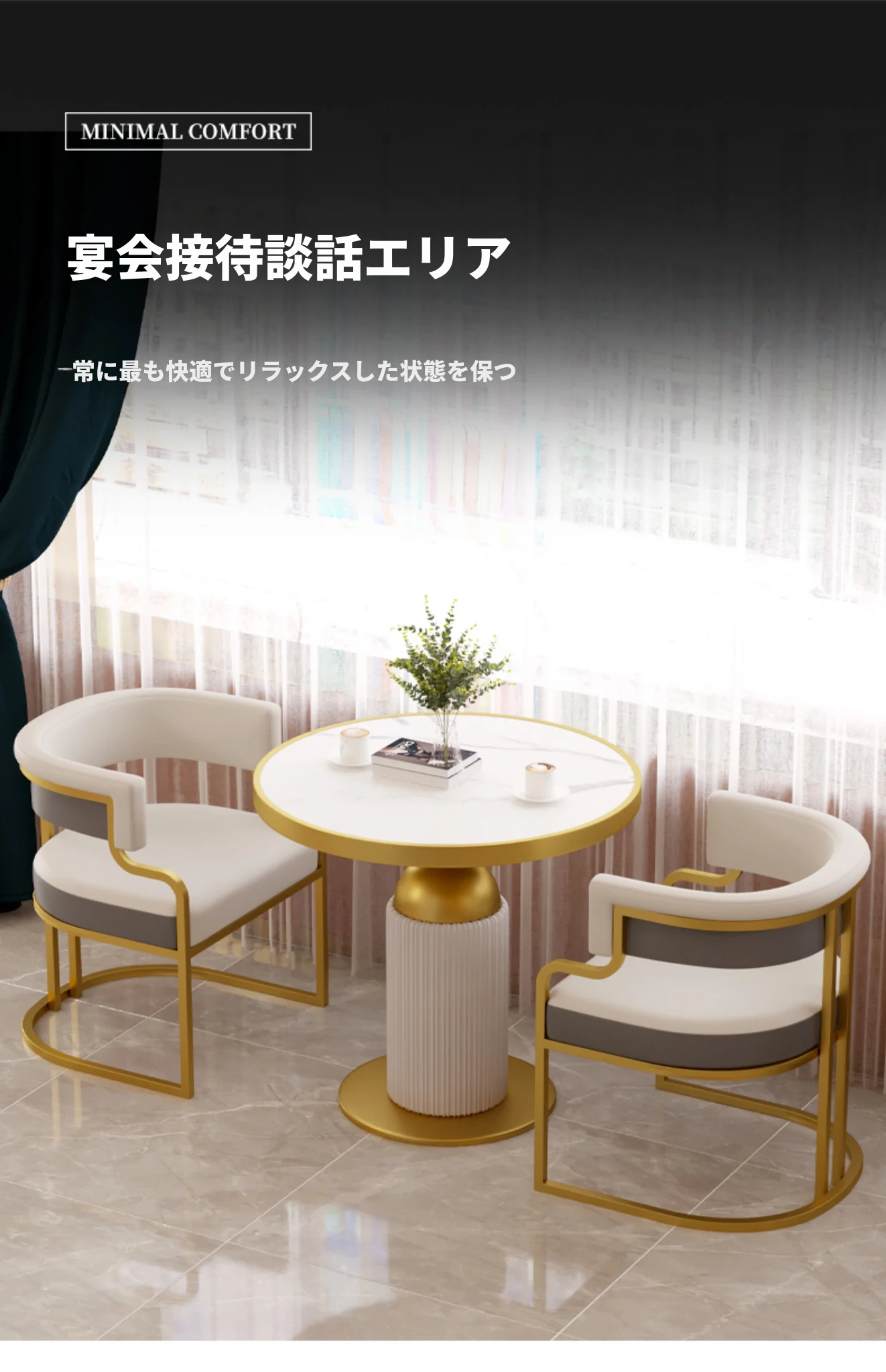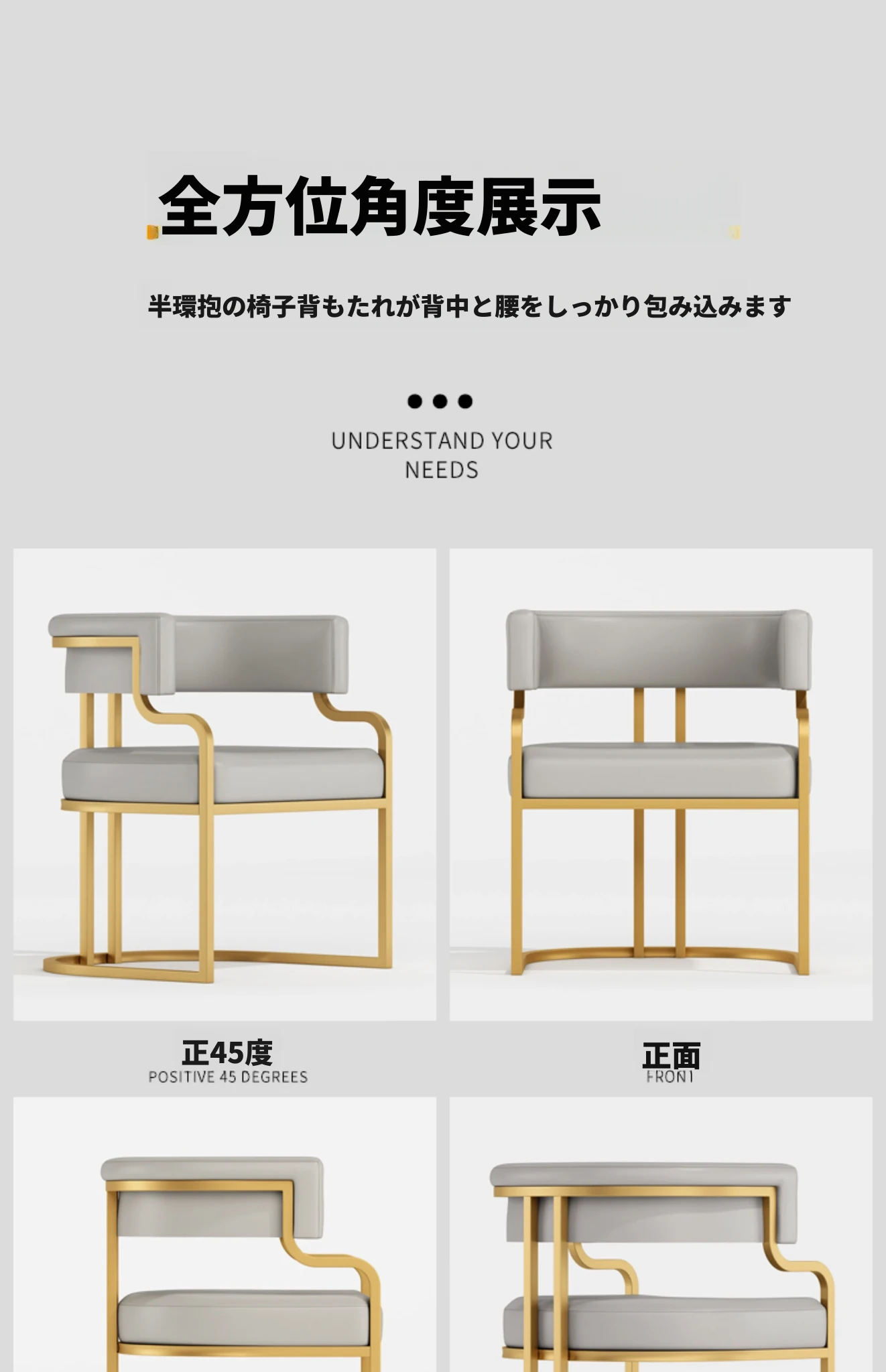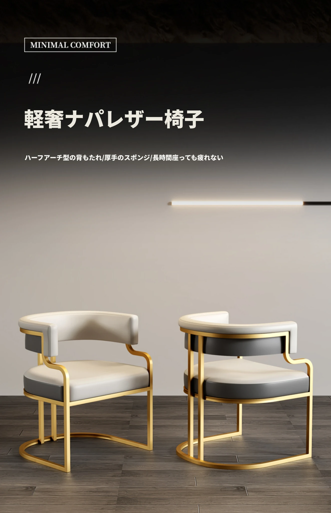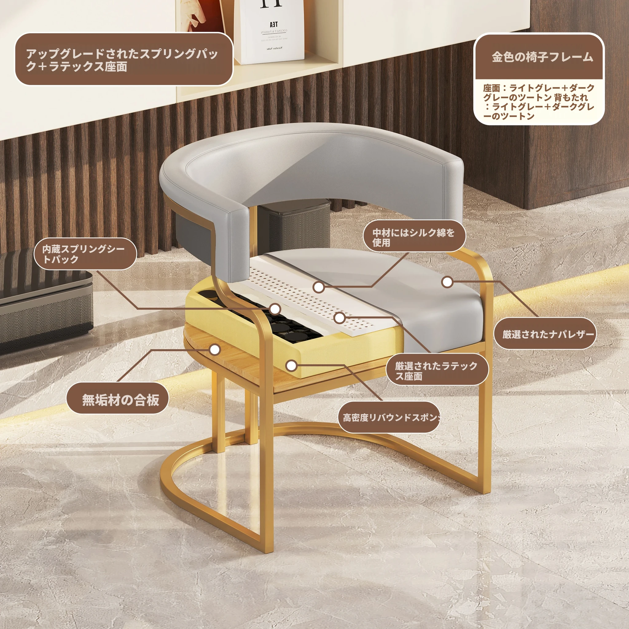 ライトグレー+ダークグレー色【金メッキ椅子フレーム】