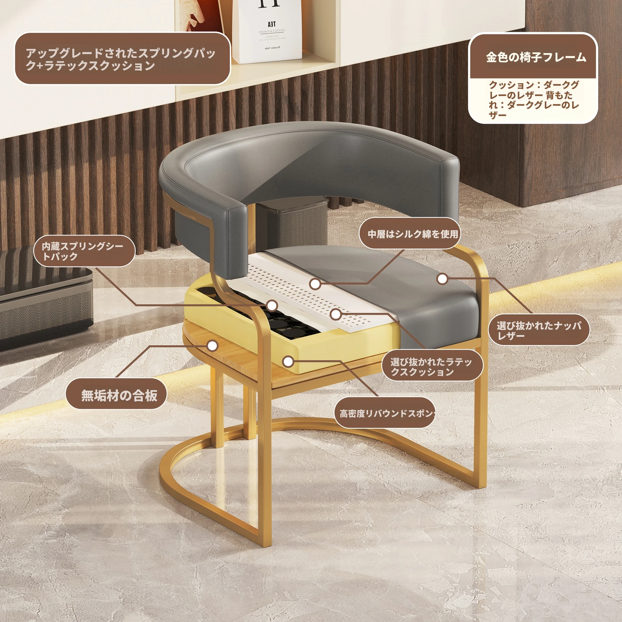 ダークグレー色【金メッキ椅子フレーム】