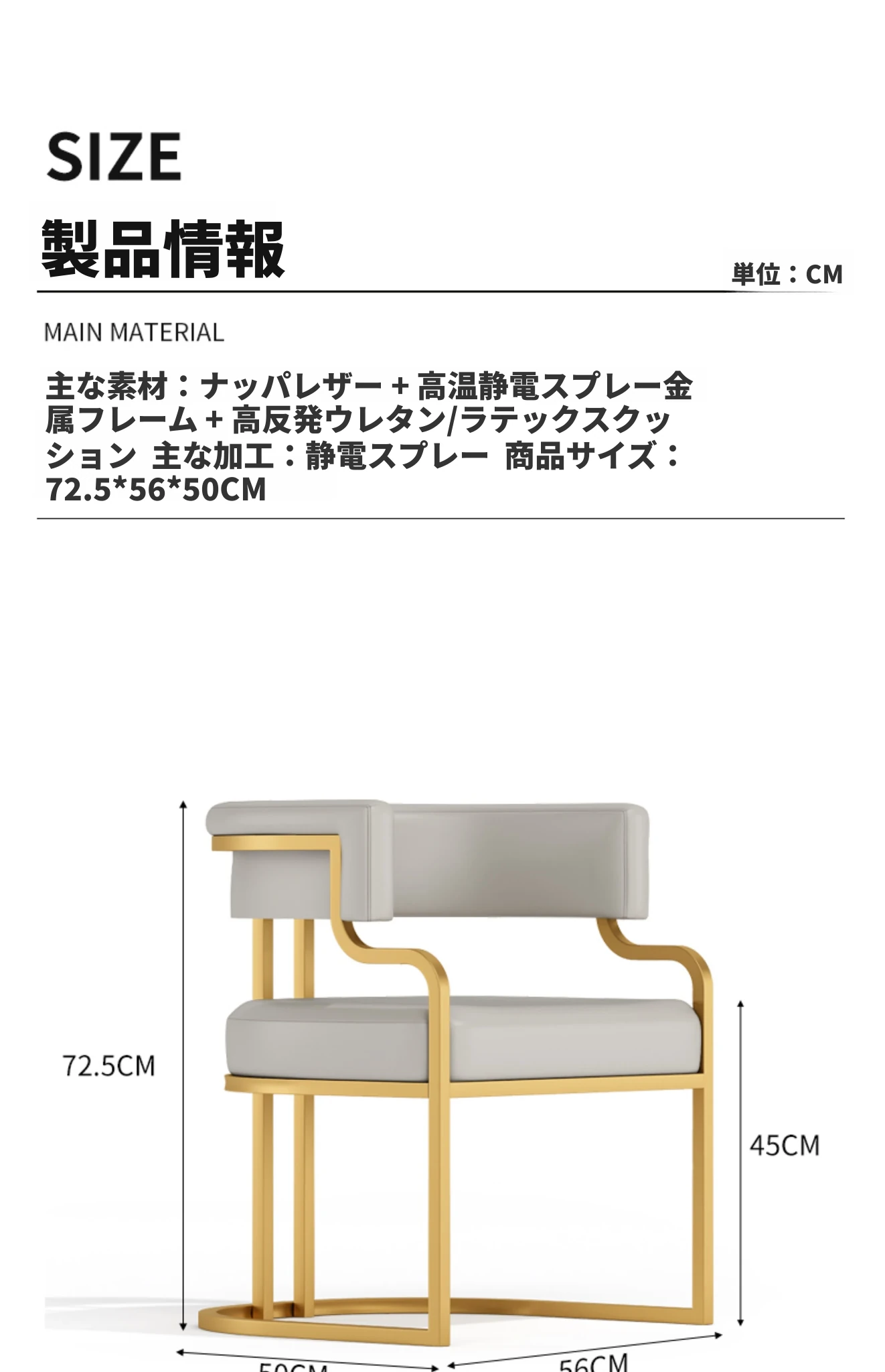 ライトグレー色【アップグレードクッション★スプレー金椅子フレーム】