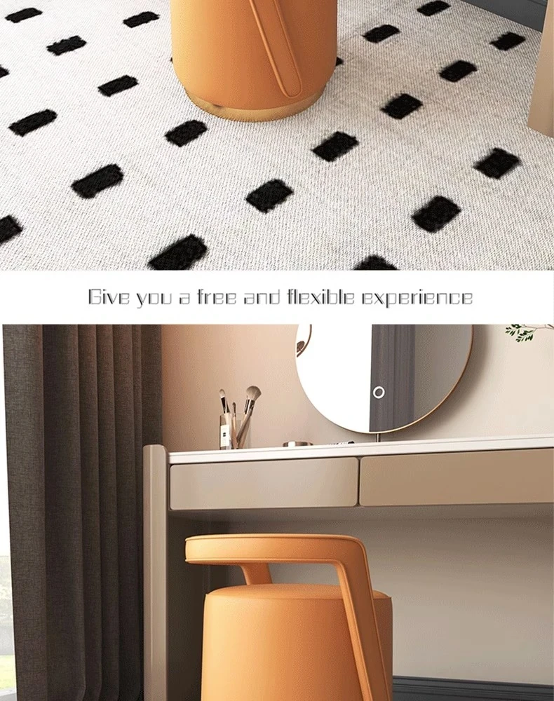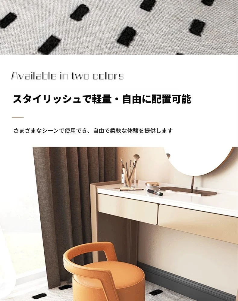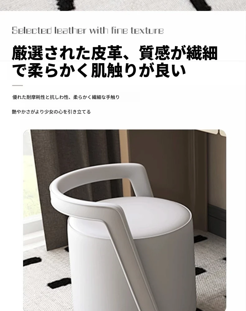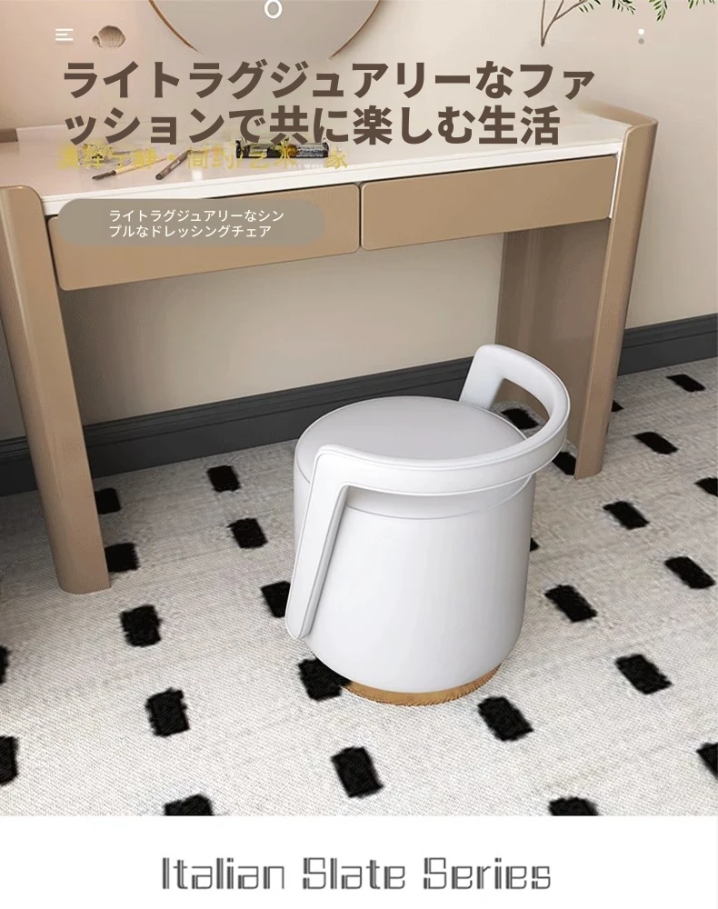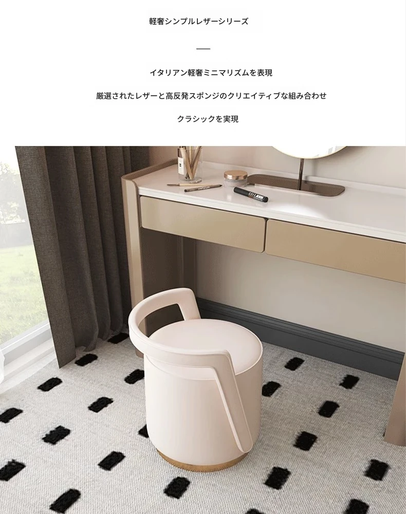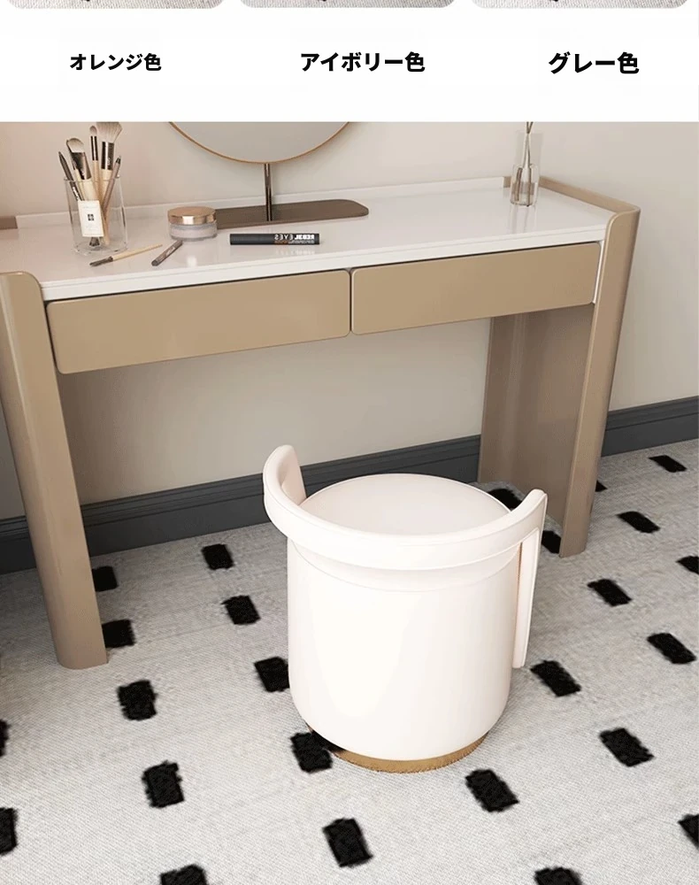 おしゃれな軽奢スタイルの化粧椅子!回転式で背もたれ付き、小スペースにも最適なシンプルデザイン。寝室のドレッサーにぴったりな化粧台用スツールです!