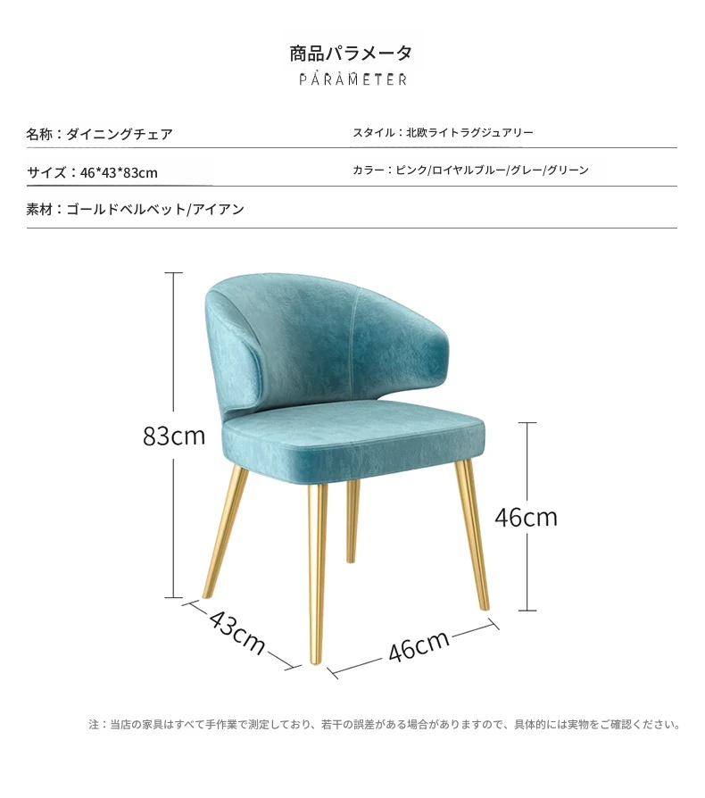 軽やかな贅沢感のあるダイニングチェア。シンプルでモダンなファブリックデザイン。ホテルやカフェに最適なイタリアンスタイルの談話椅子。リラックスできる背もたれ付きで、家庭やビジネスシーンを華やかに演出します。