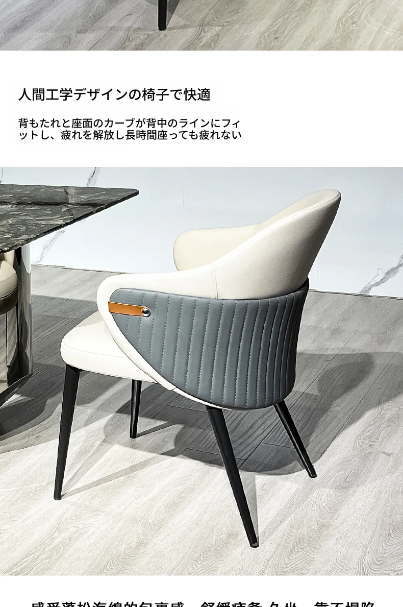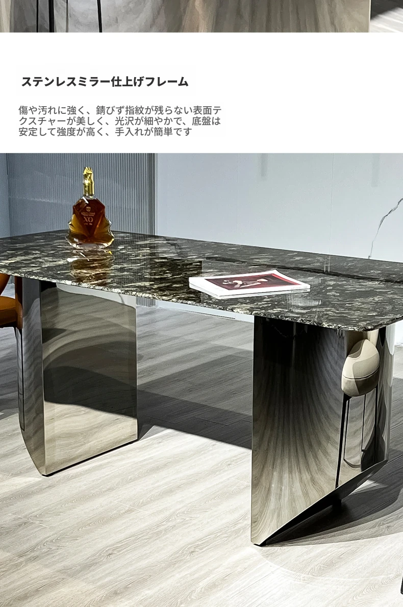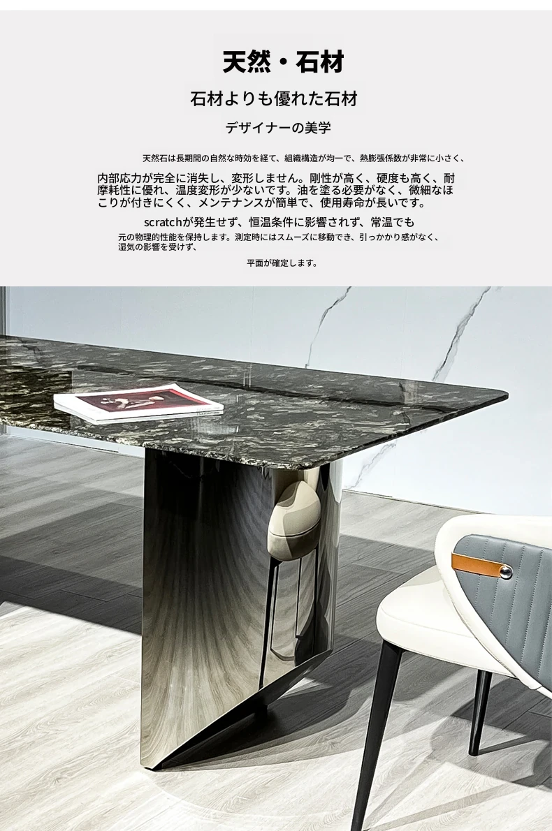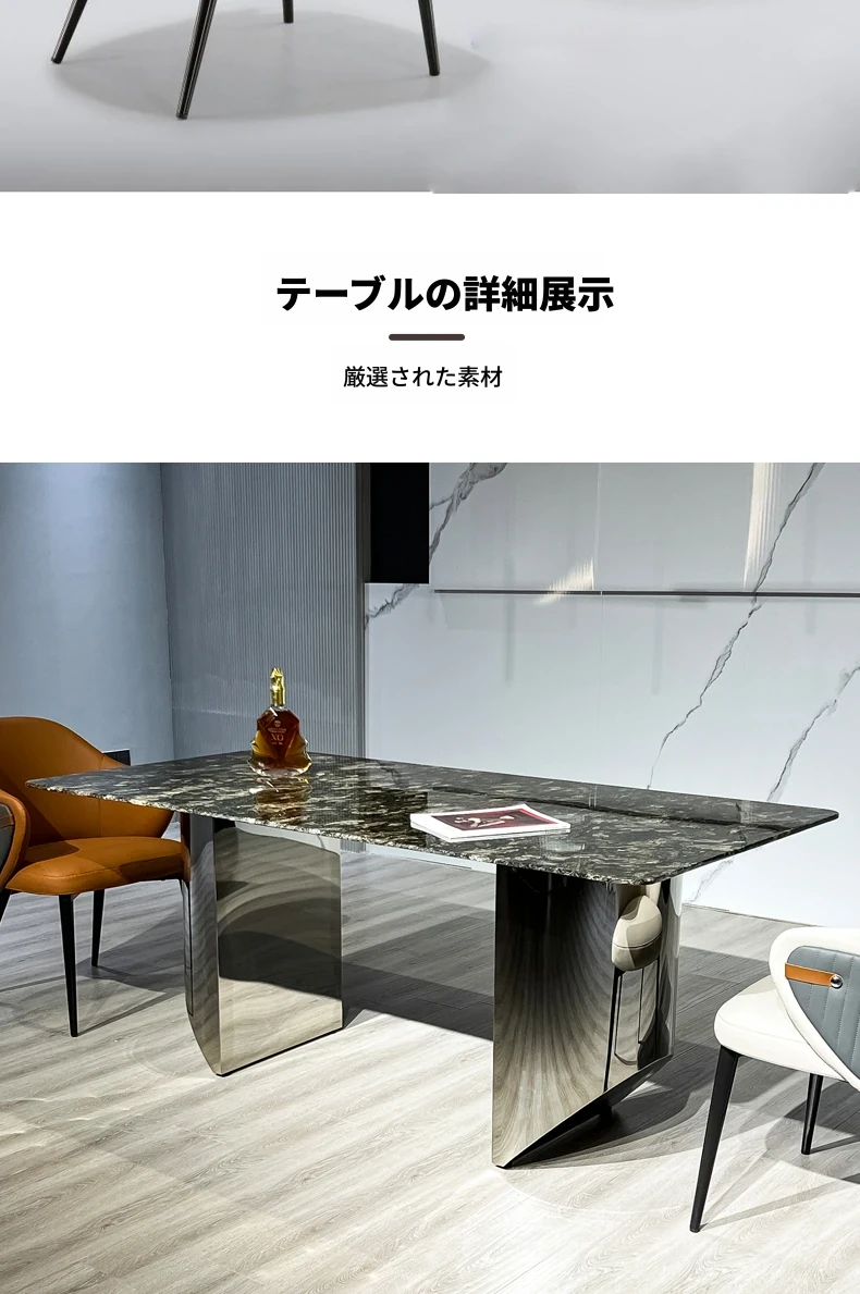 軽やかな贅沢感!天然大理石の長方形ダイニングテーブルセット【現代的ミニマリズム】ステンレススチール製の高級感あふれるダイニングチェア付き。家庭での食事を格上げする、スタイリッシュな選択!