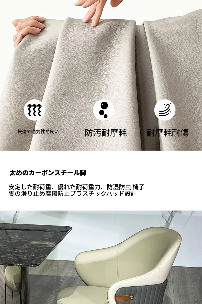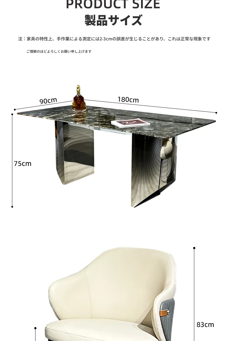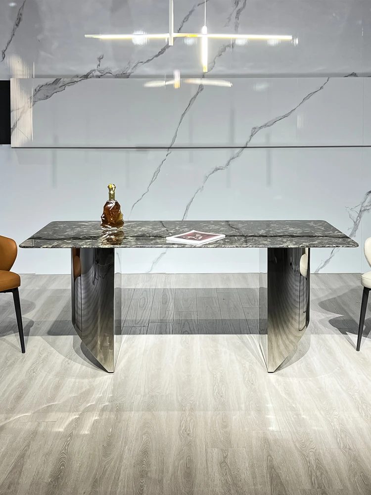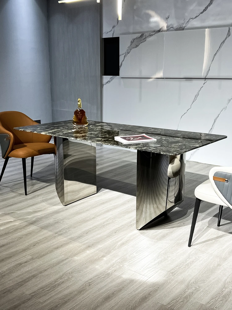 軽やかな贅沢感!天然大理石の長方形ダイニングテーブルセット【現代的ミニマリズム】ステンレススチール製の高級感あふれるダイニングチェア付き。家庭での食事を格上げする、スタイリッシュな選択!