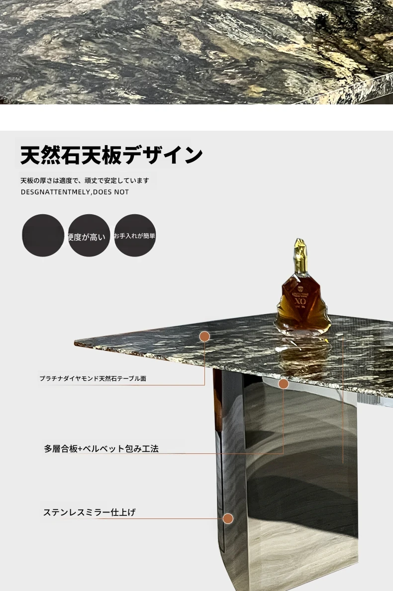 ステンレスミラー脚(天板大理石:プラチナダイヤ)