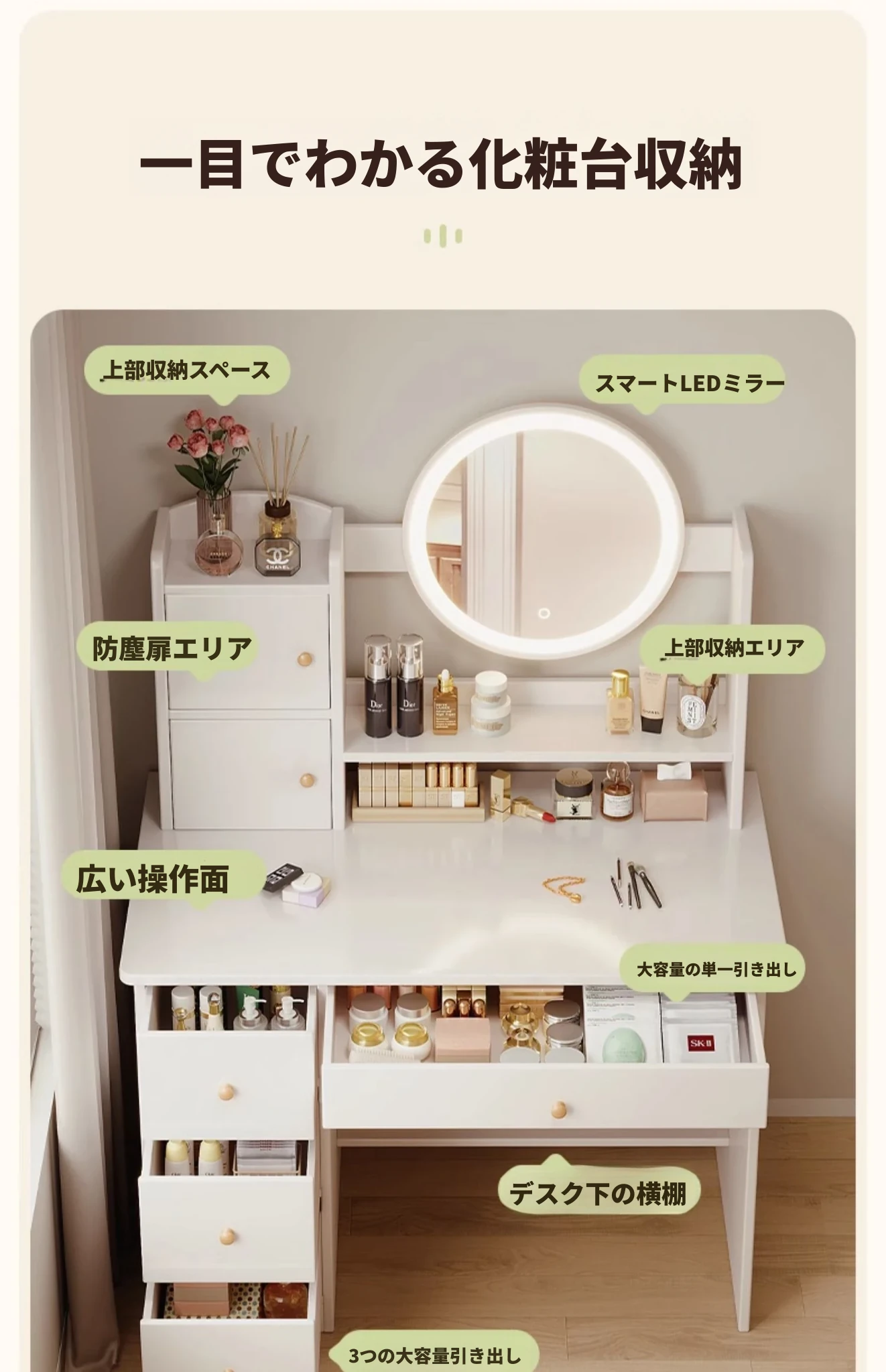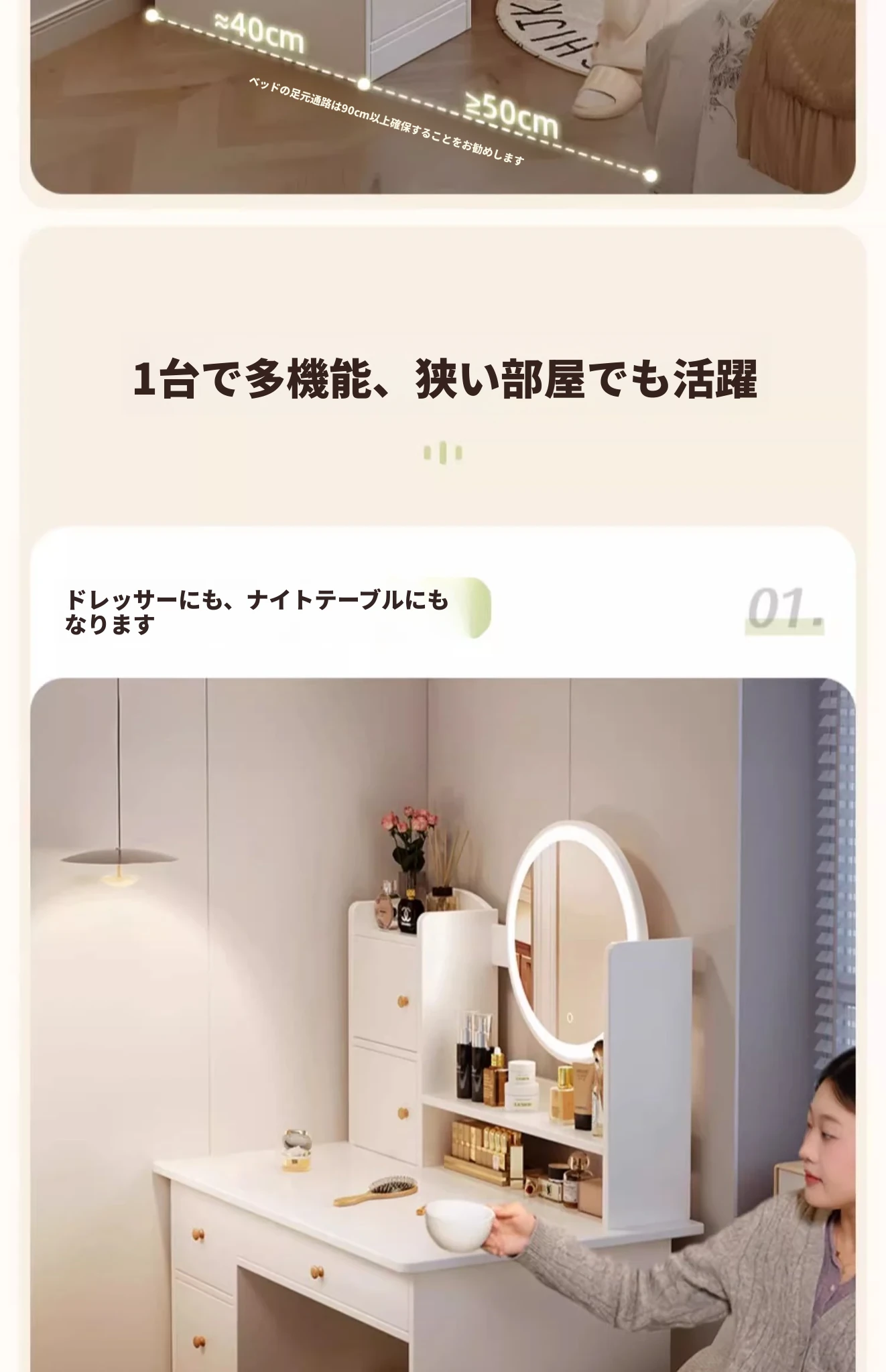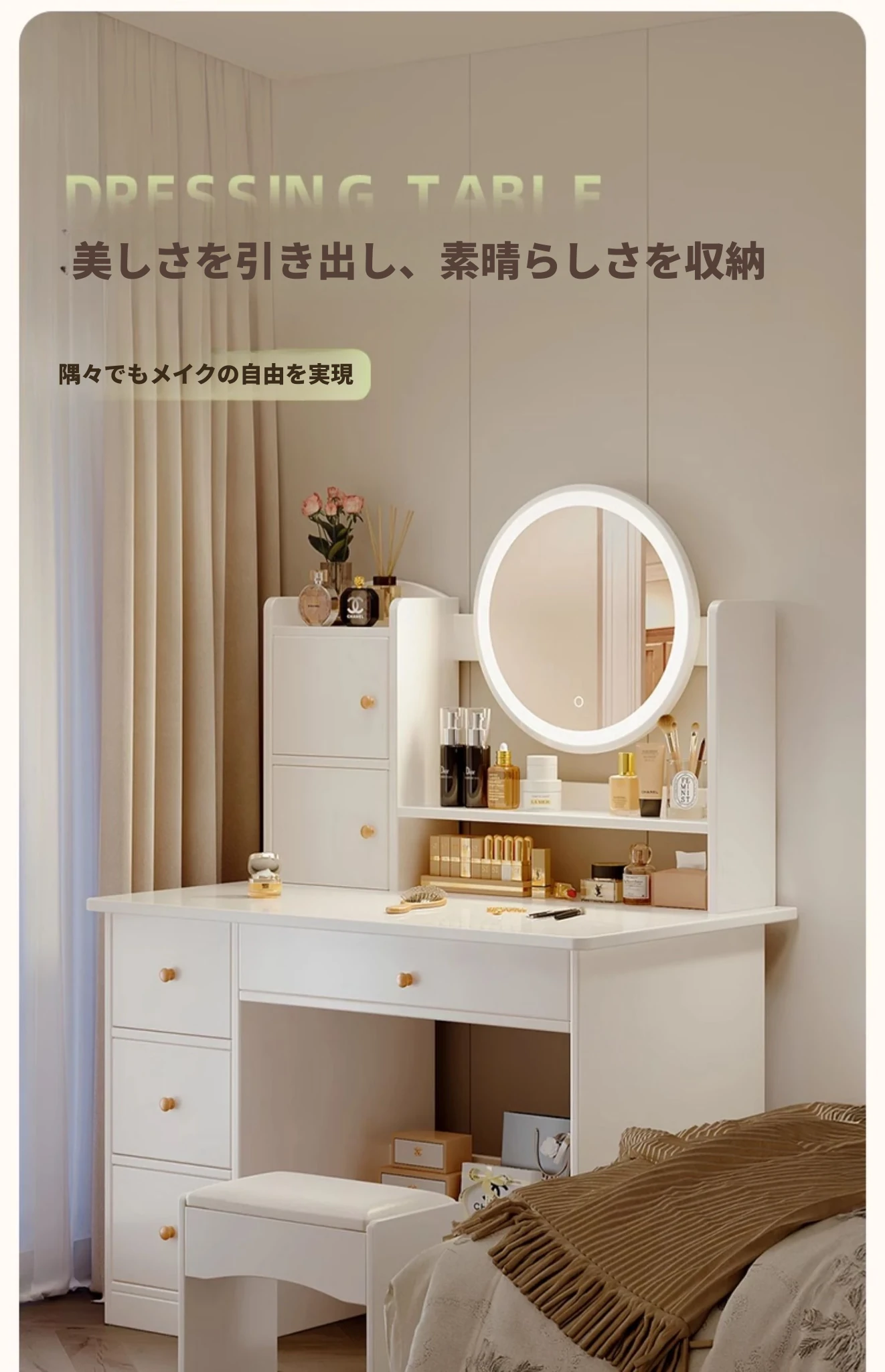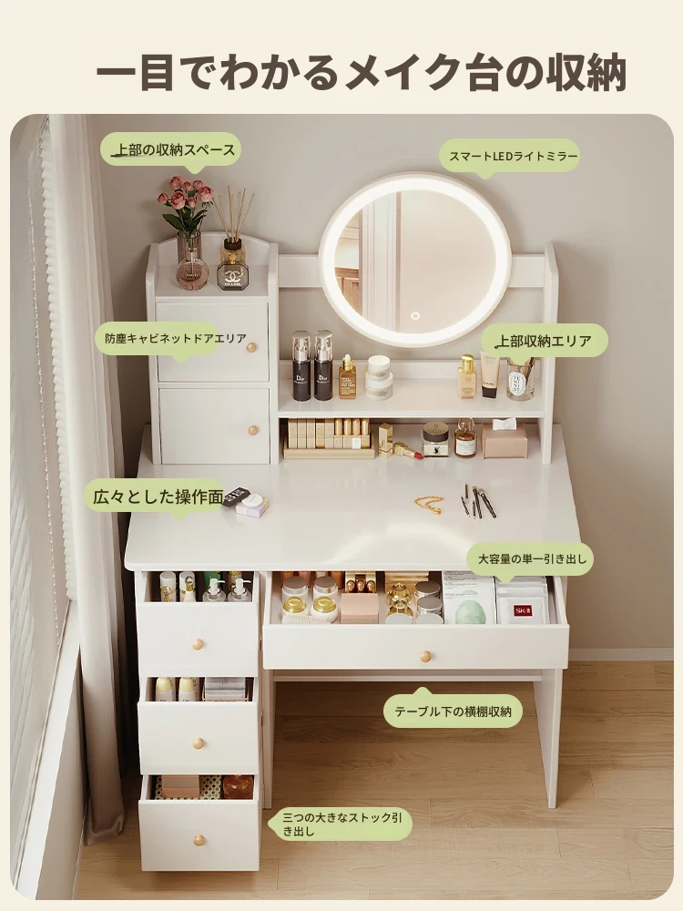 2025年新作!シンプルでモダンな寝室用ドレッサー - 小型寝室に最適なメイクアップデスク&収納一体型キャビネットで、使いやすさ抜群!勉強にも最適なデザイン!