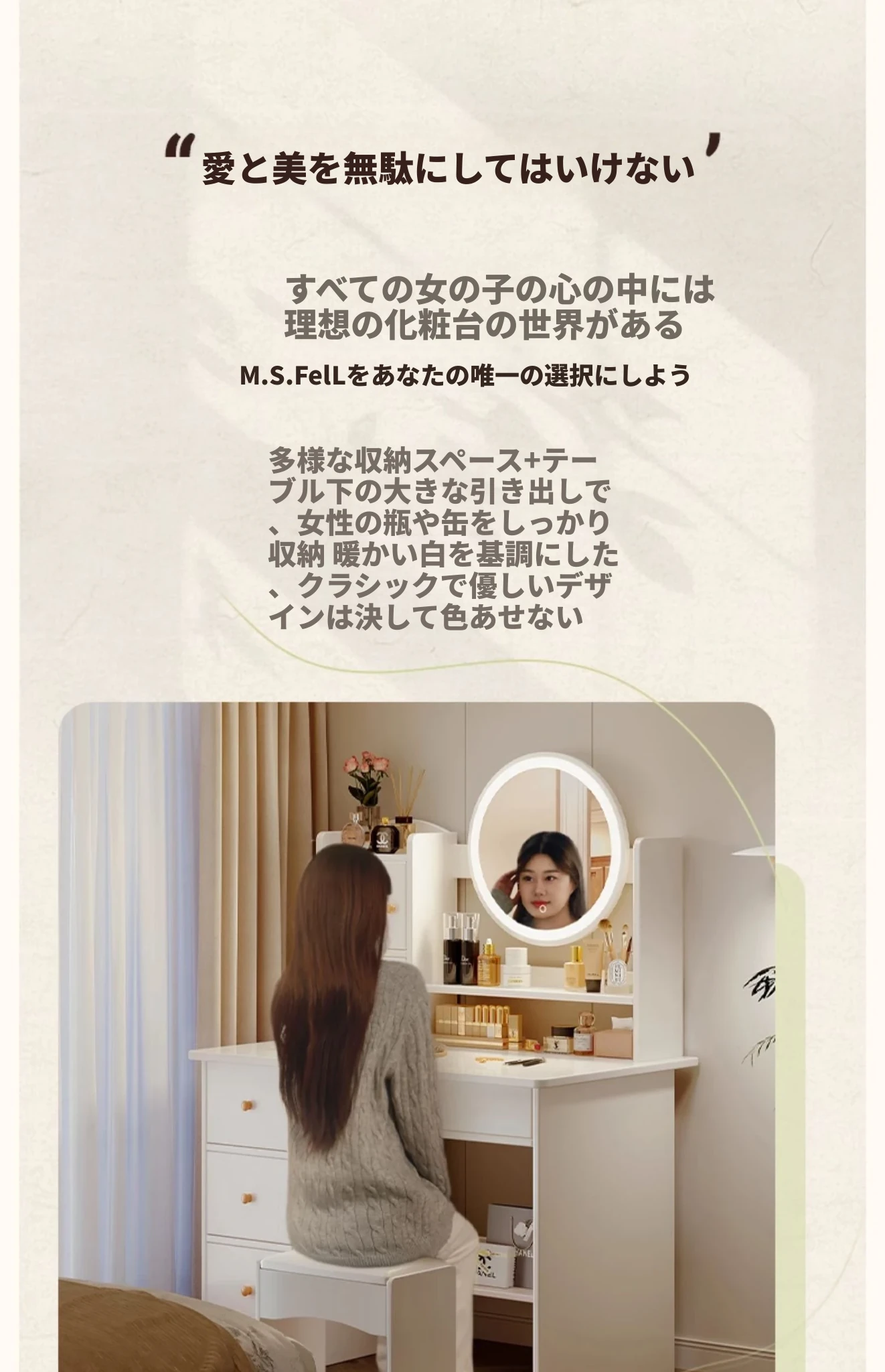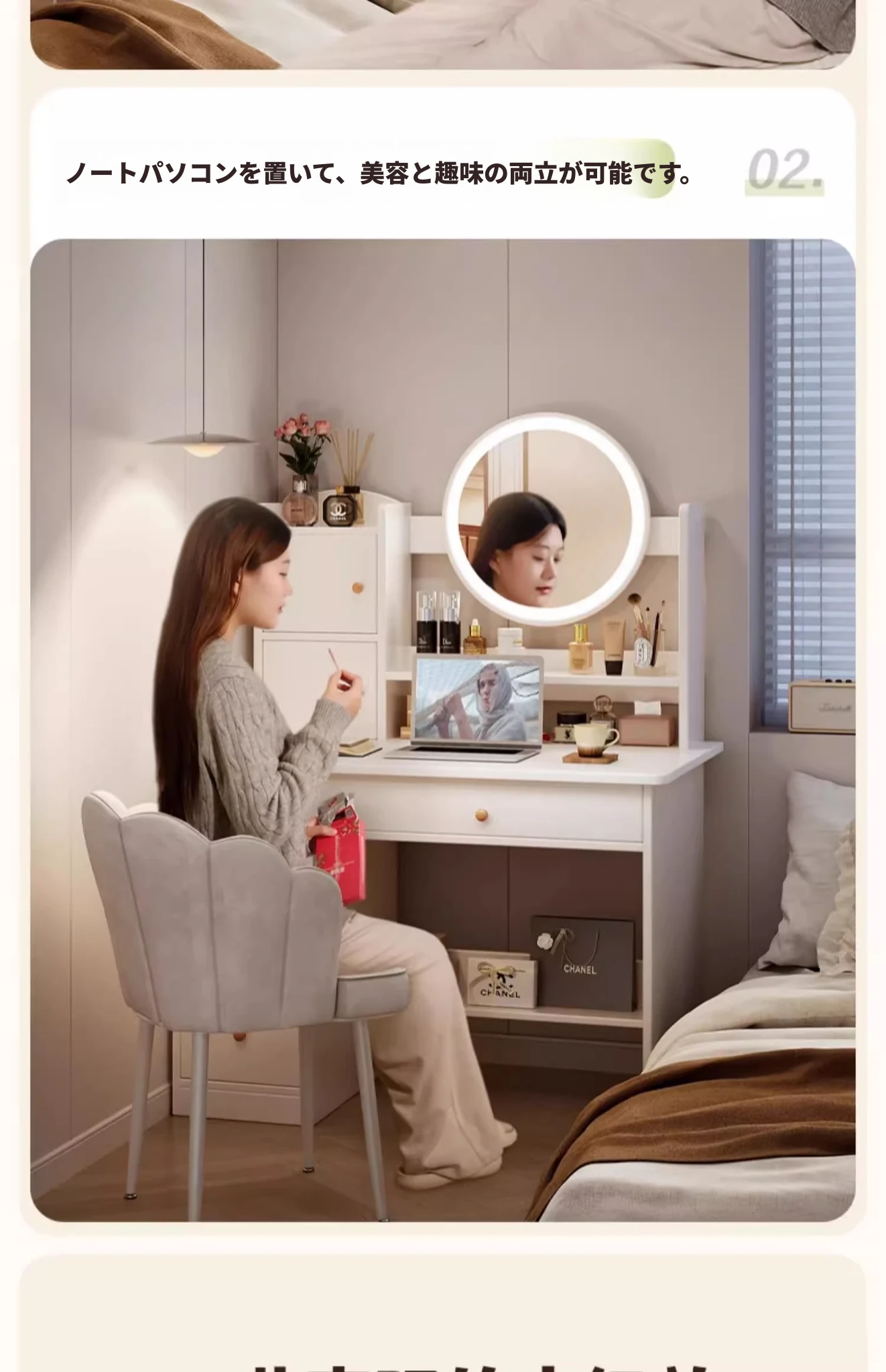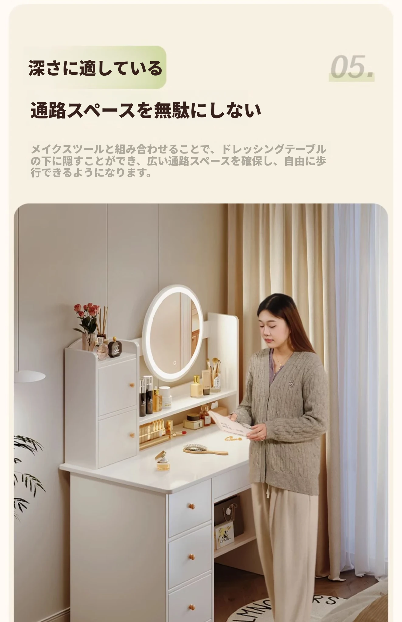 2025年新作!シンプルでモダンな寝室用ドレッサー - 小型寝室に最適なメイクアップデスク&収納一体型キャビネットで、使いやすさ抜群!勉強にも最適なデザイン!