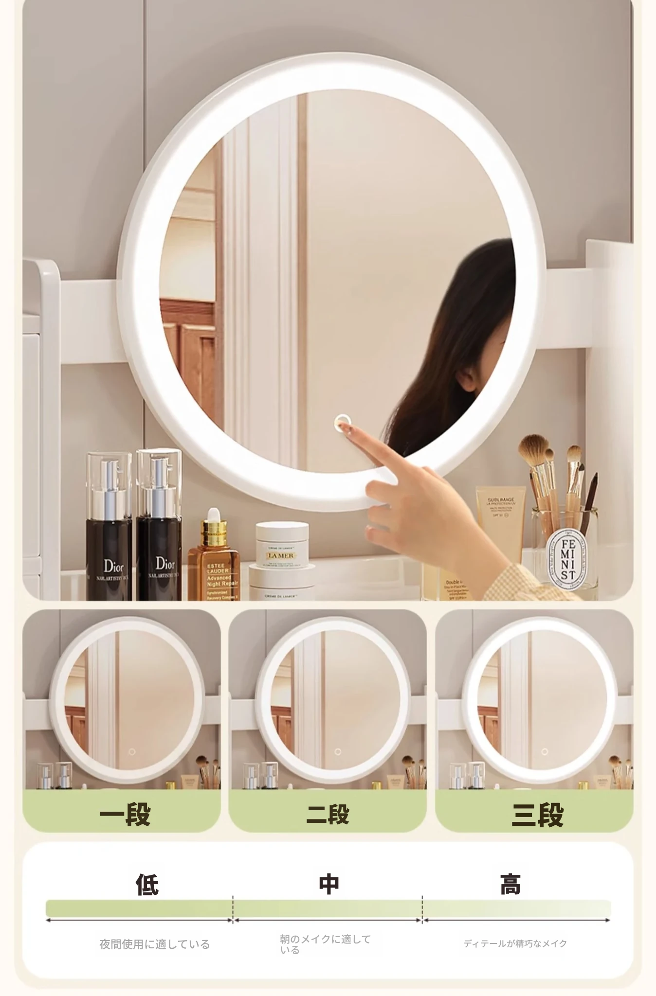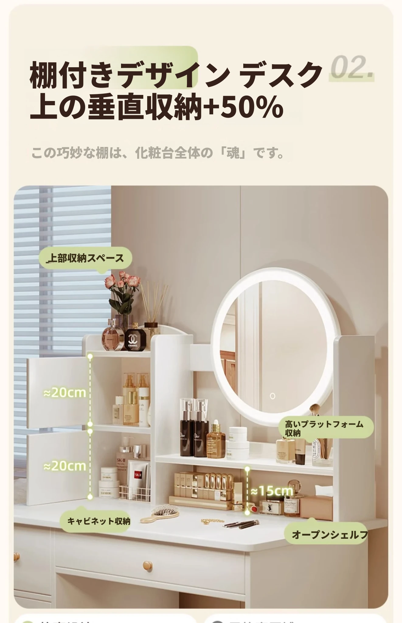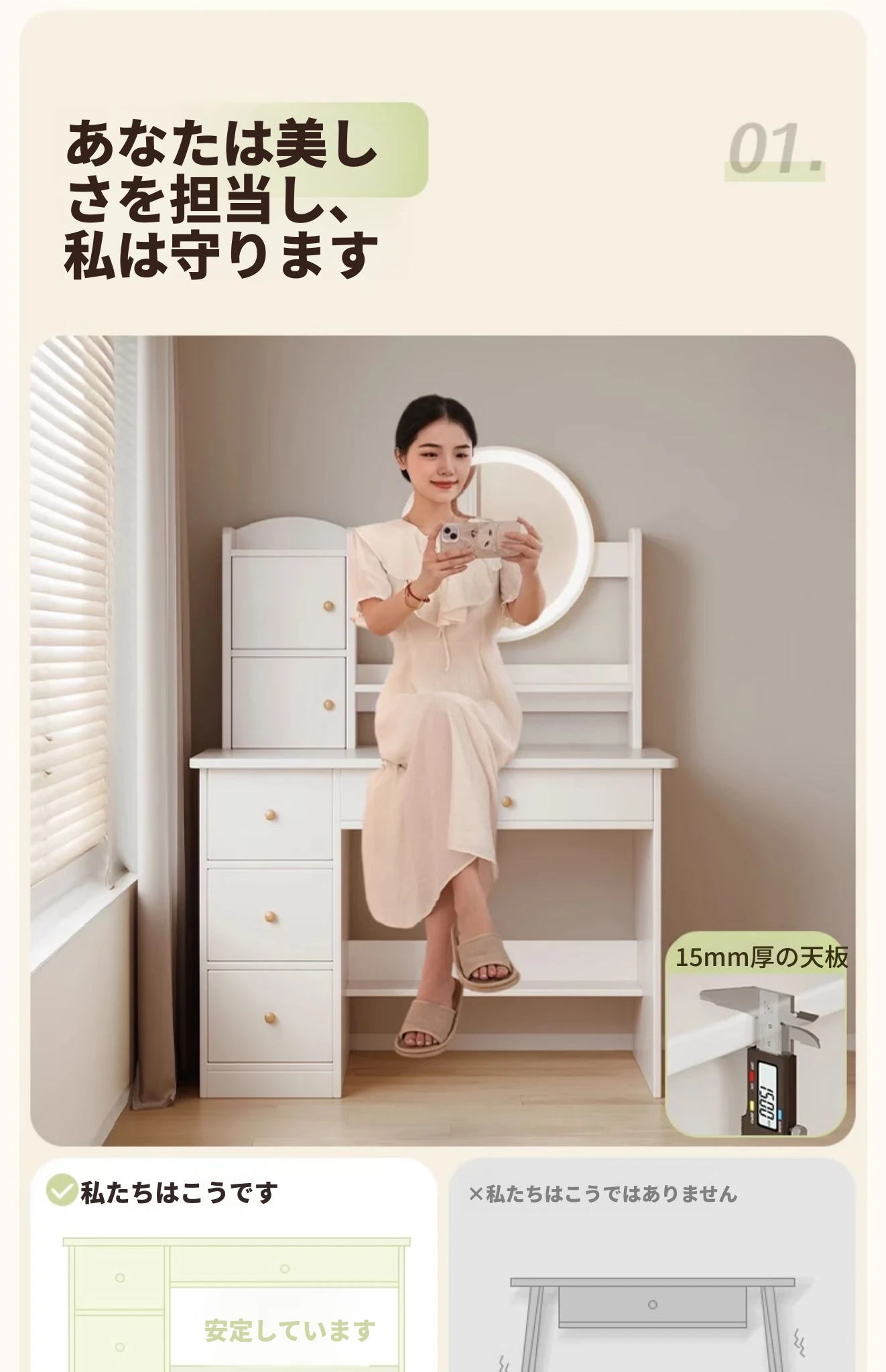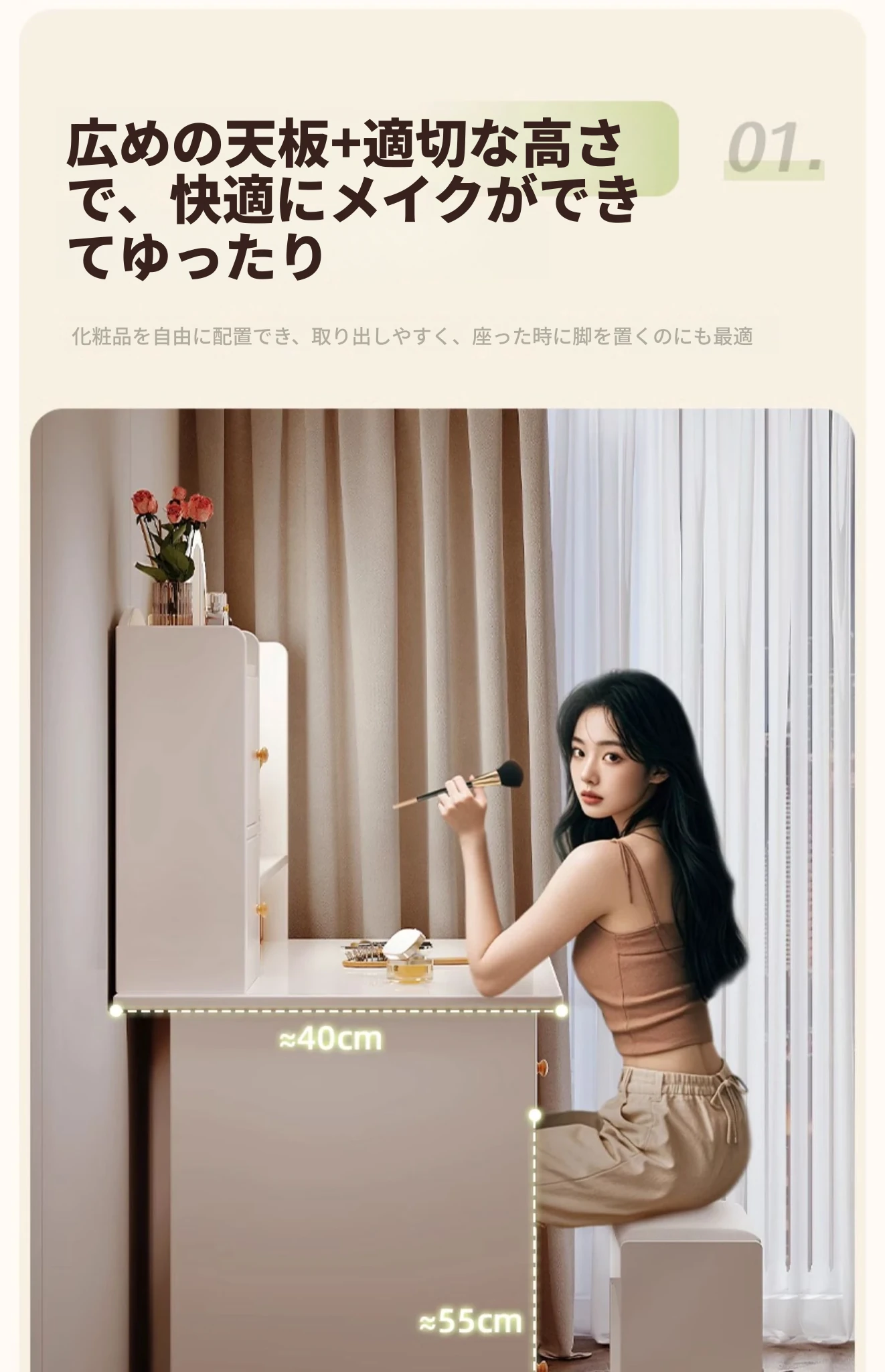 2025年新作!シンプルでモダンな寝室用ドレッサー - 小型寝室に最適なメイクアップデスク&収納一体型キャビネットで、使いやすさ抜群!勉強にも最適なデザイン!