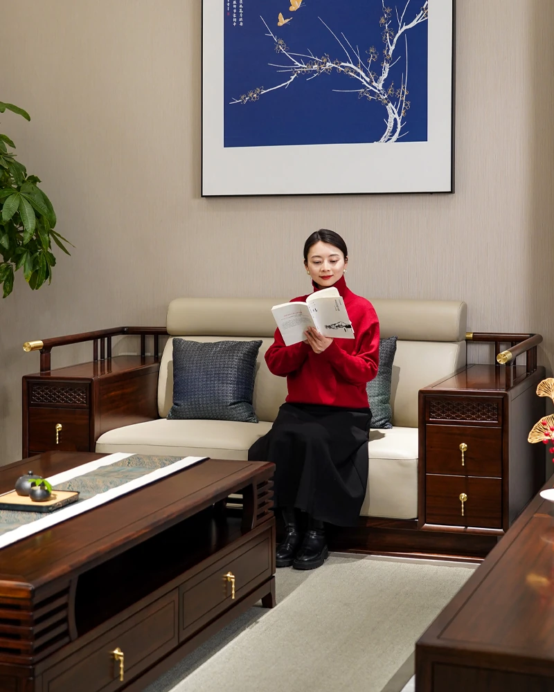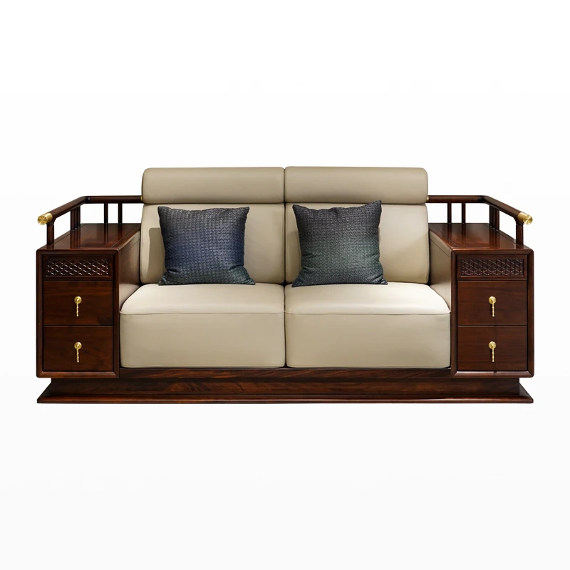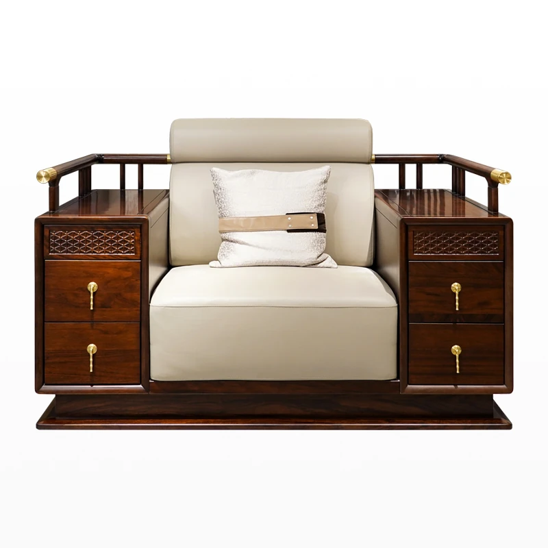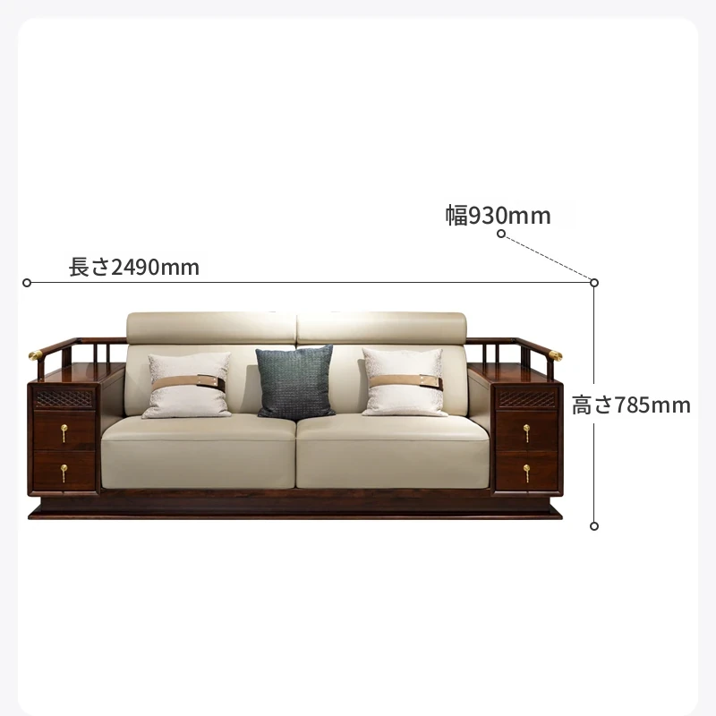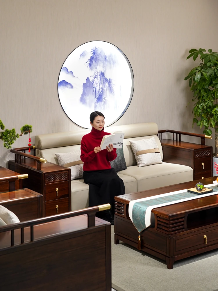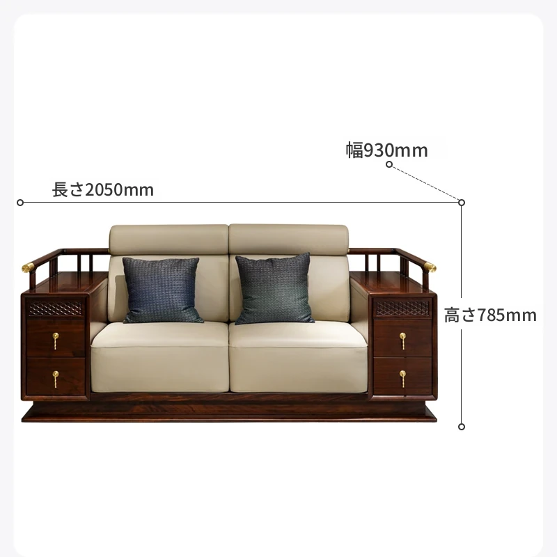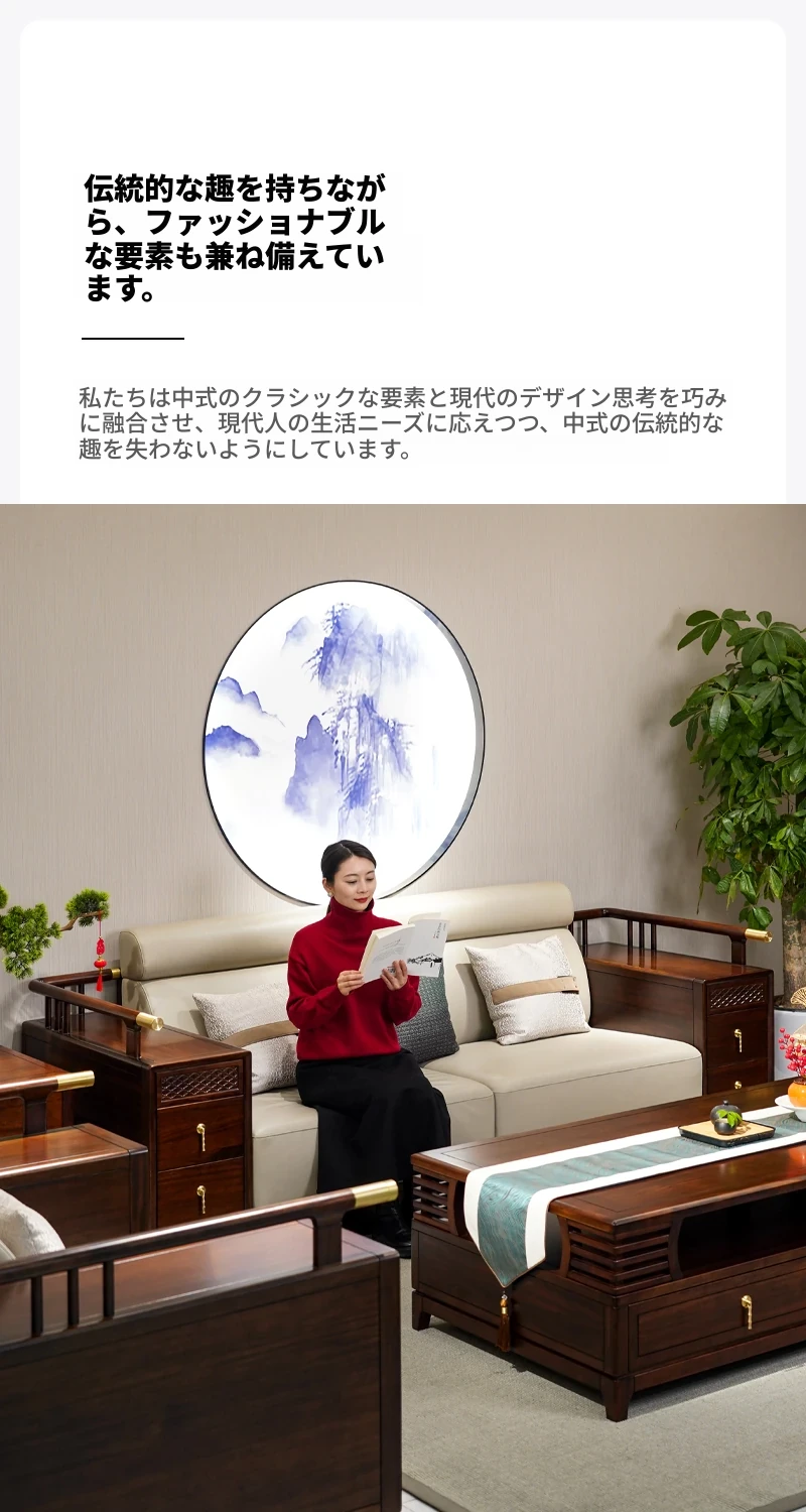 半墨新中式ウ金木製ソファセット - 高級感あふれる本革ソファで、広々としたリビングや別荘に最適な実木家具。優雅なデザインで、あなたの暮らしに贅沢を。