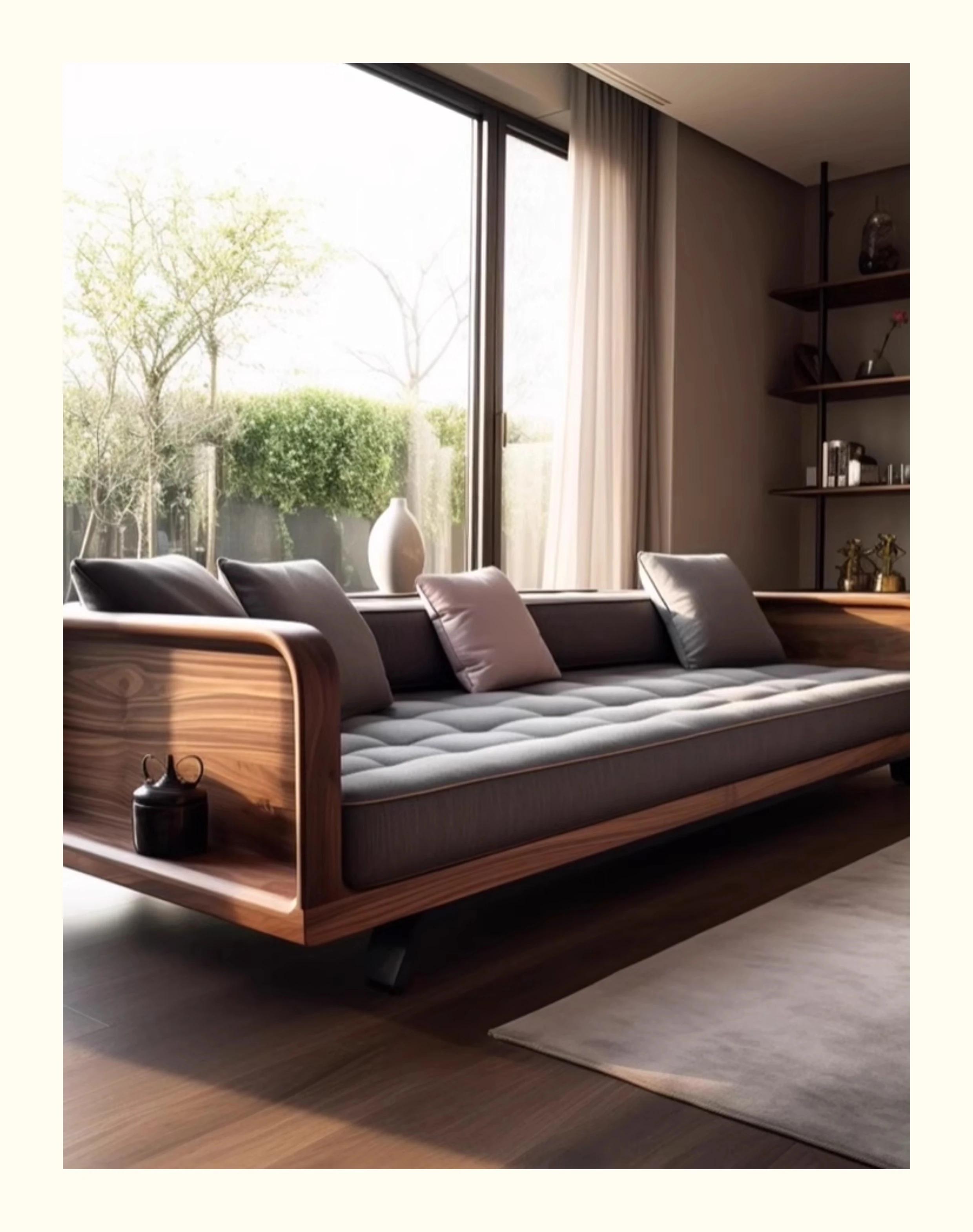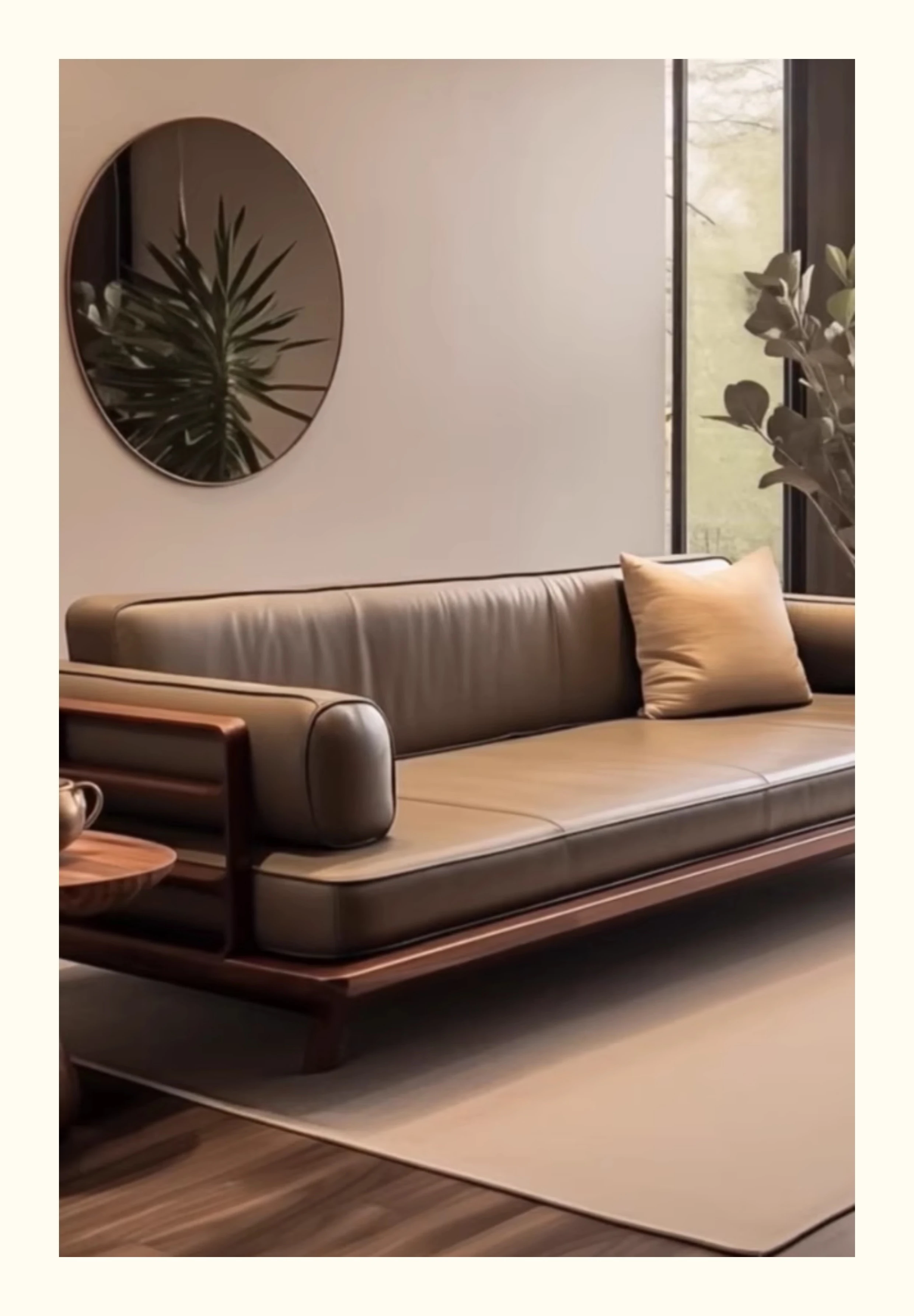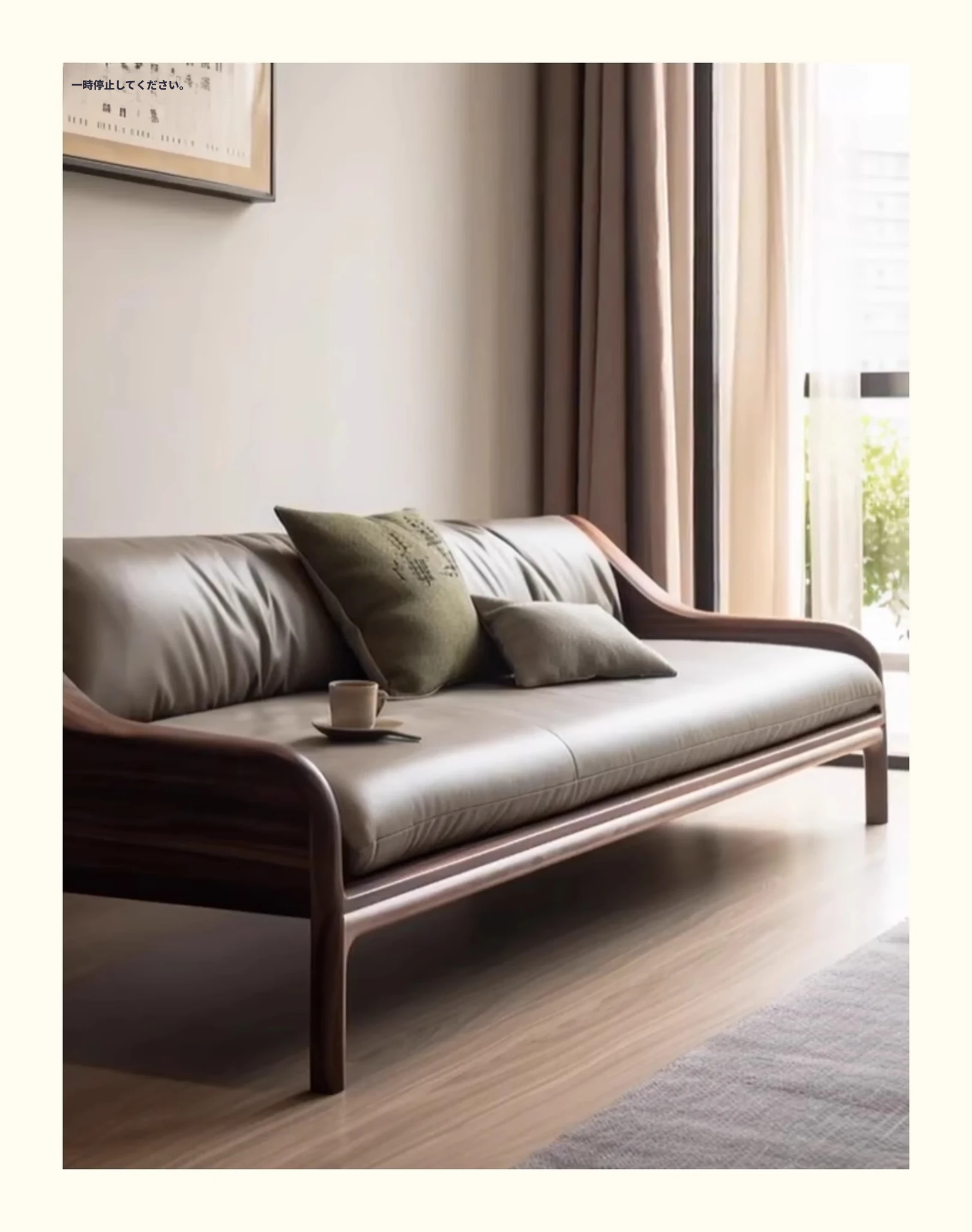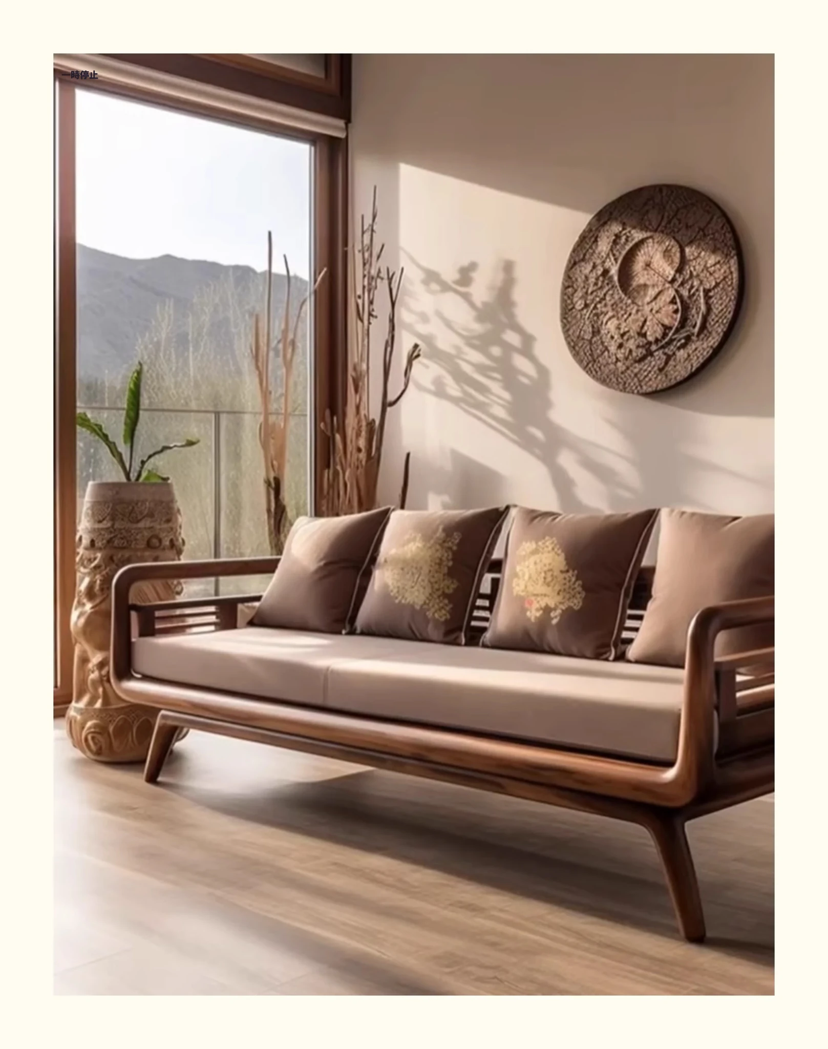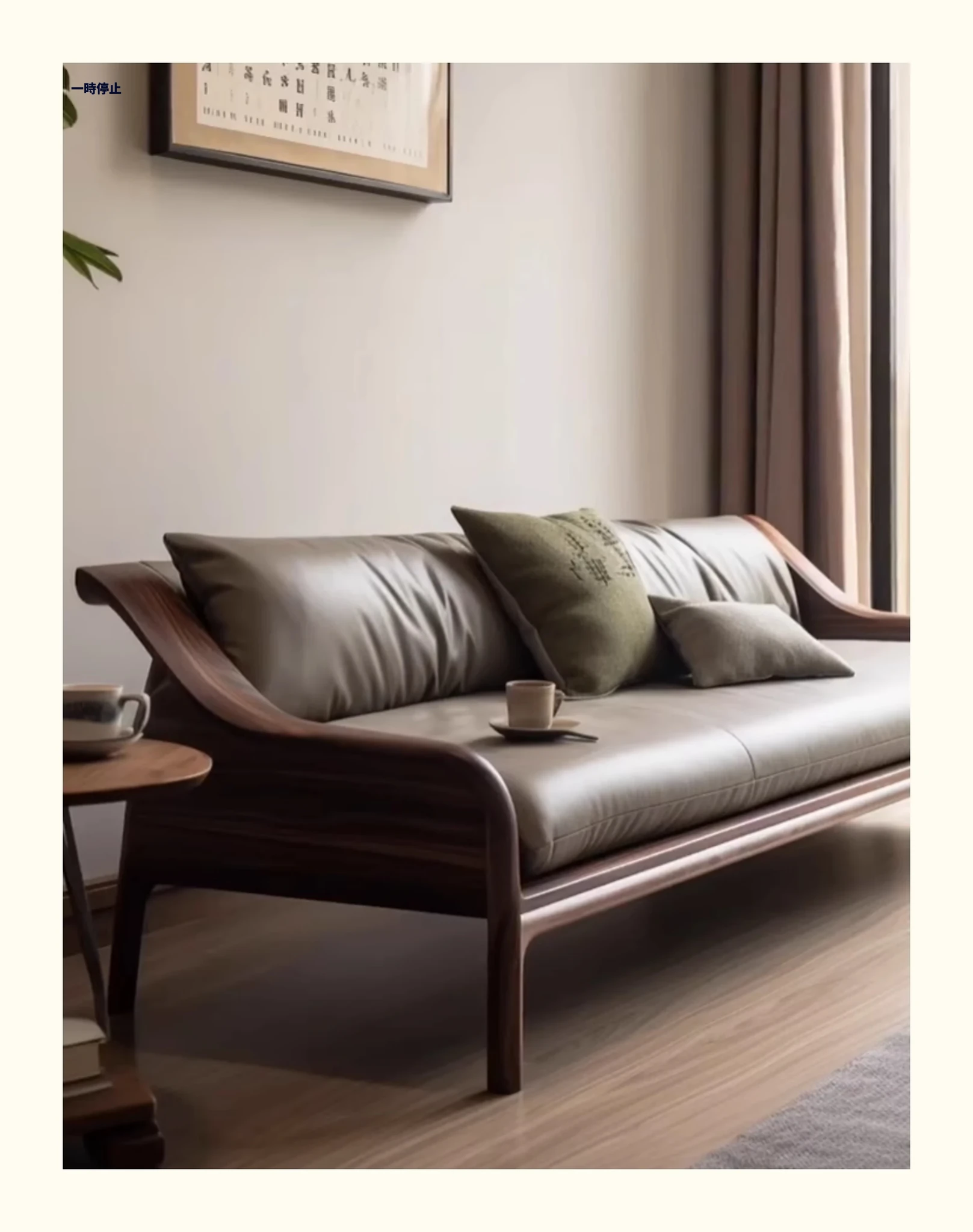 新中式ウォールナット無垢材ソファ|高級本革直置きソファ|リビングにぴったりのローハンベッドとフェイエンベッドが一体化!優雅なデザインで、心地よいリラックスタイムをお届けします。