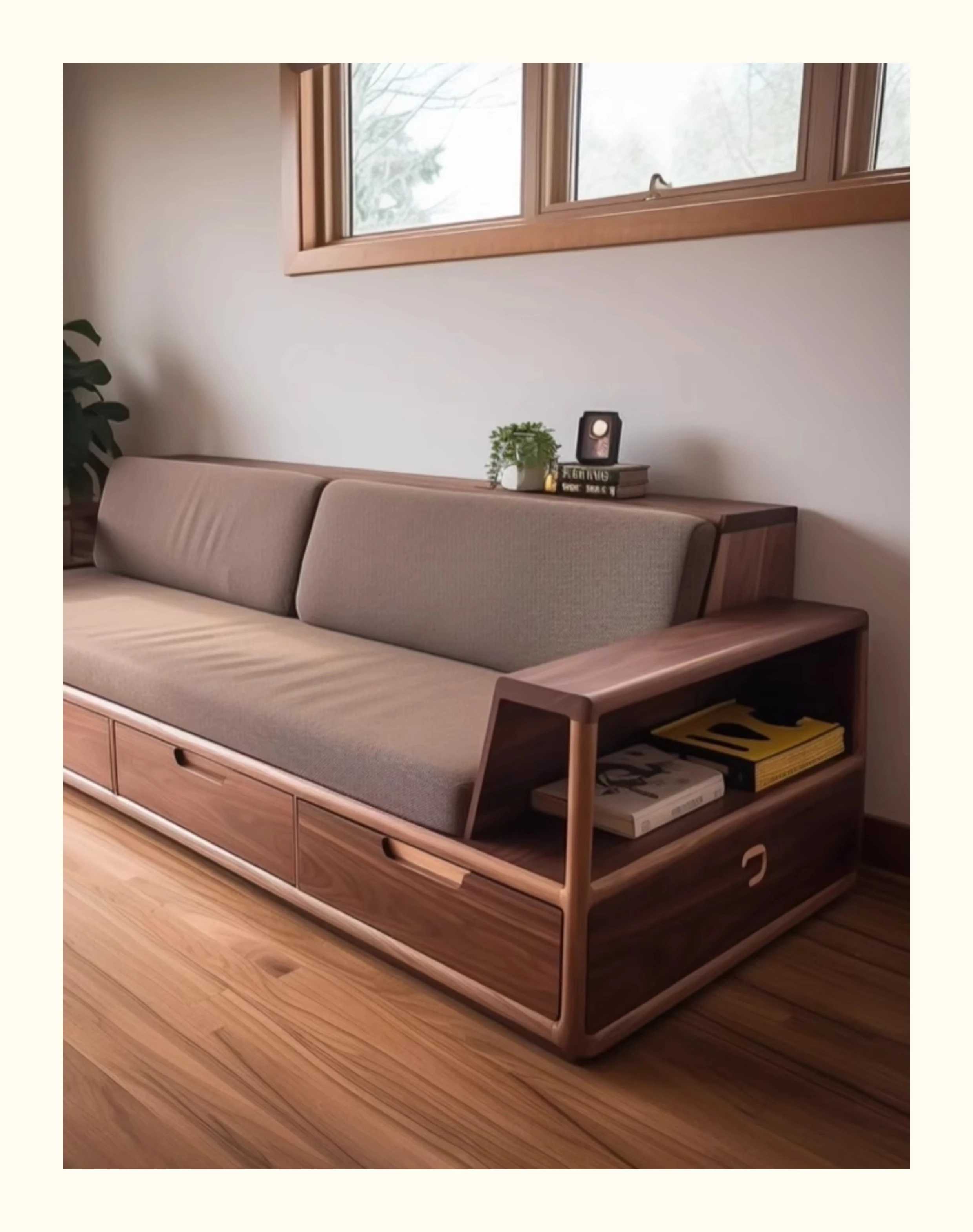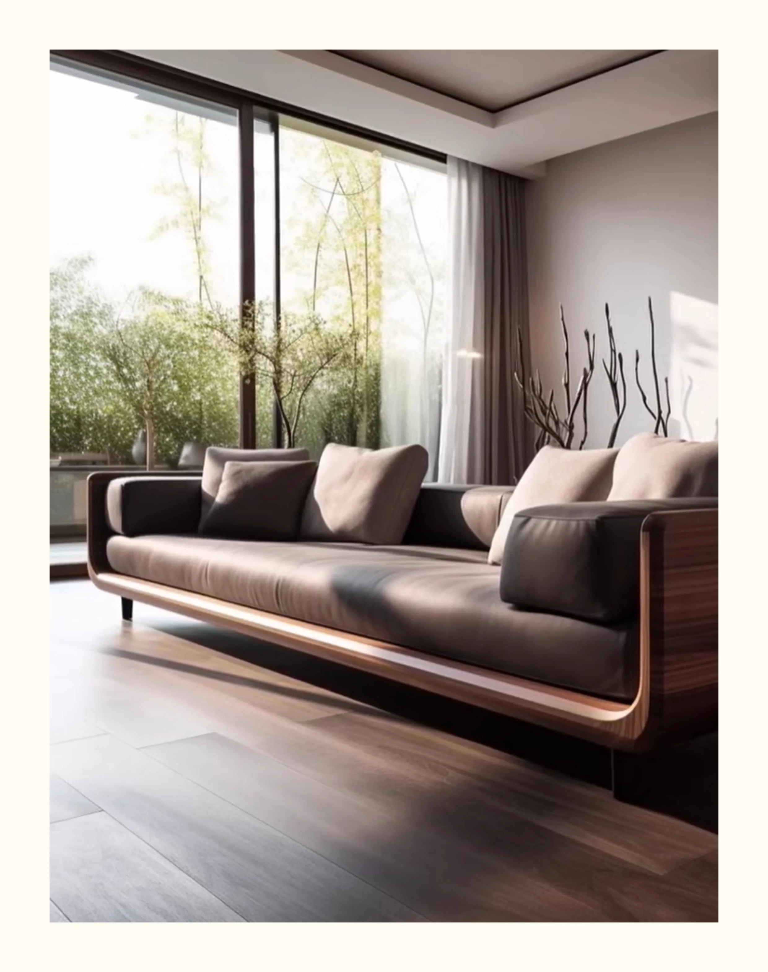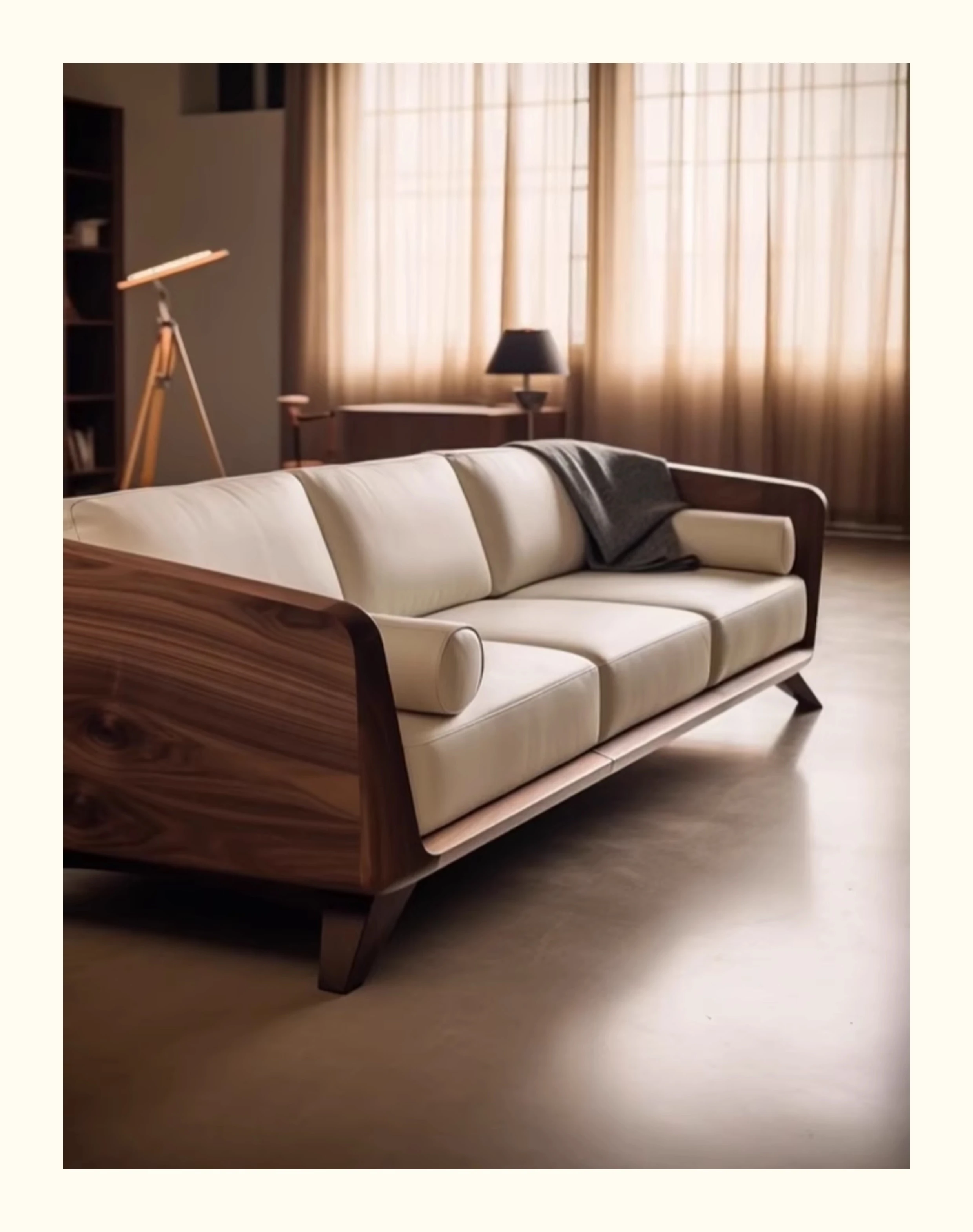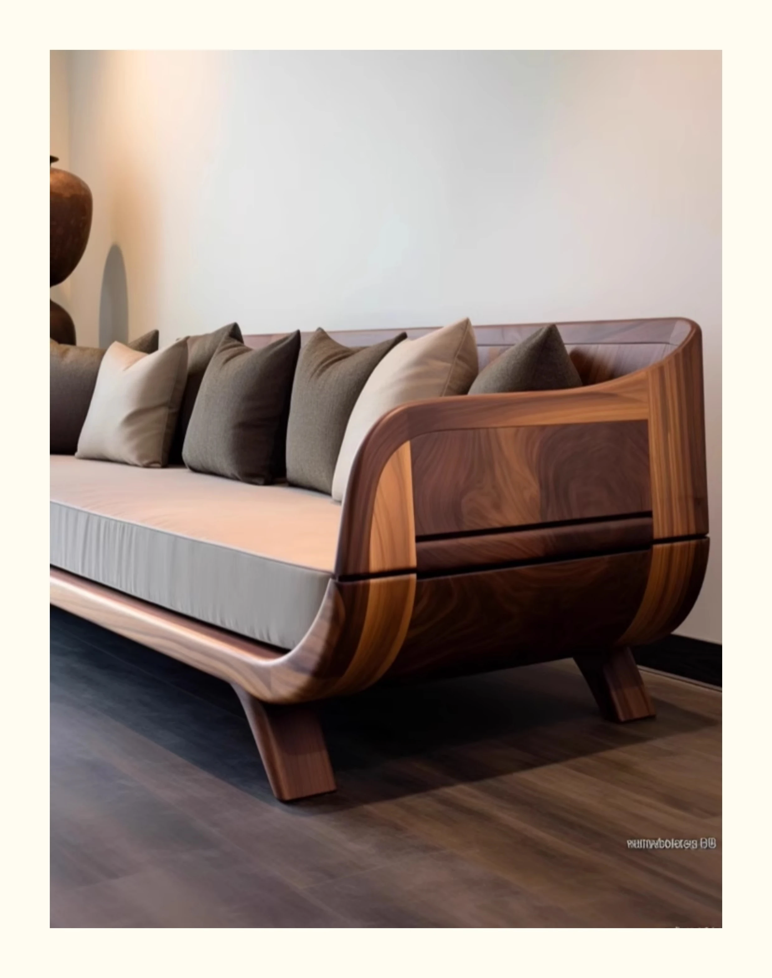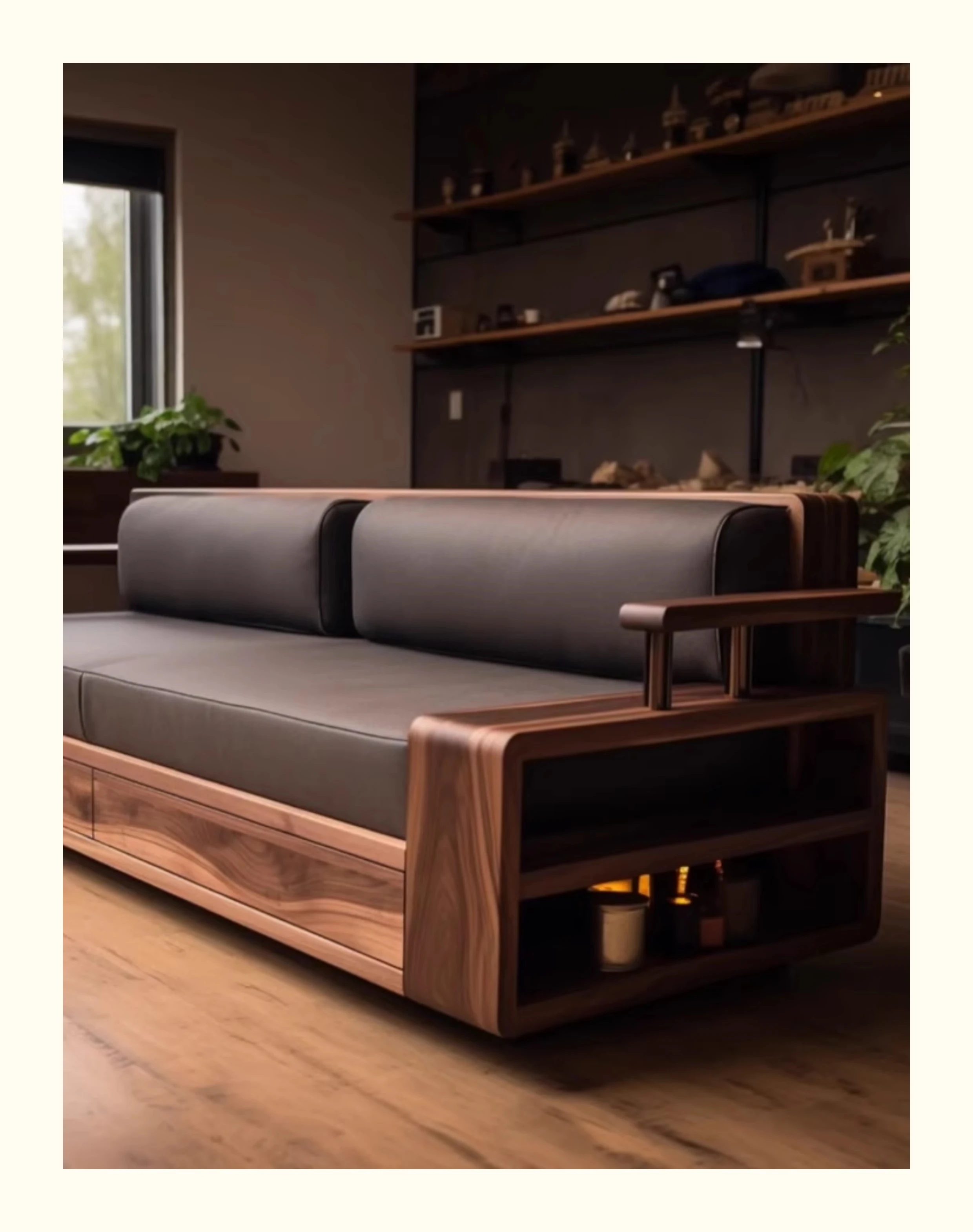 新中式ウォールナット無垢材ソファ|高級本革直置きソファ|リビングにぴったりのローハンベッドとフェイエンベッドが一体化!優雅なデザインで、心地よいリラックスタイムをお届けします。