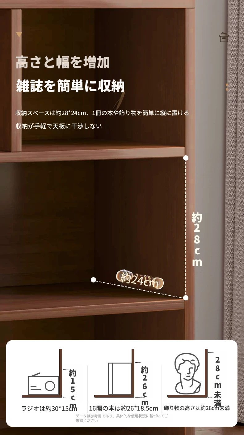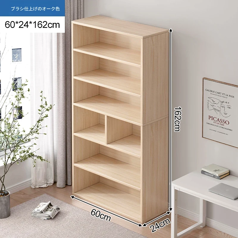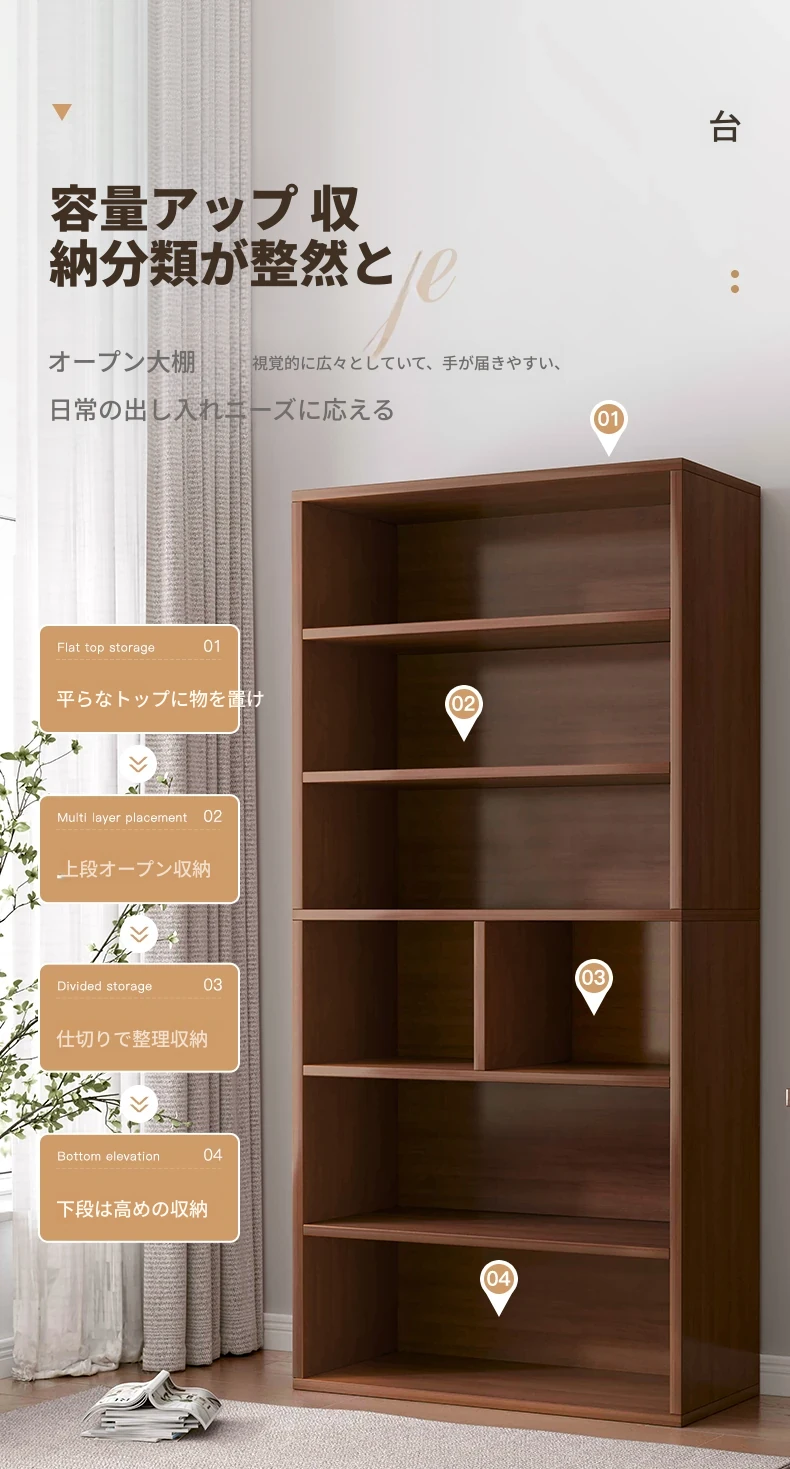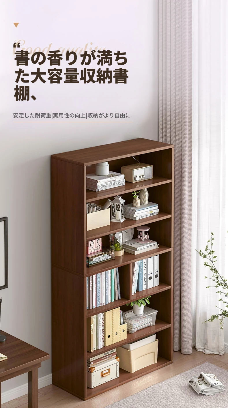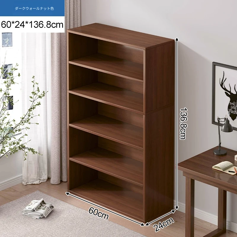 リビングに最適!一体型ウッド調収納ラック - 本棚・ディスプレイキャビネット・壁掛け式でスッキリ整理。家庭用にもピッタリなシンプルデザインで、おしゃれな空間を演出します!