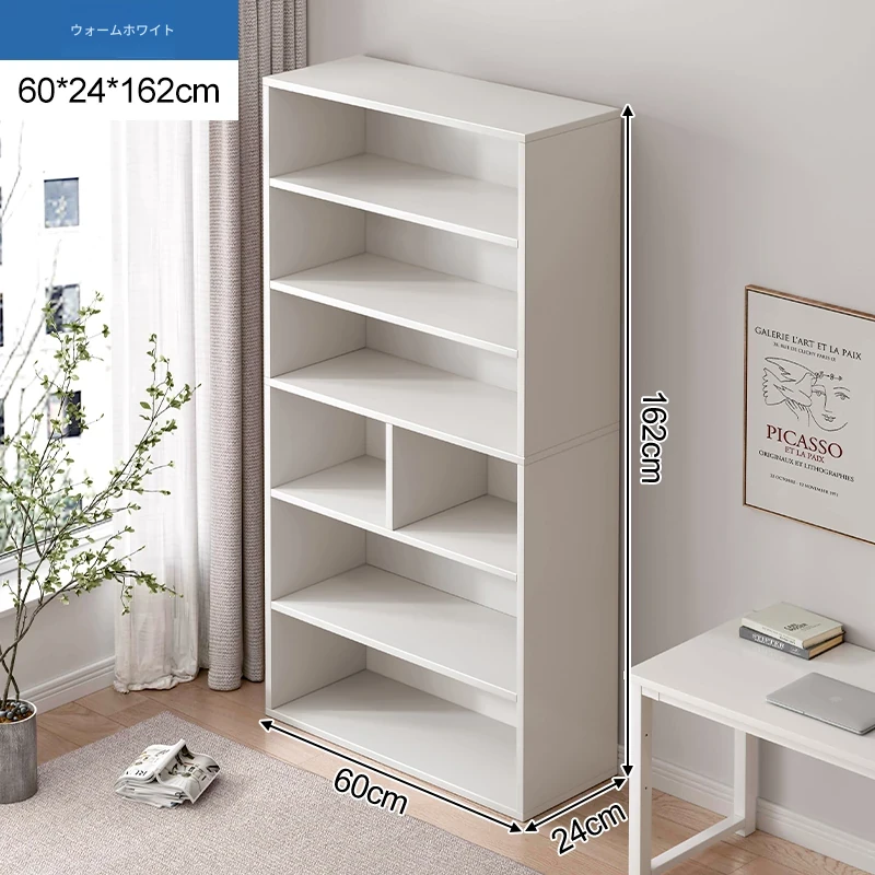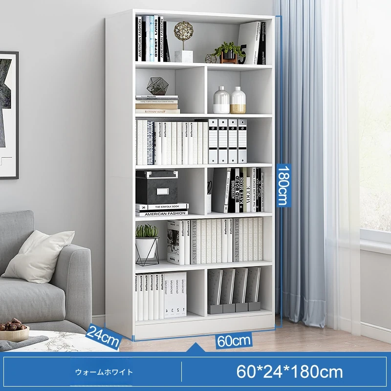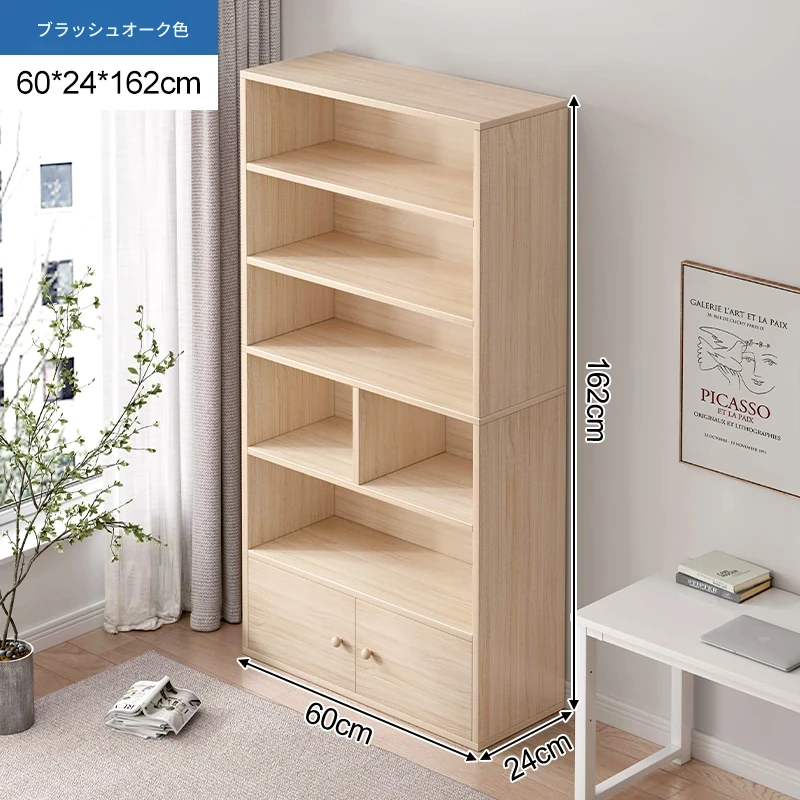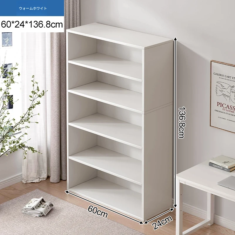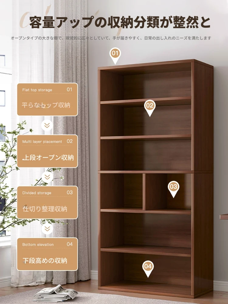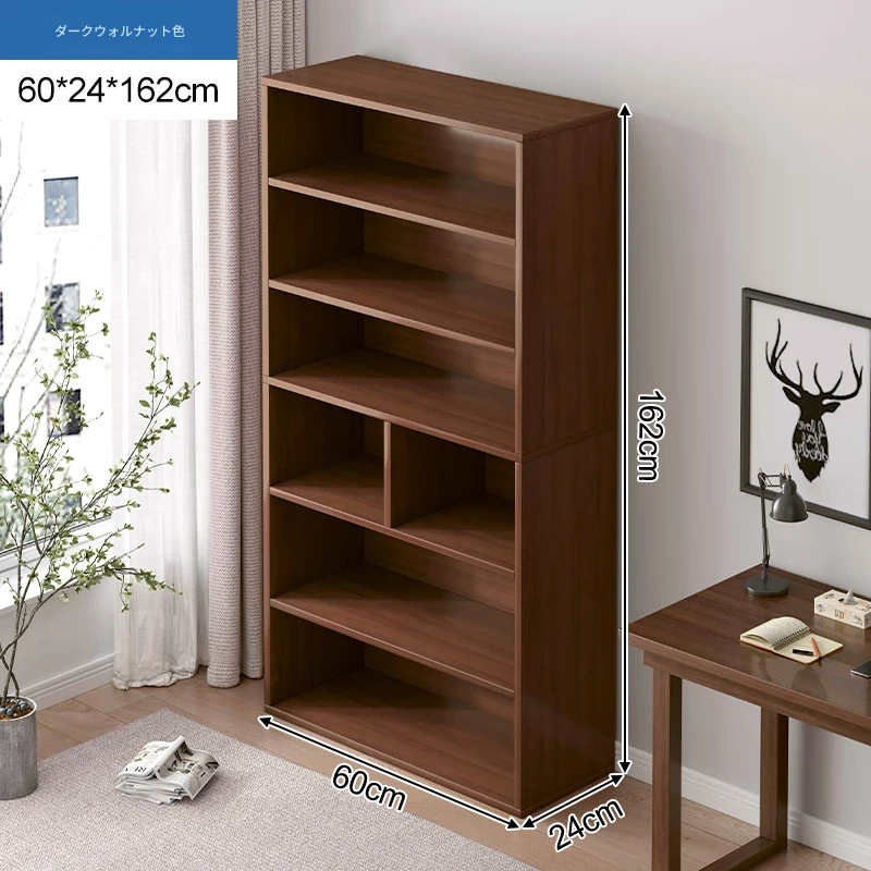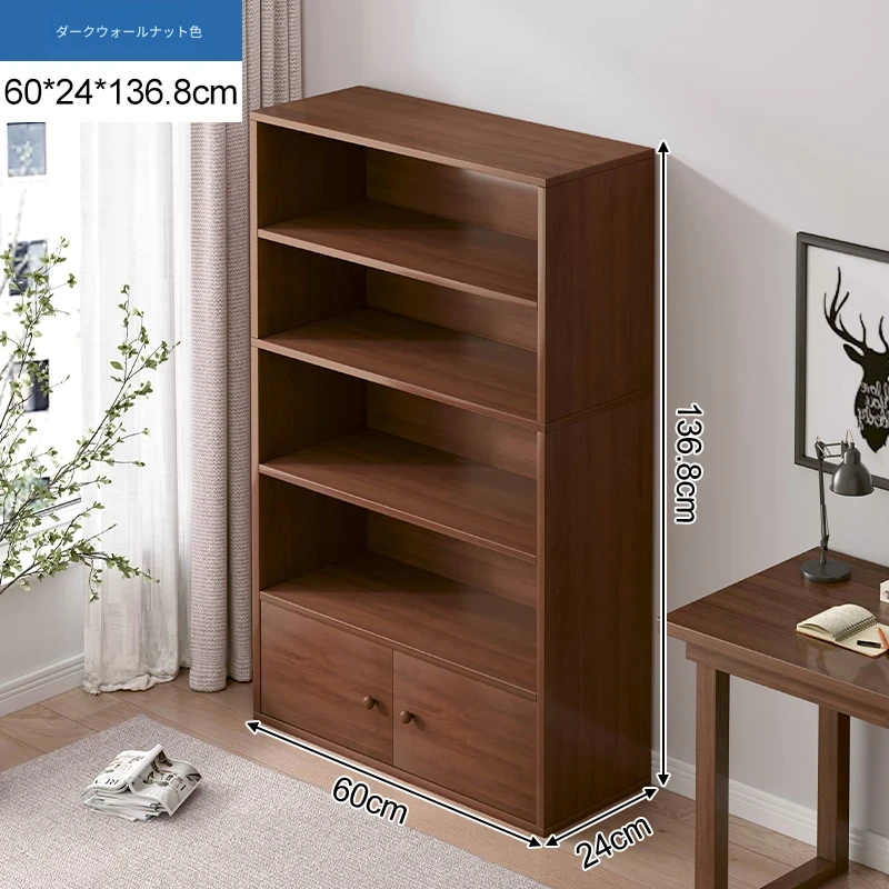 リビングに最適!一体型ウッド調収納ラック - 本棚・ディスプレイキャビネット・壁掛け式でスッキリ整理。家庭用にもピッタリなシンプルデザインで、おしゃれな空間を演出します!