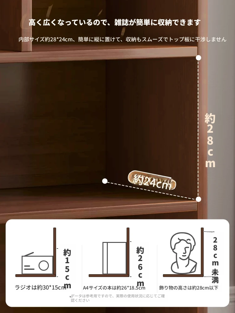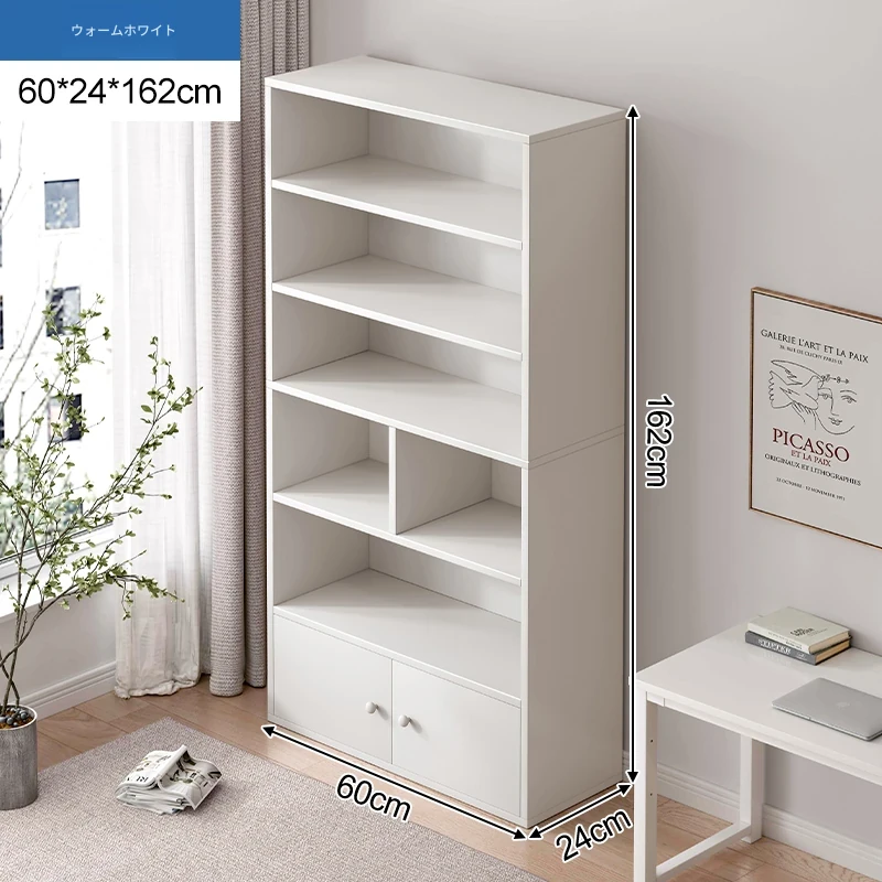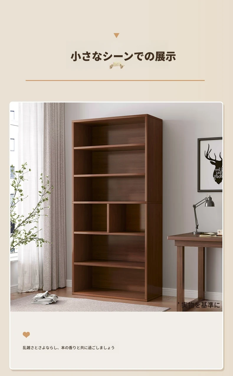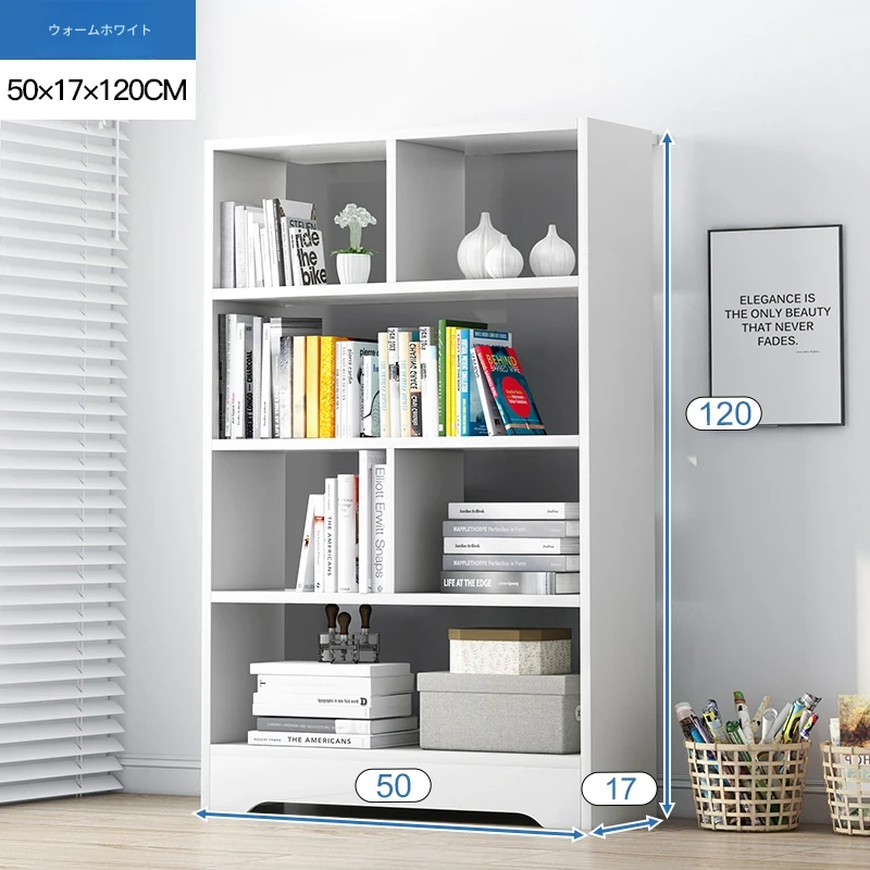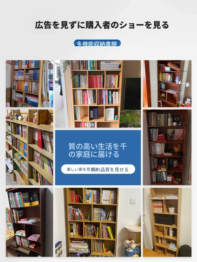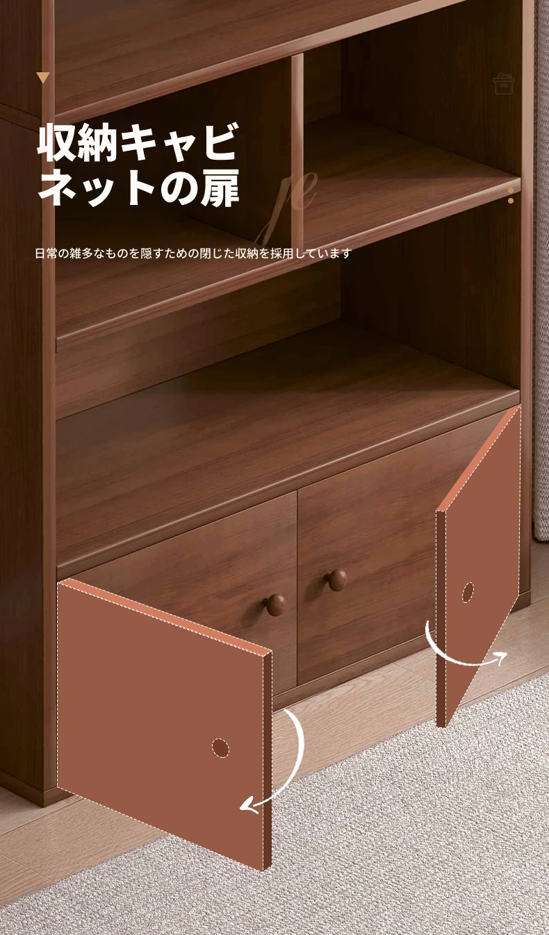 リビングに最適!一体型ウッド調収納ラック - 本棚・ディスプレイキャビネット・壁掛け式でスッキリ整理。家庭用にもピッタリなシンプルデザインで、おしゃれな空間を演出します!