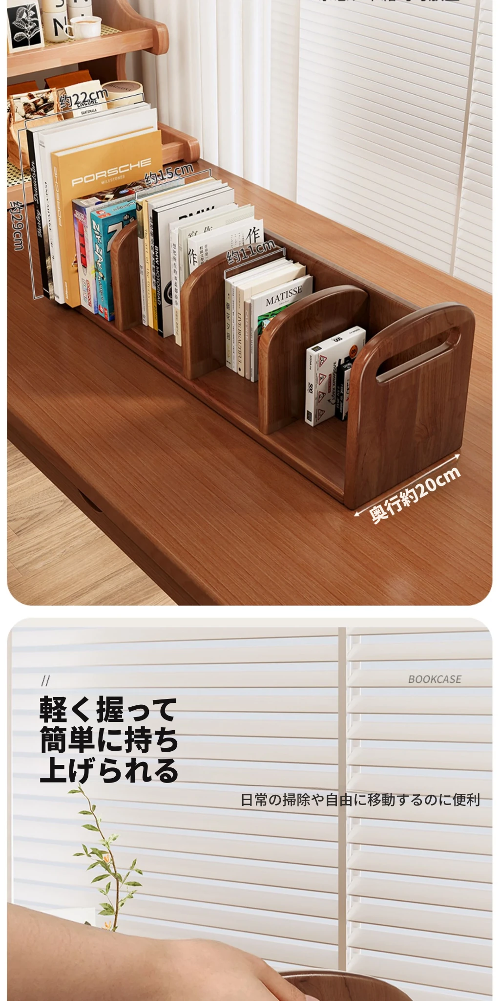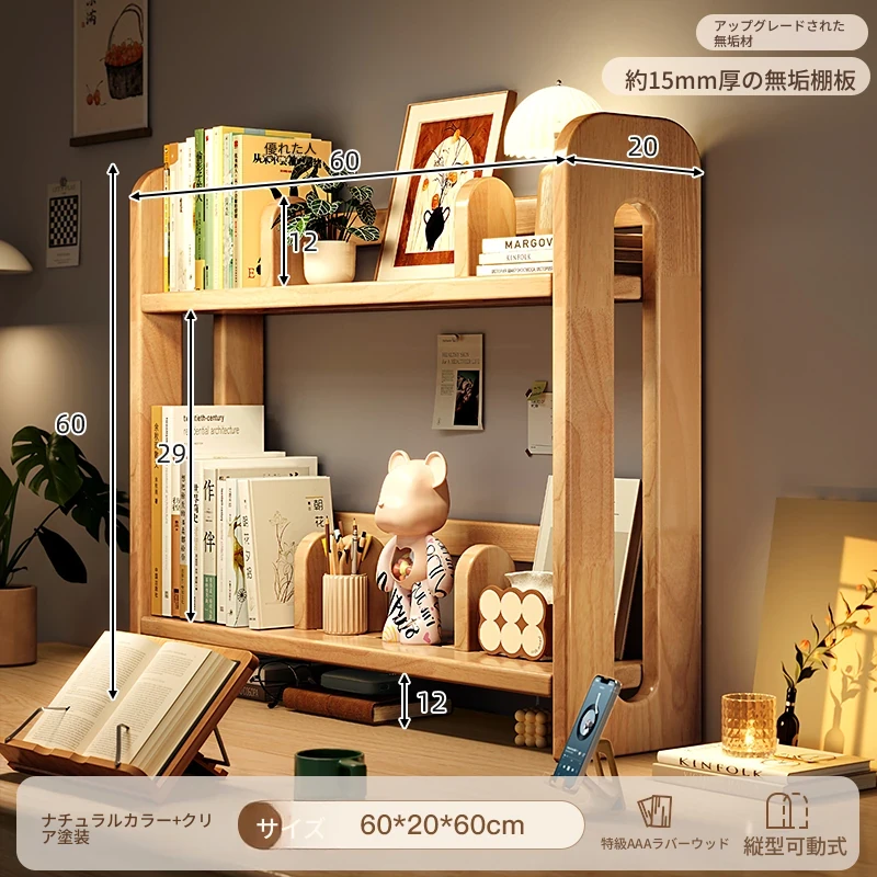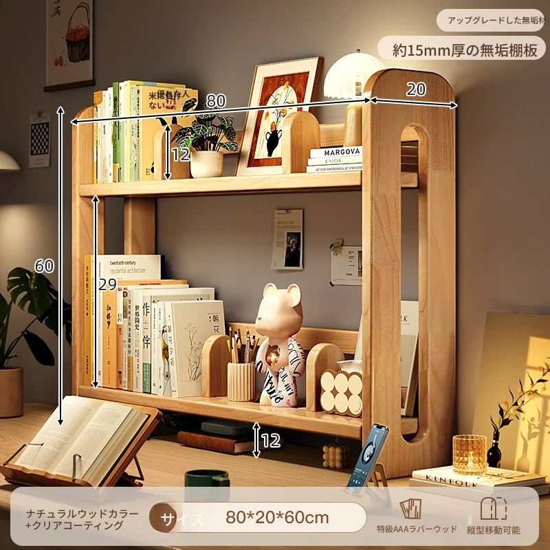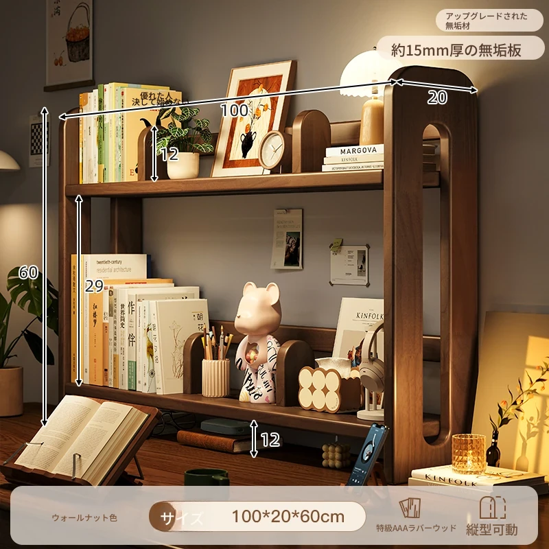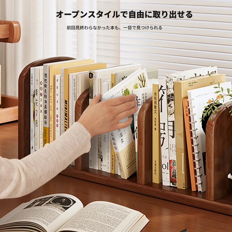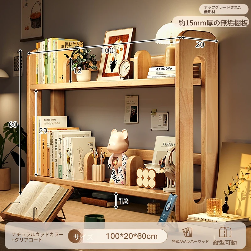 高級感あふれる無垢材デスクシェルフ - スタイリッシュなデスク上の収納ラック!寝室やリビングに最適な本や小物を美しく整理できるアイテムです。あなたの空間を格上げする収納ソリューション!
